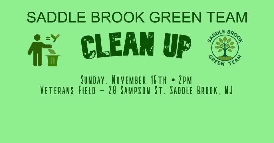 Come join the Saddle Brook Green Team for our first official town clean-up! It will take place at Veterans Field (20 Sampson St, Saddle Brook) on...