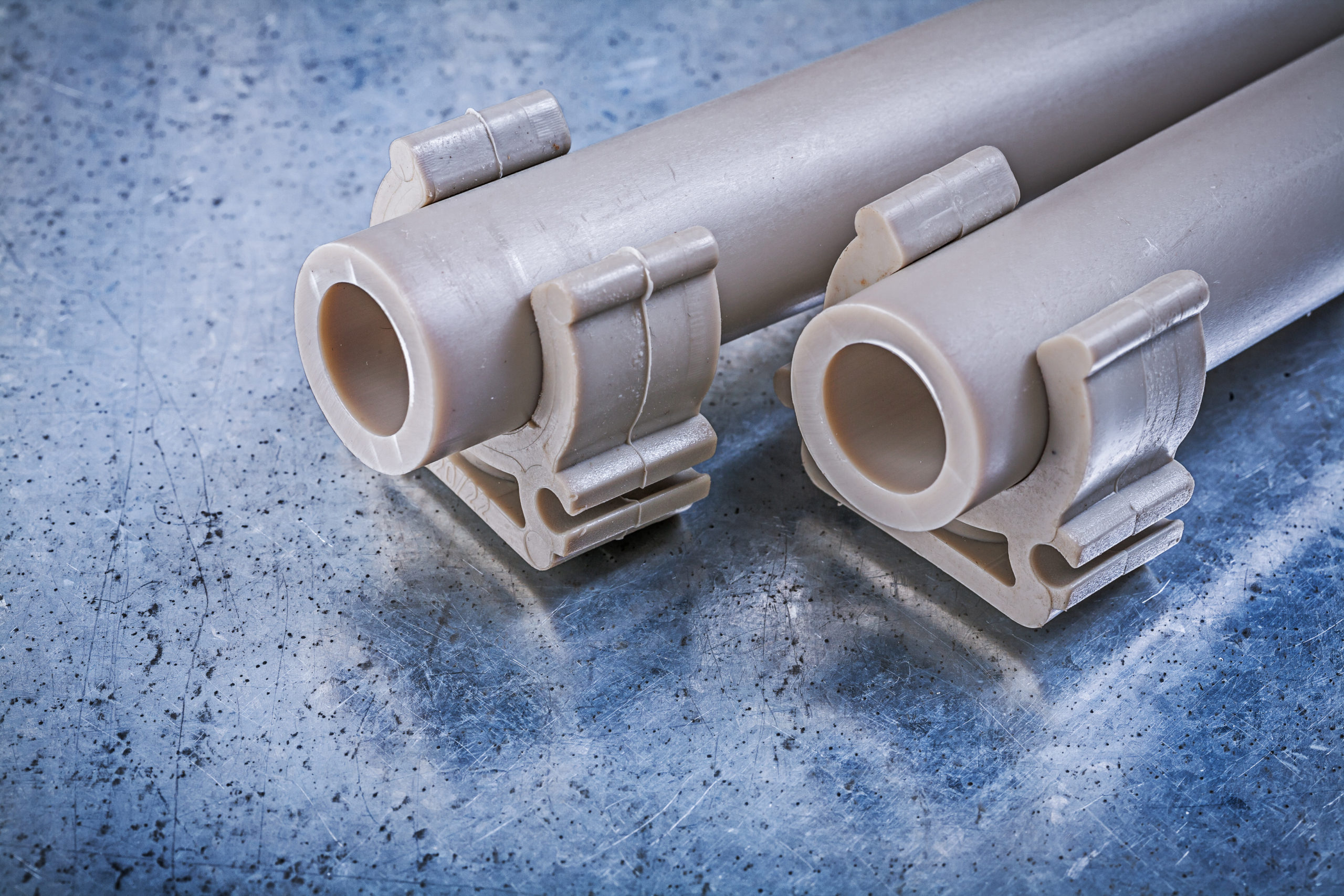 Water-pipes pipe clamps on metallic background construction conc ← Previous Next → Water-pipes pipe clamps on metallic background construction concept.