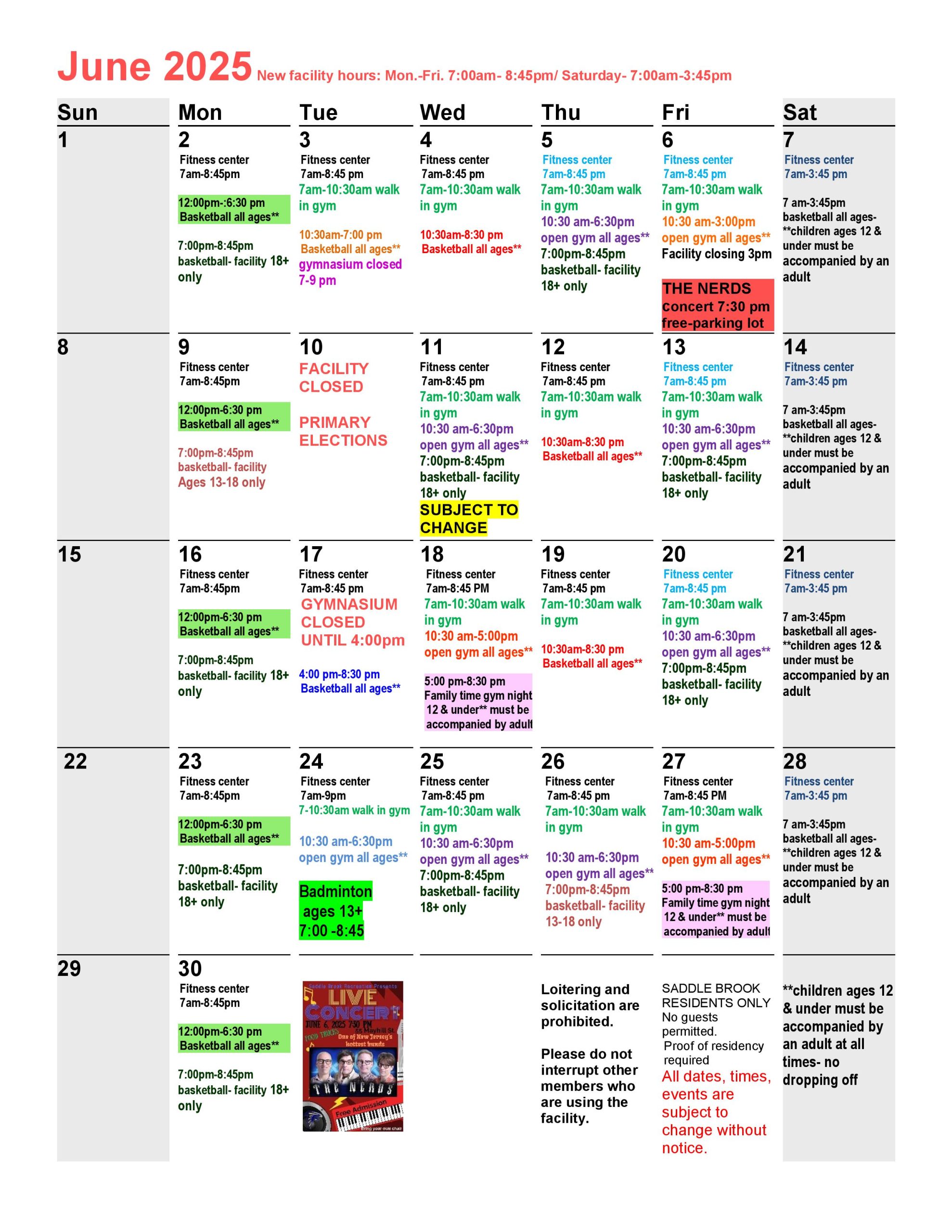 June 2025 rec calendar