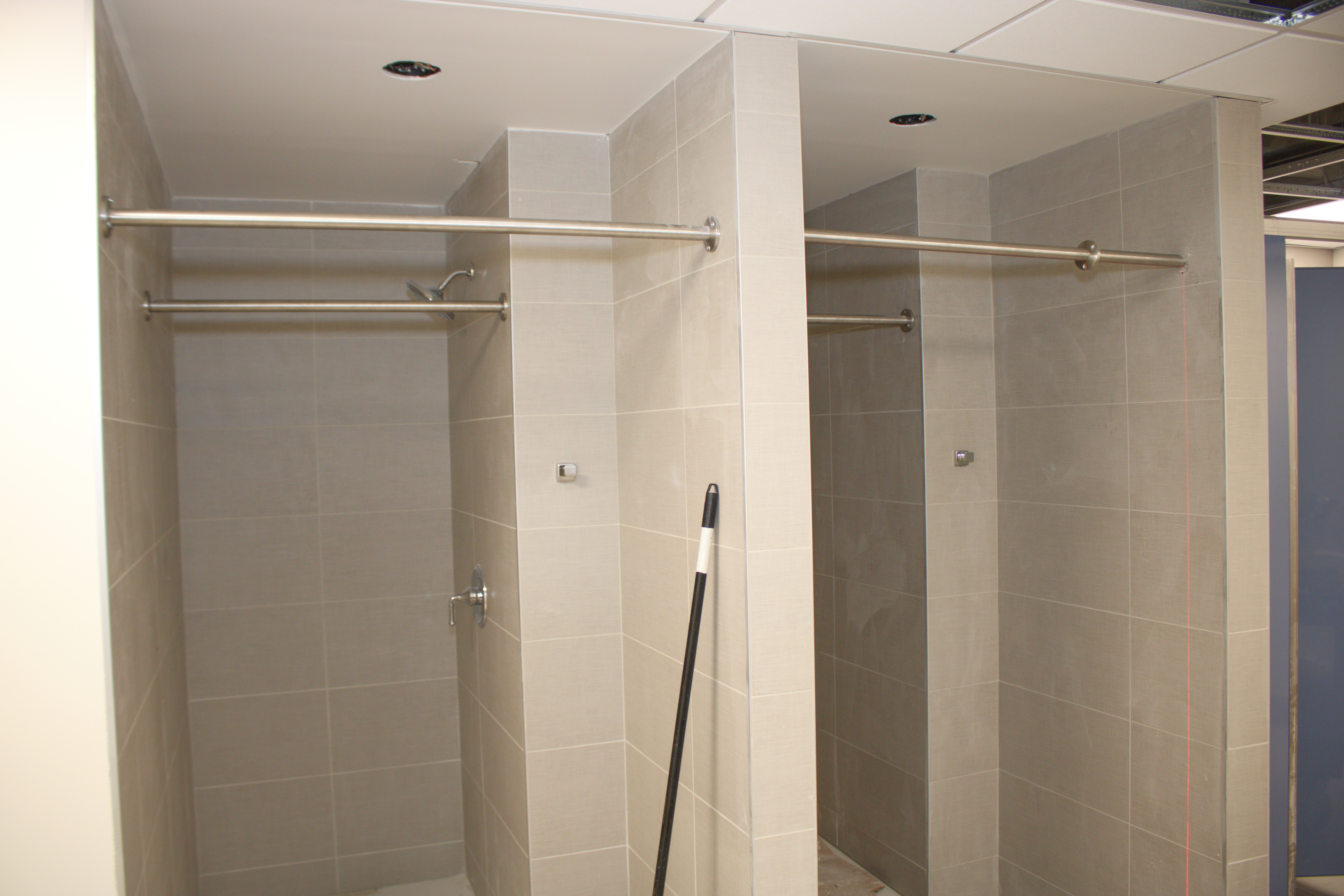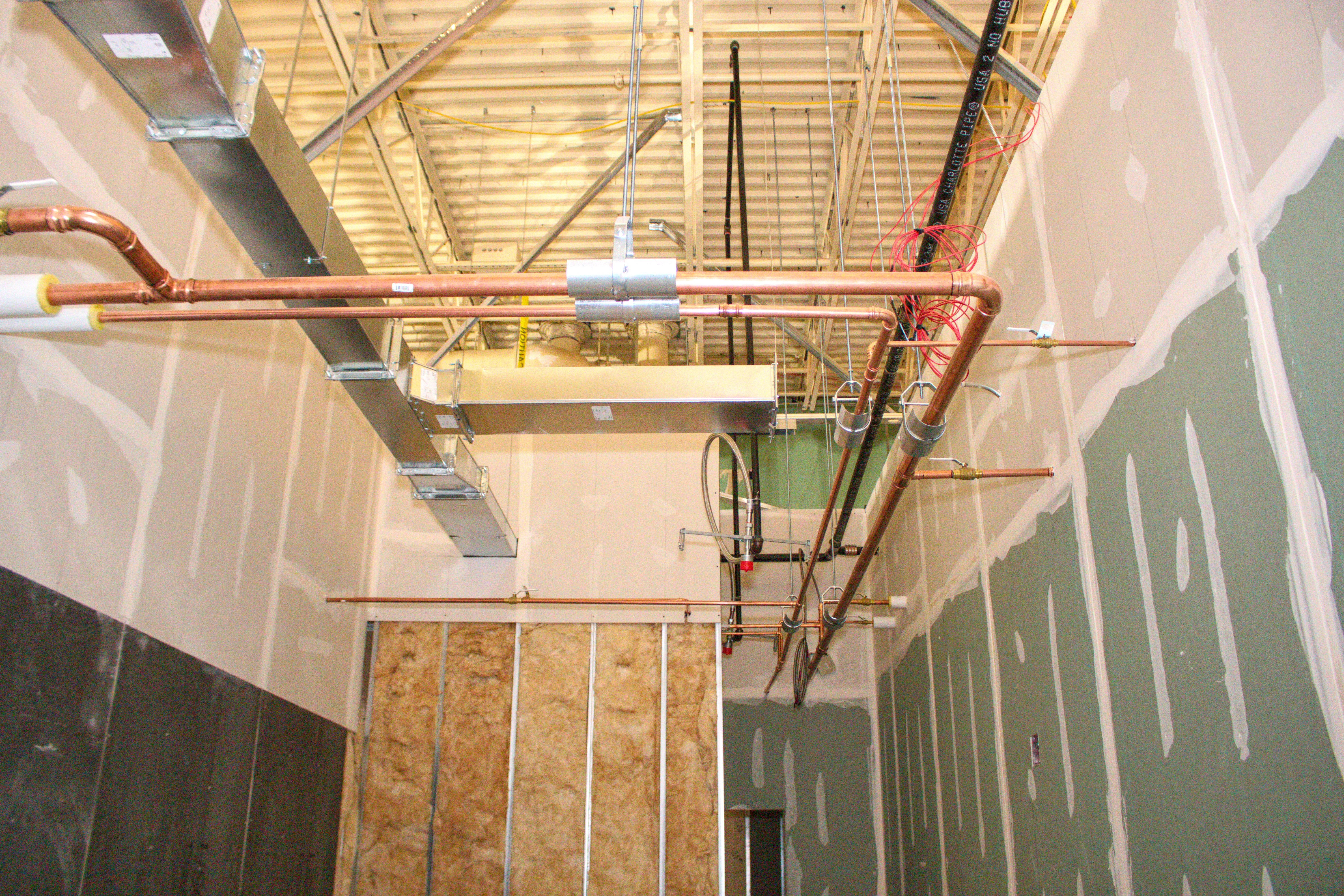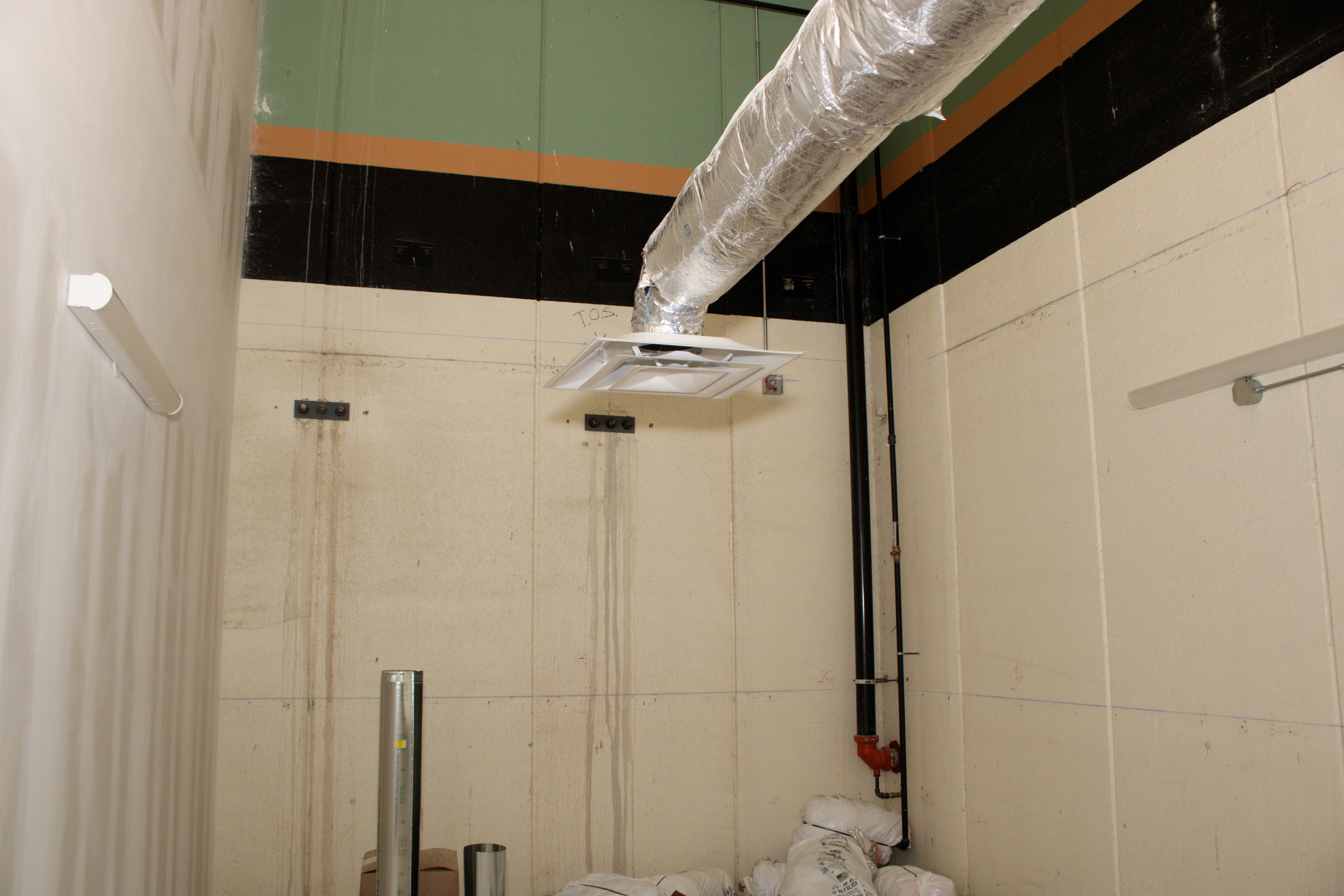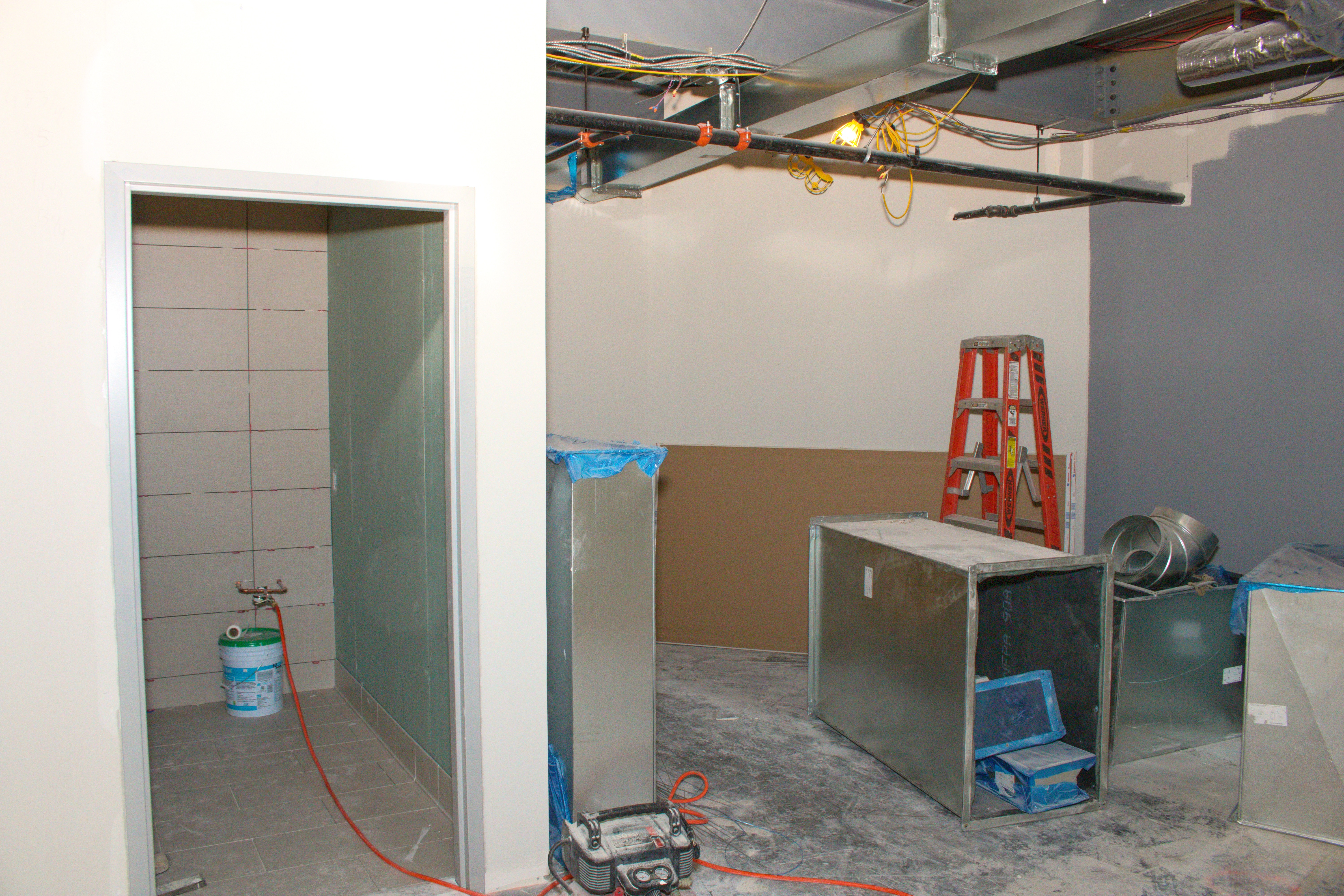 Plumbing: Now that the shower and bathroom/turn-out rooms and decontamination shower and laundry space have been framed, the plumbing rough has been in full force over the past 2 weeks and we will be looking forward for arrival of the new fixtures, sinks, toilets, etc. over the next month. The bathrooms have all been field measured for the partitions and will be installed once manufactured.