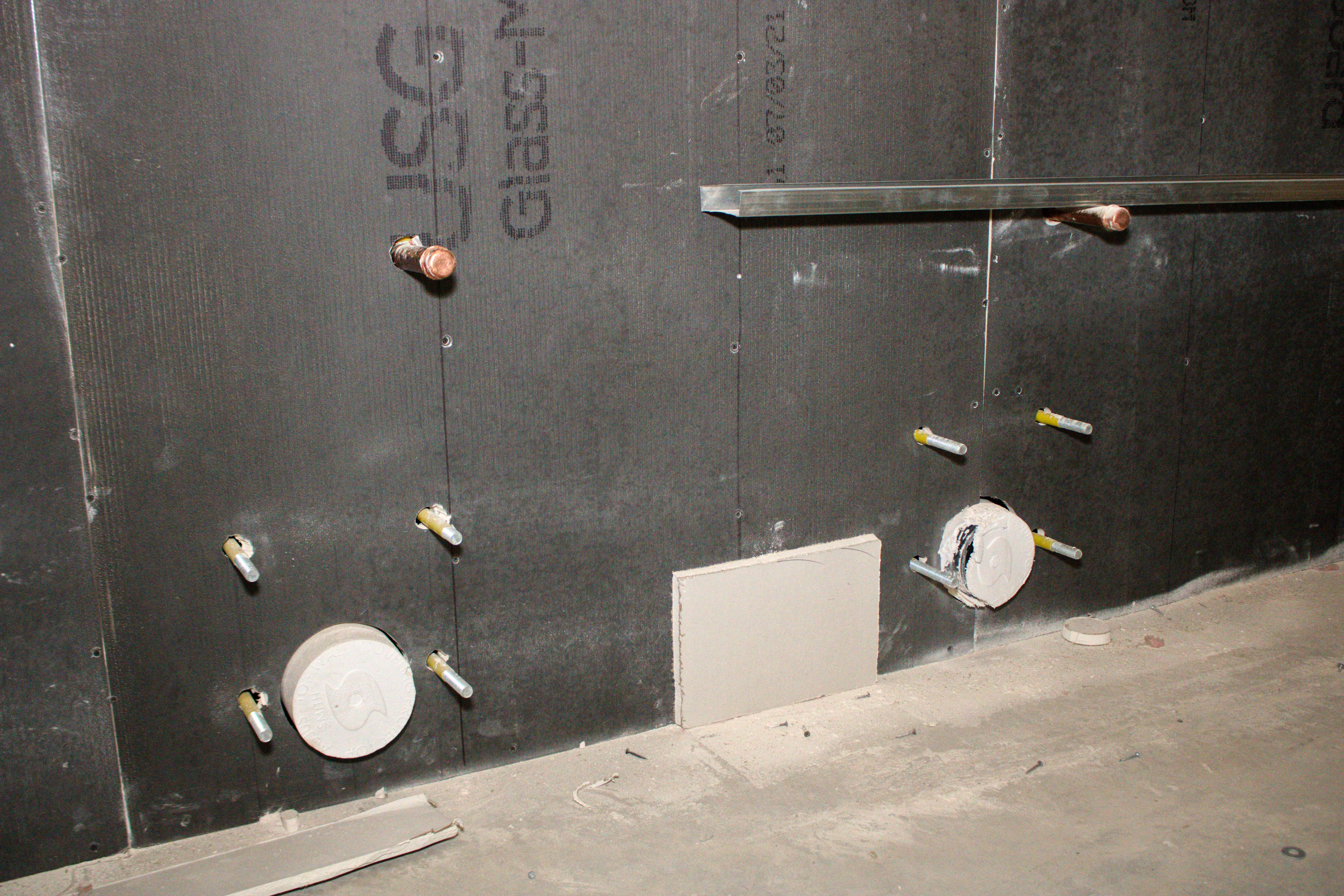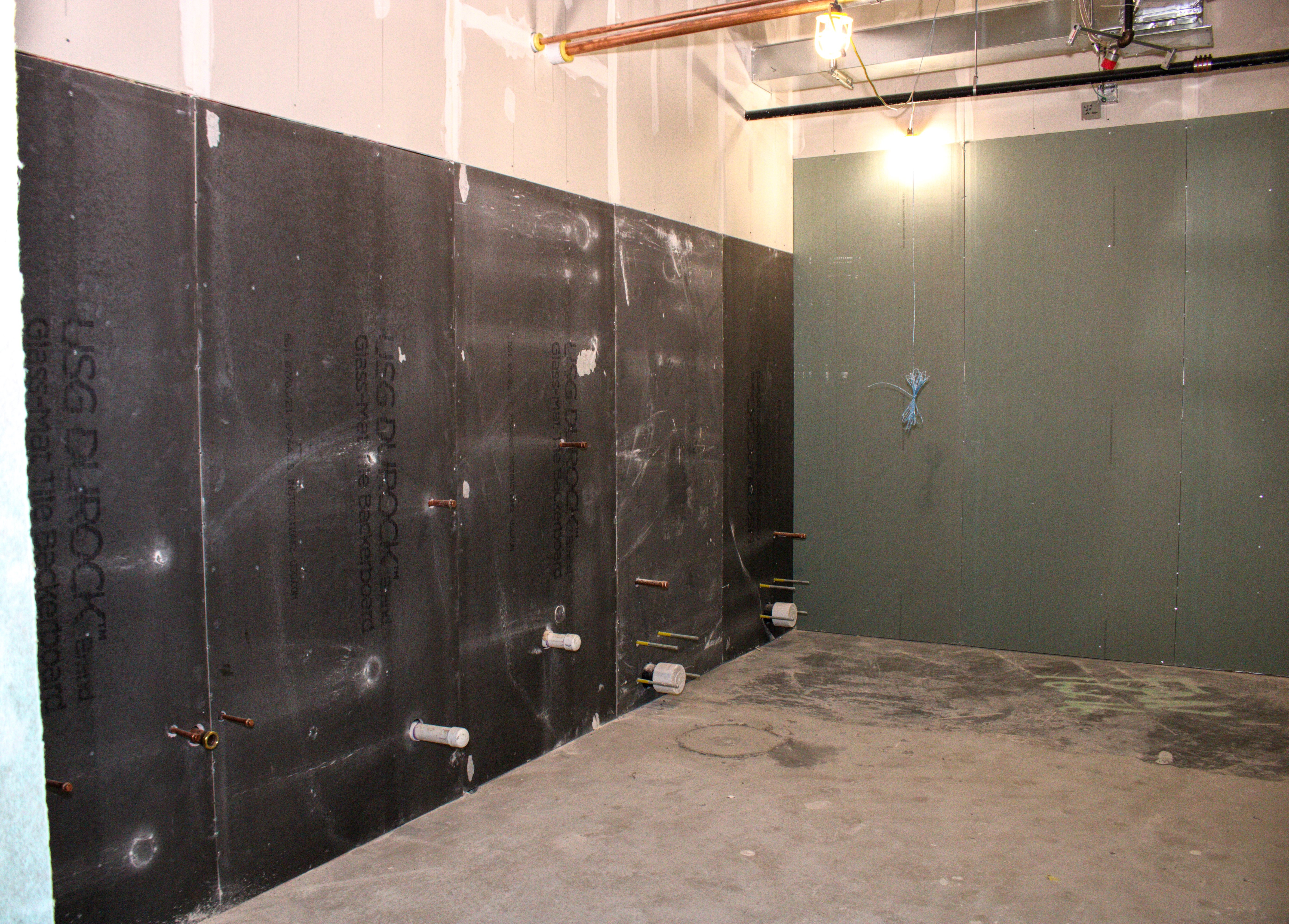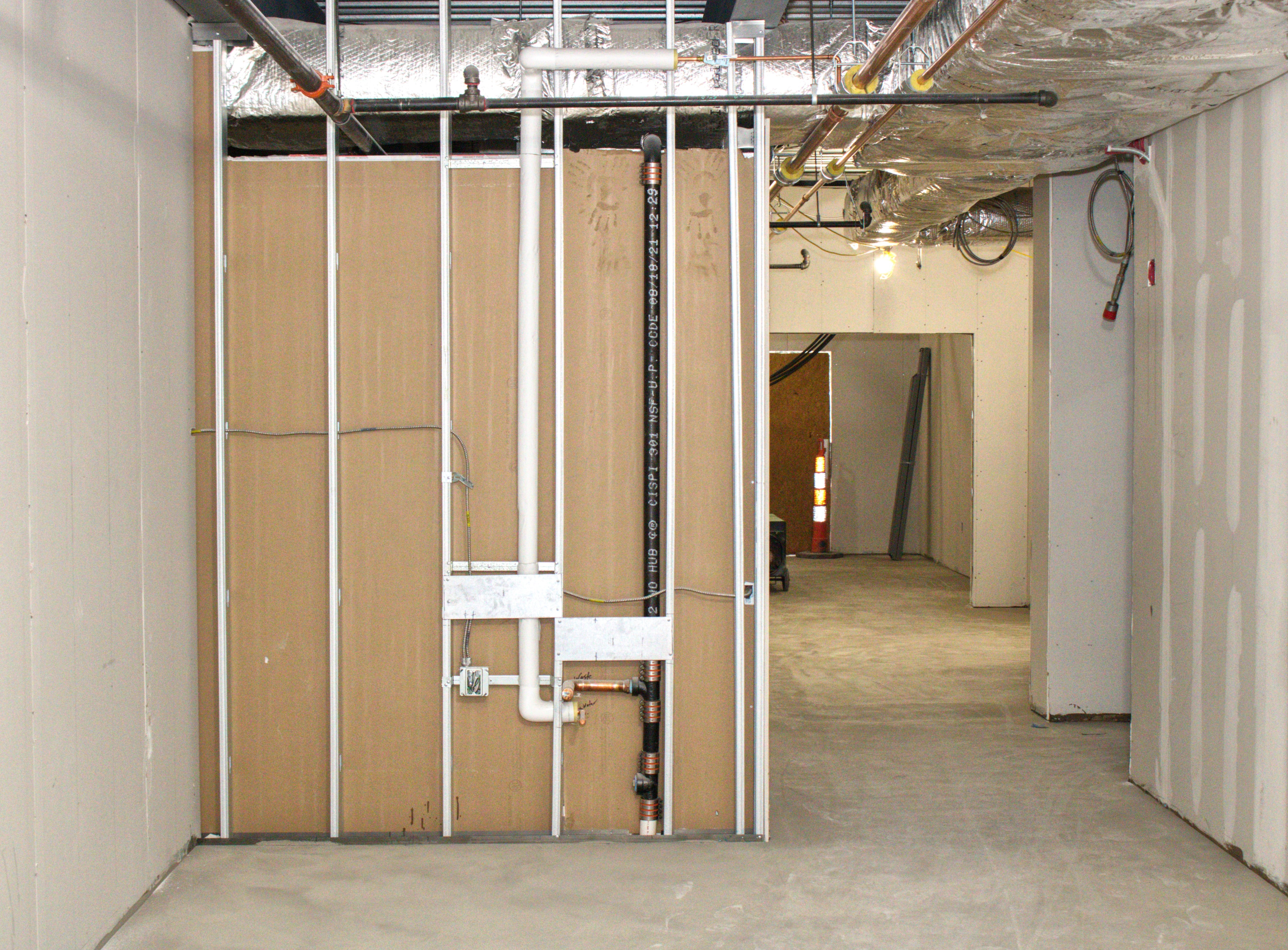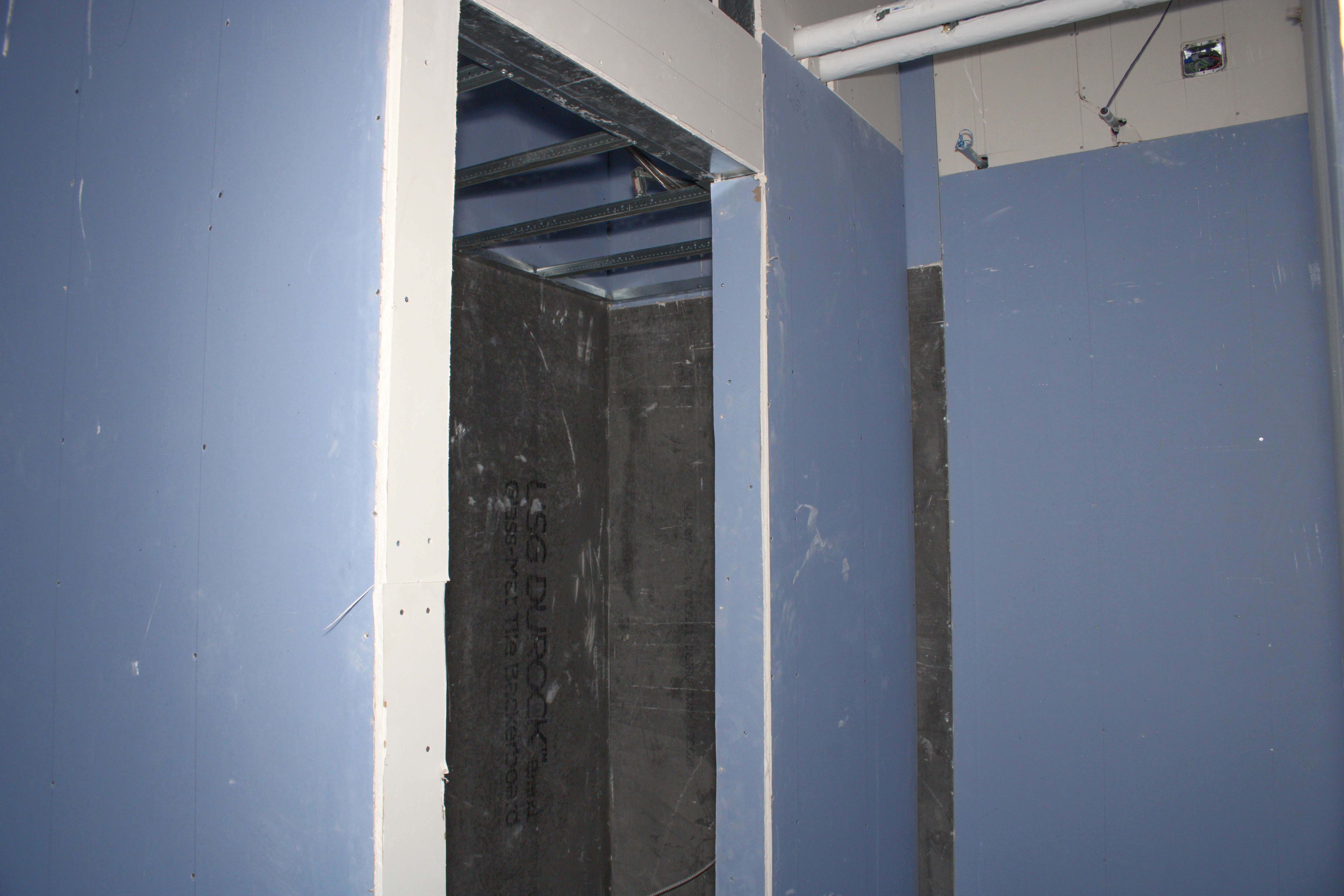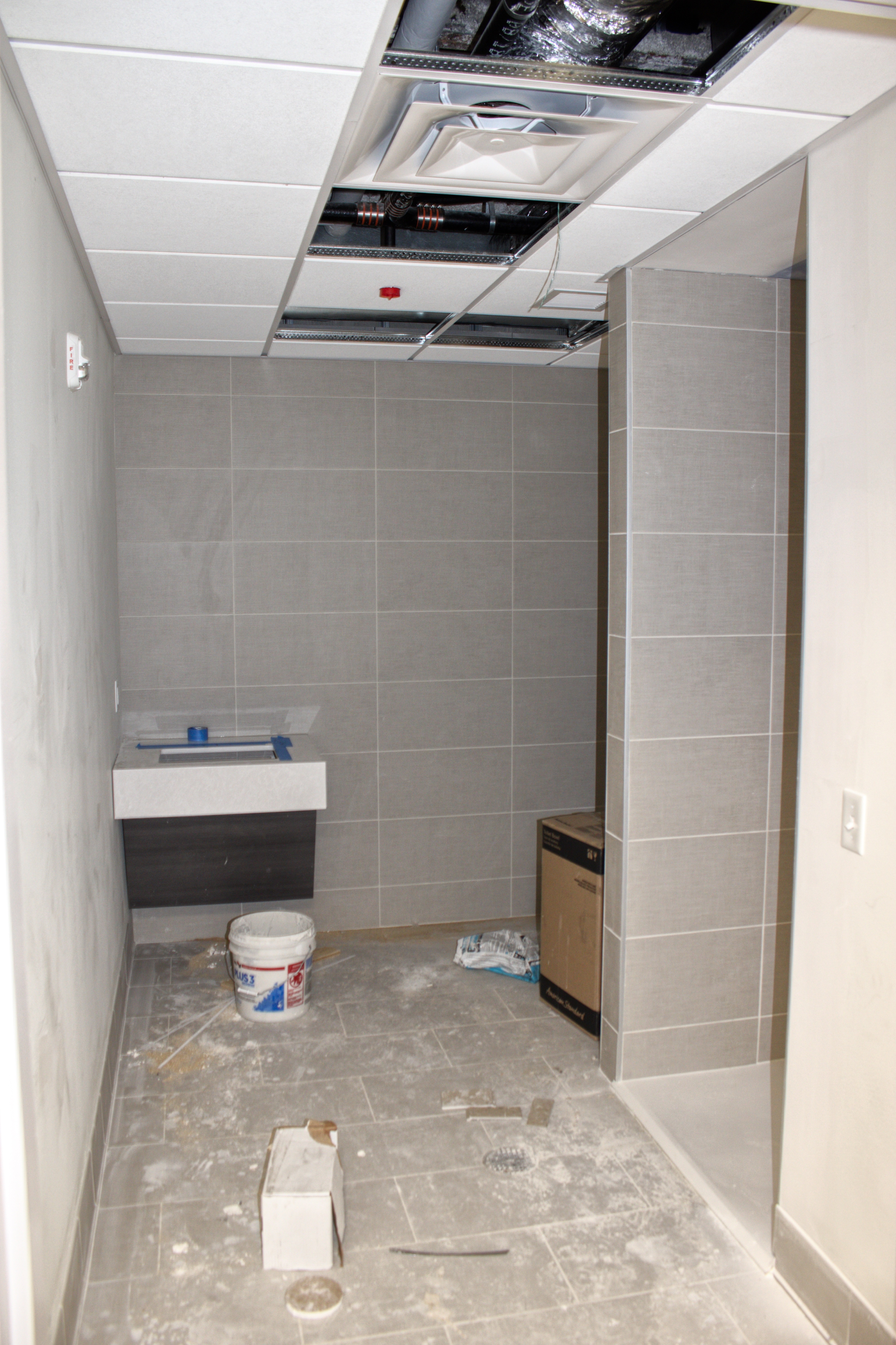 Plumbing: Now that the shower and bathroom/turn-out rooms and decontamination shower and laundry space have been framed, the plumbing rough has been in full force over the past 2 weeks and we will be looking forward for arrival of the new fixtures, sinks, toilets, etc. over the next month. The bathrooms have all been field measured for the partitions and will be installed once manufactured.