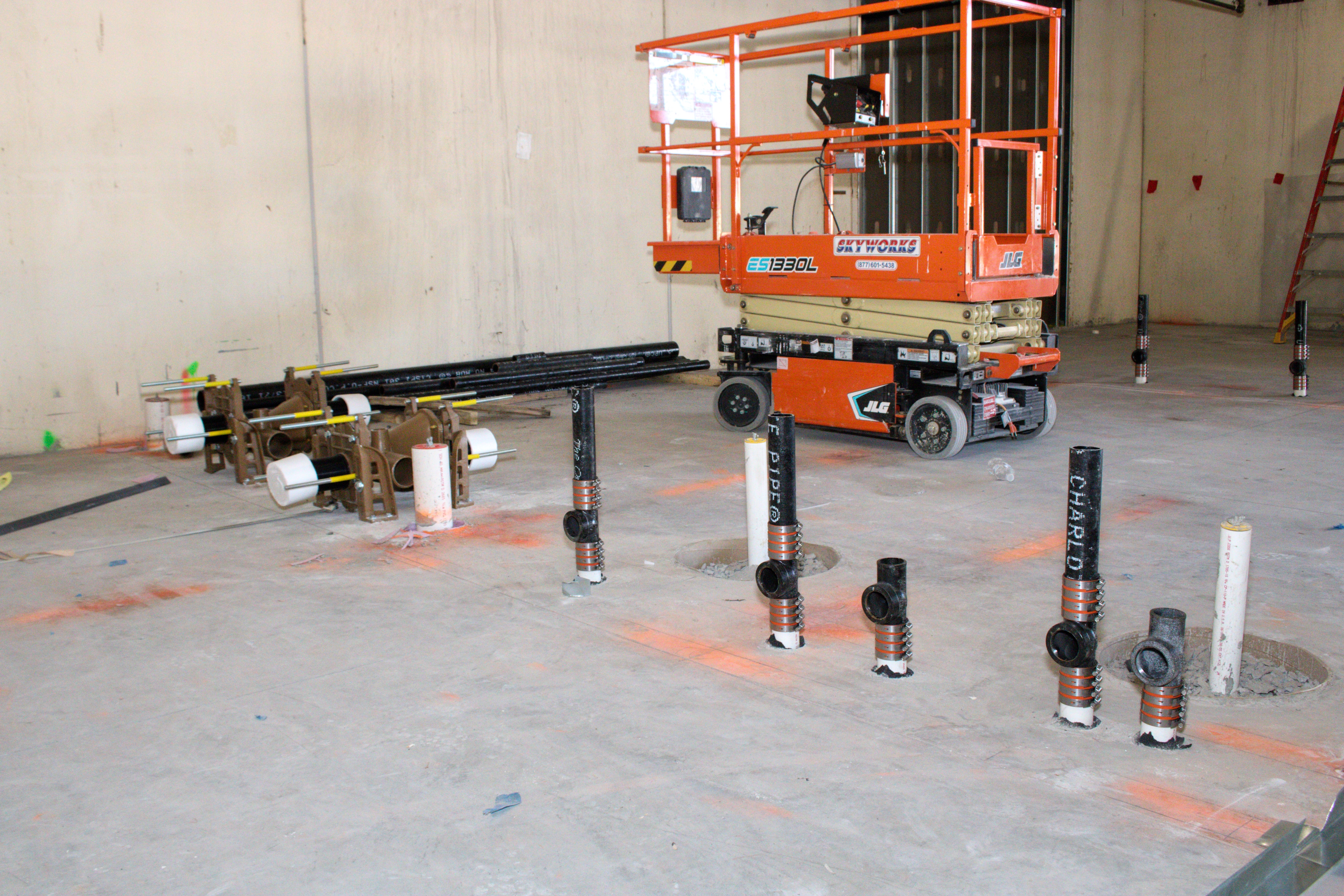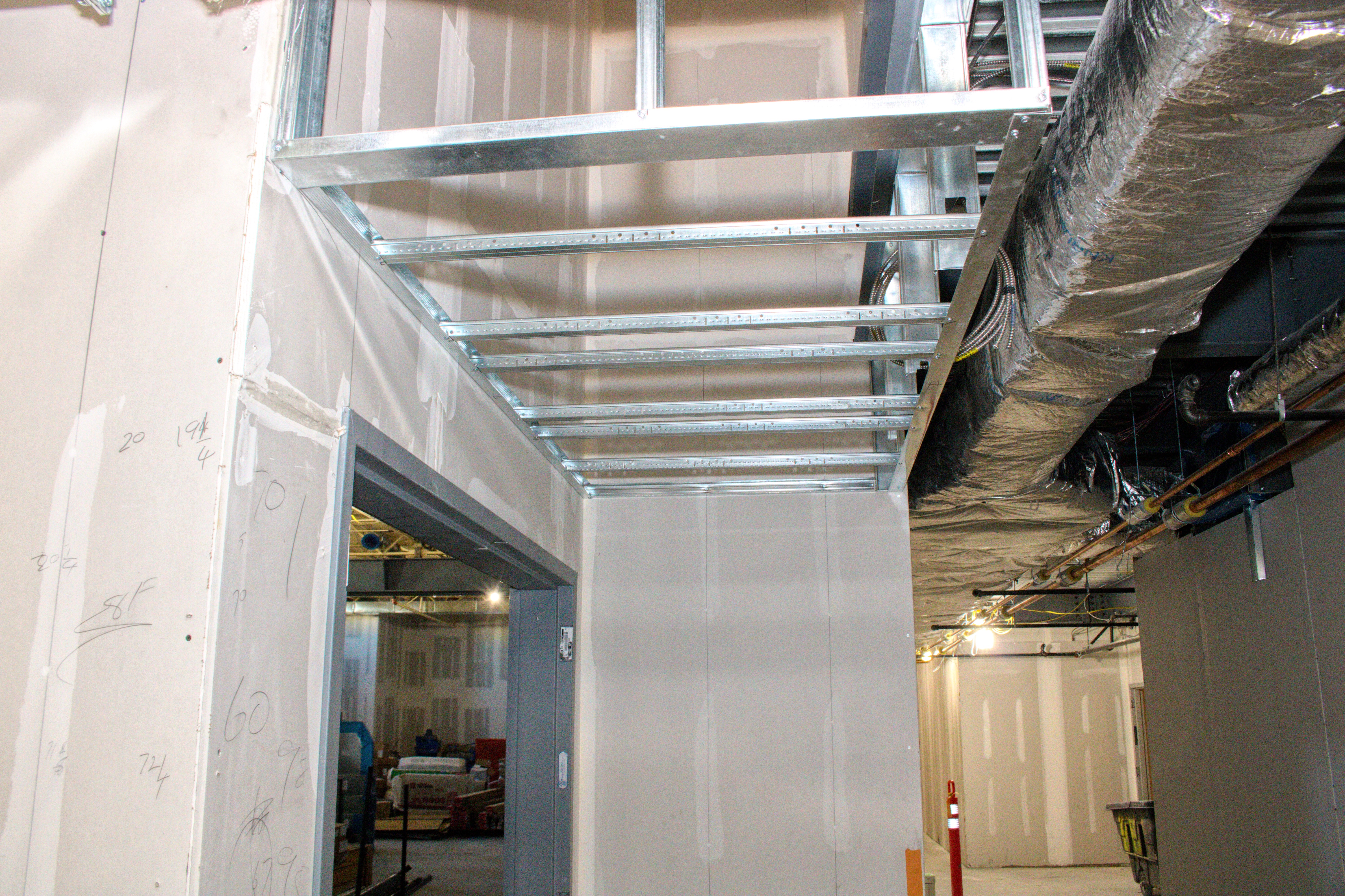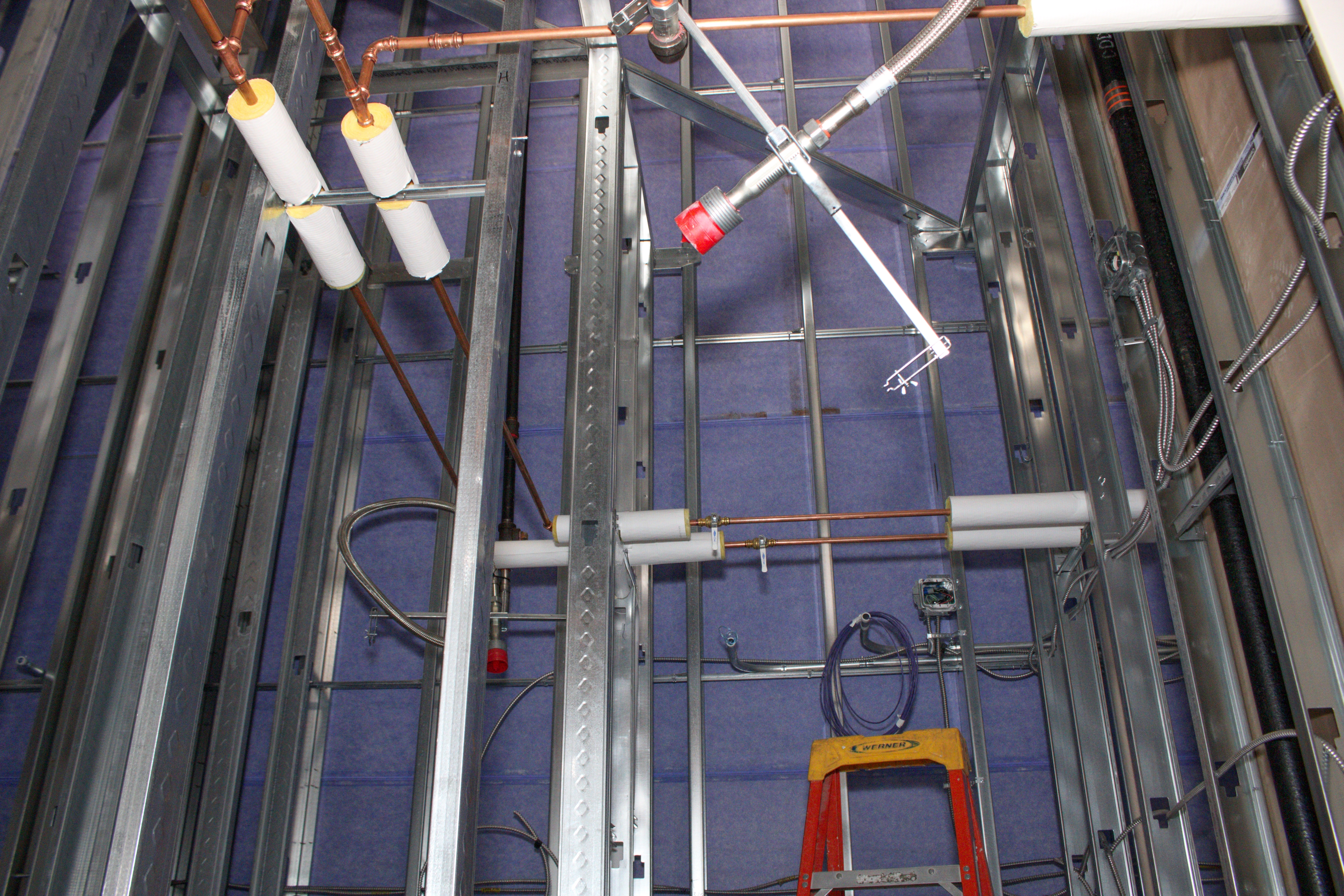 Sprinkler: Starting to get into sprinkler head install in the grid, job wide. New Fire department connections have been installed at the exterior and hydrostatic testing of the system has commence and will continue over the next few weeks.