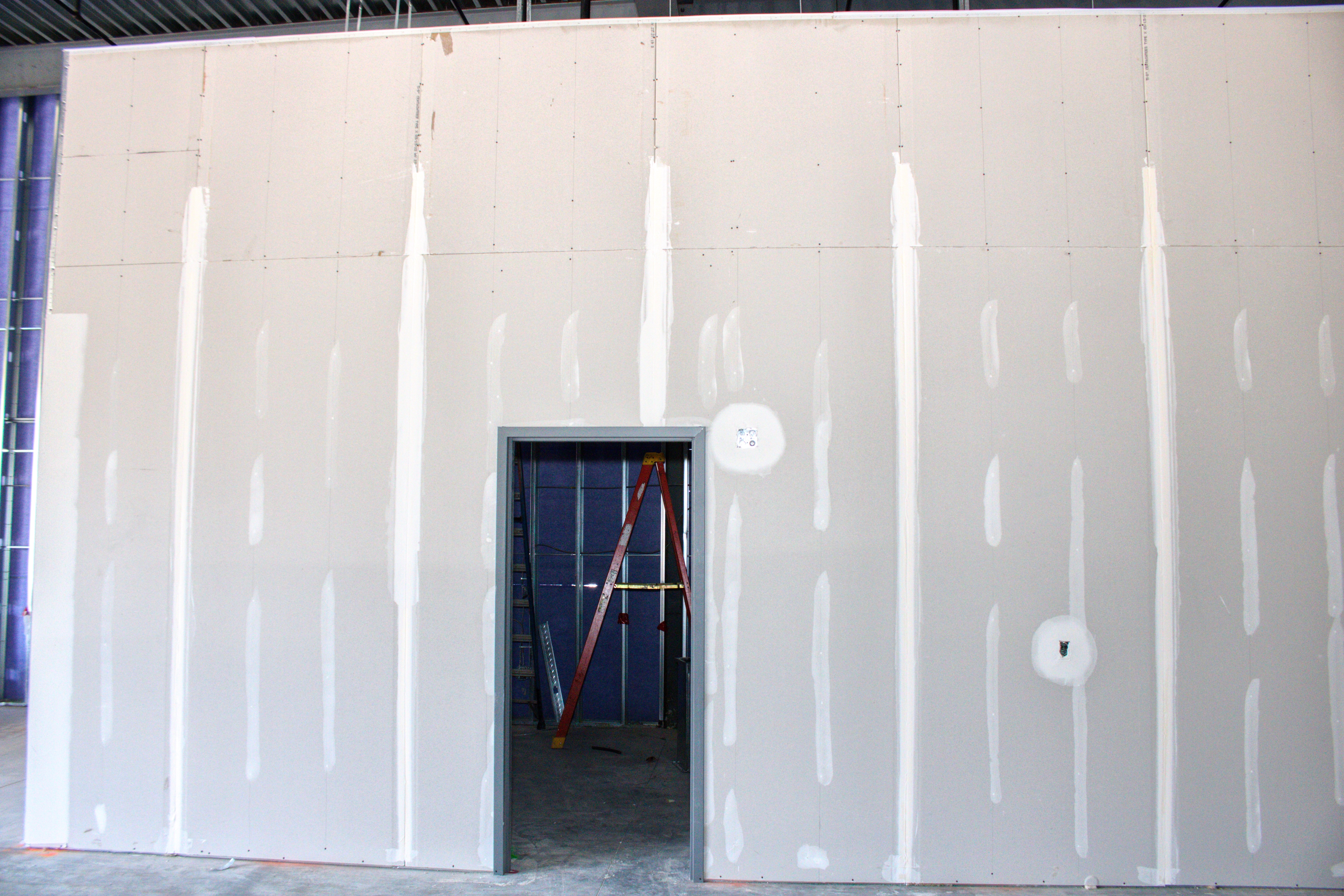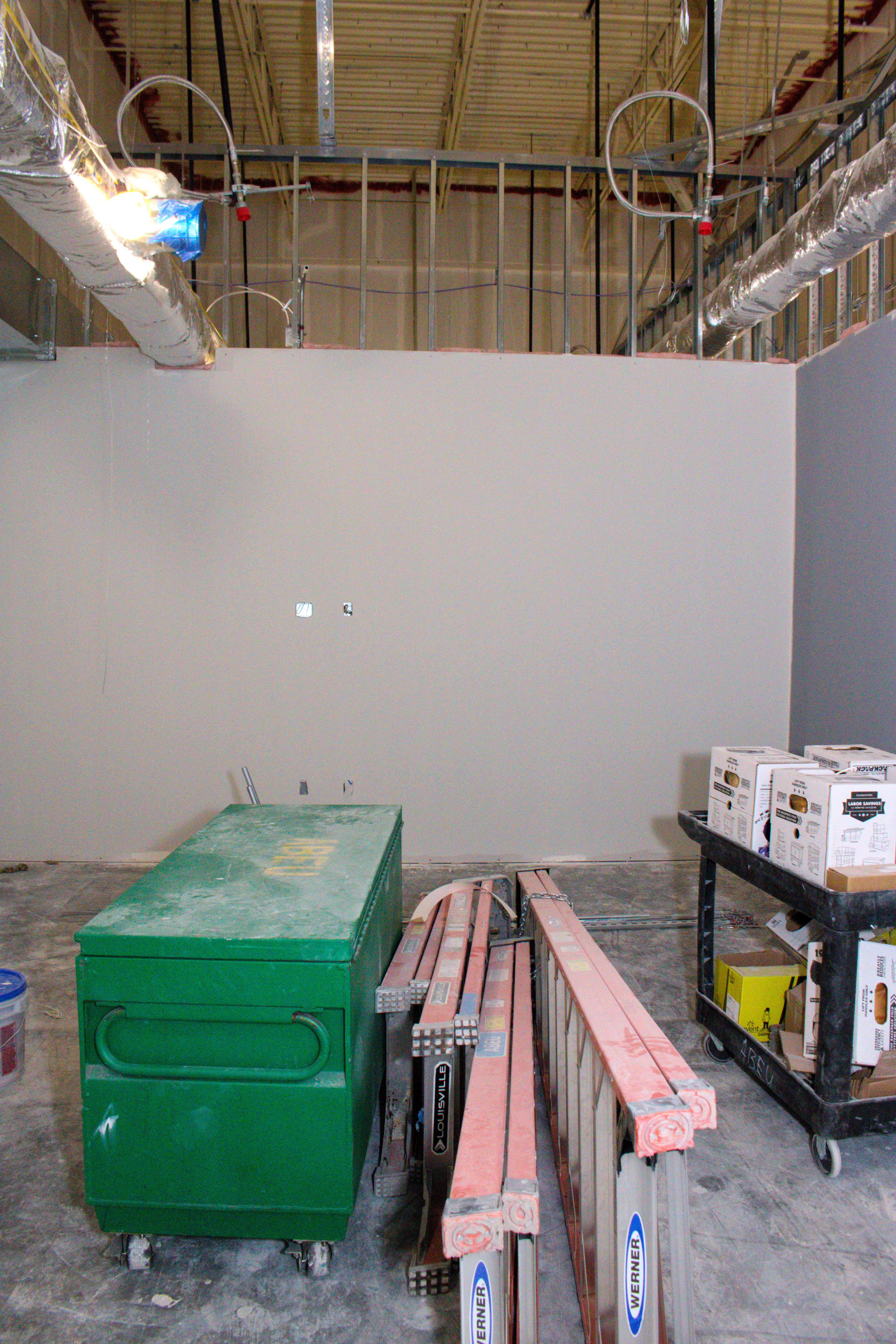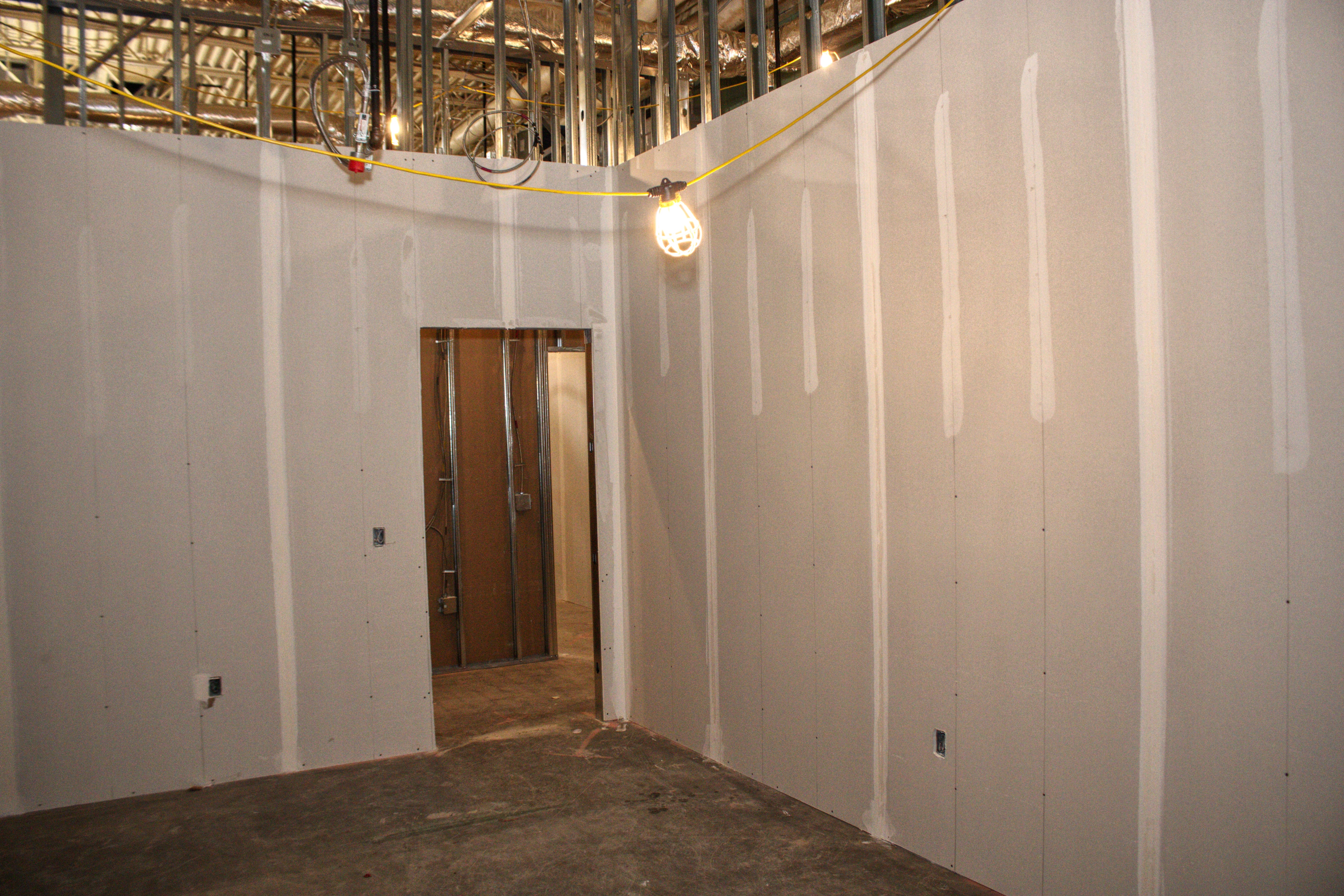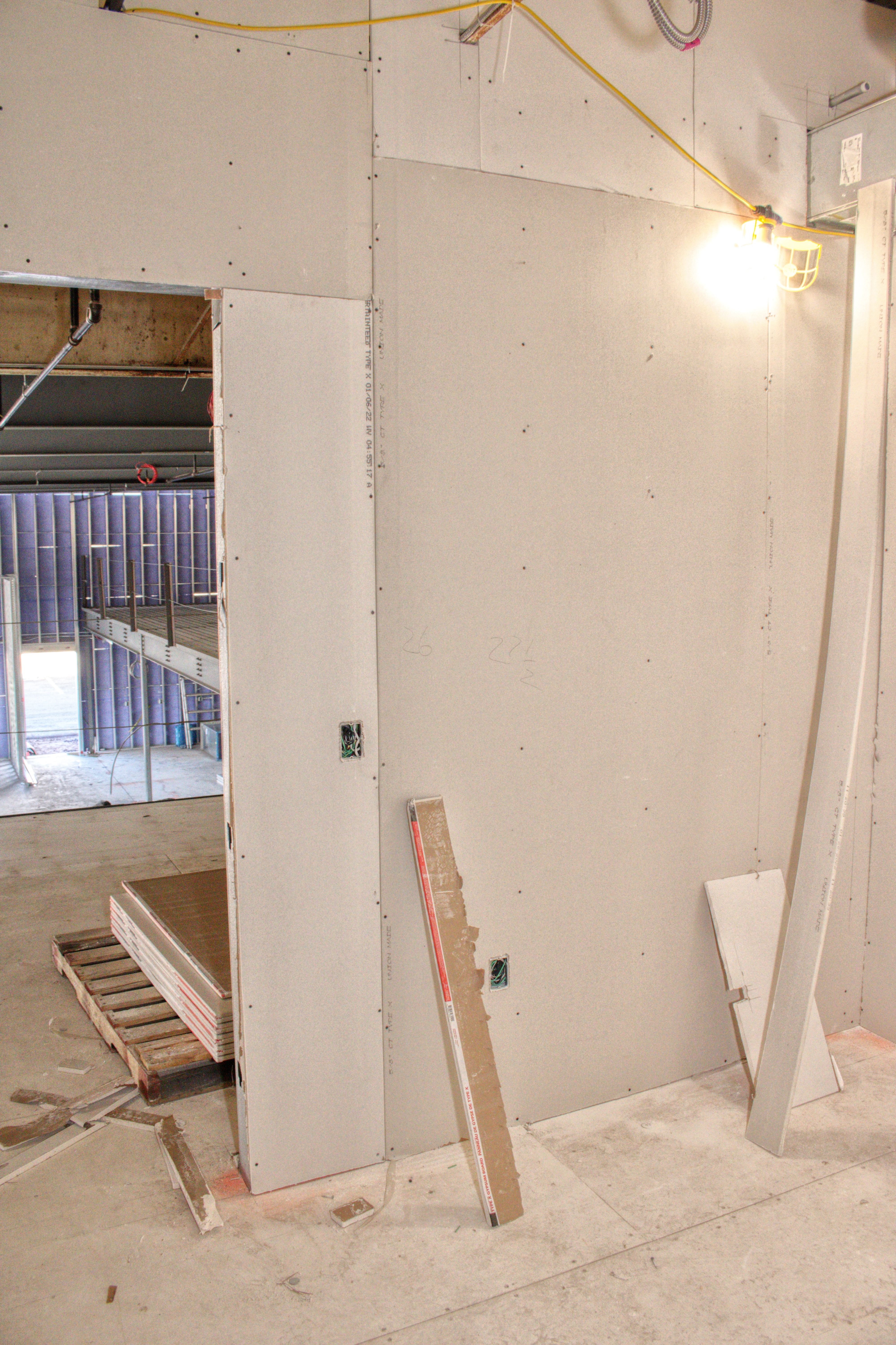 Drywall: 95 % of the interior walls South of A line have been framed, drywall panels have been installed and are being finish coated with tape and spackle now. Ready for paint.