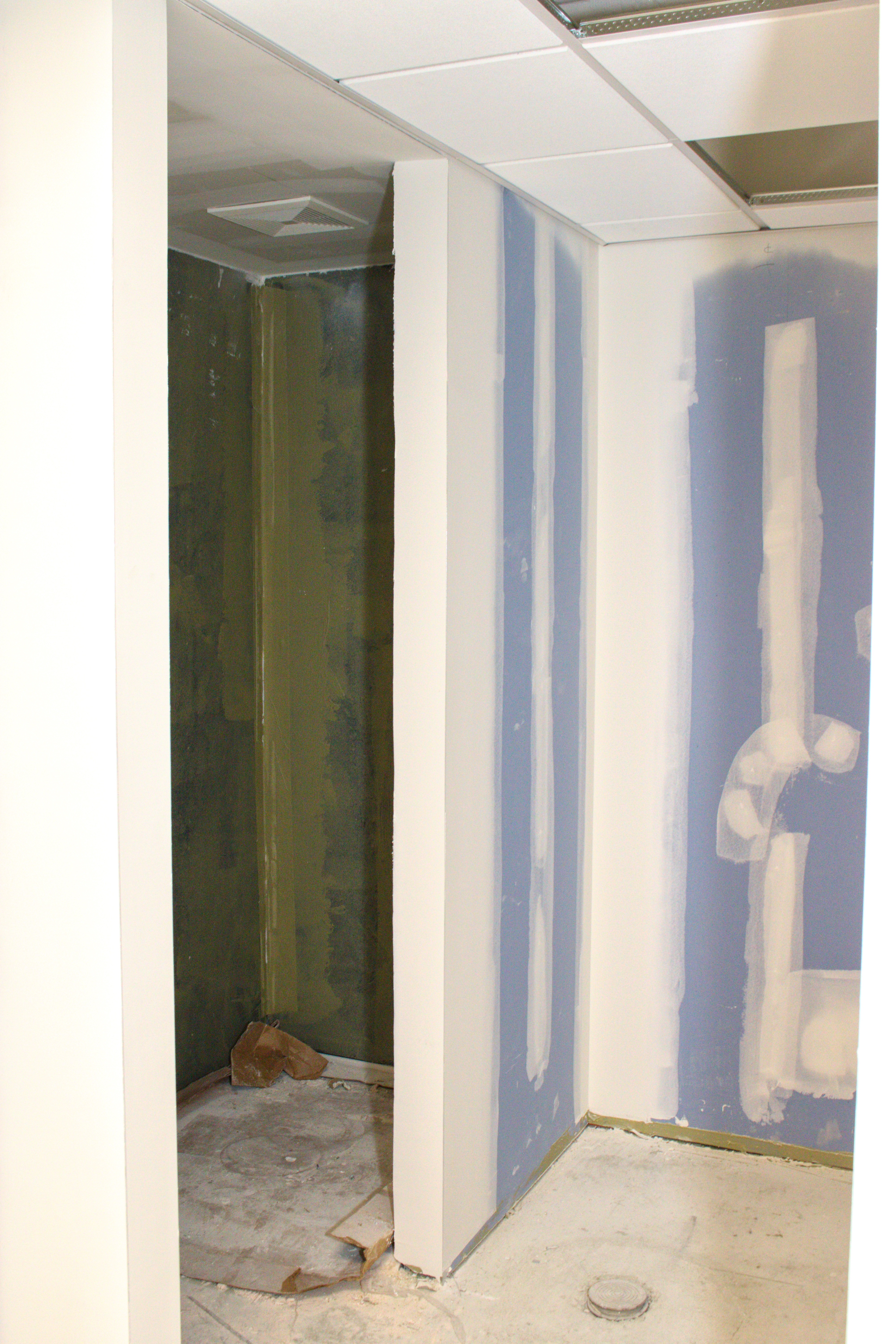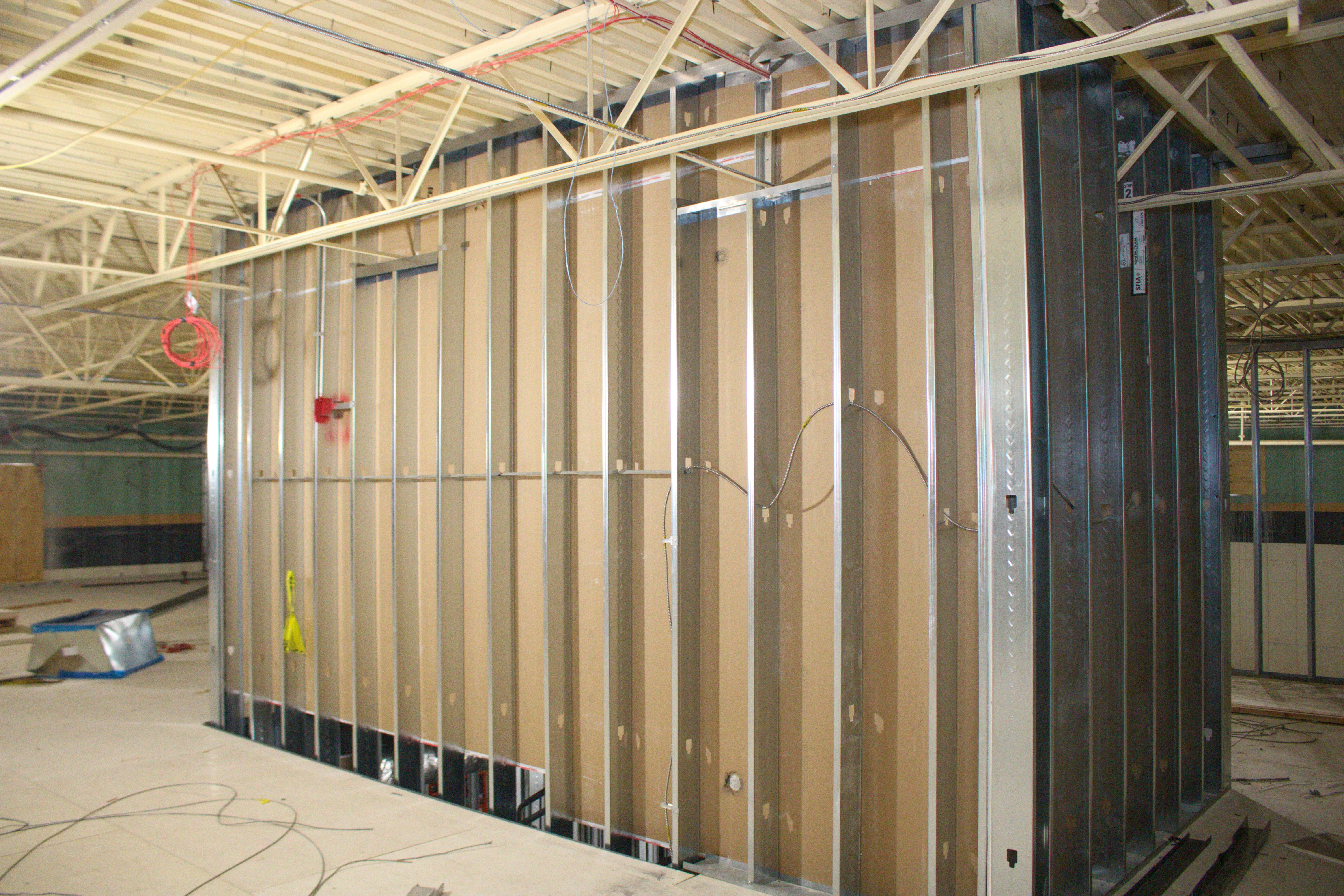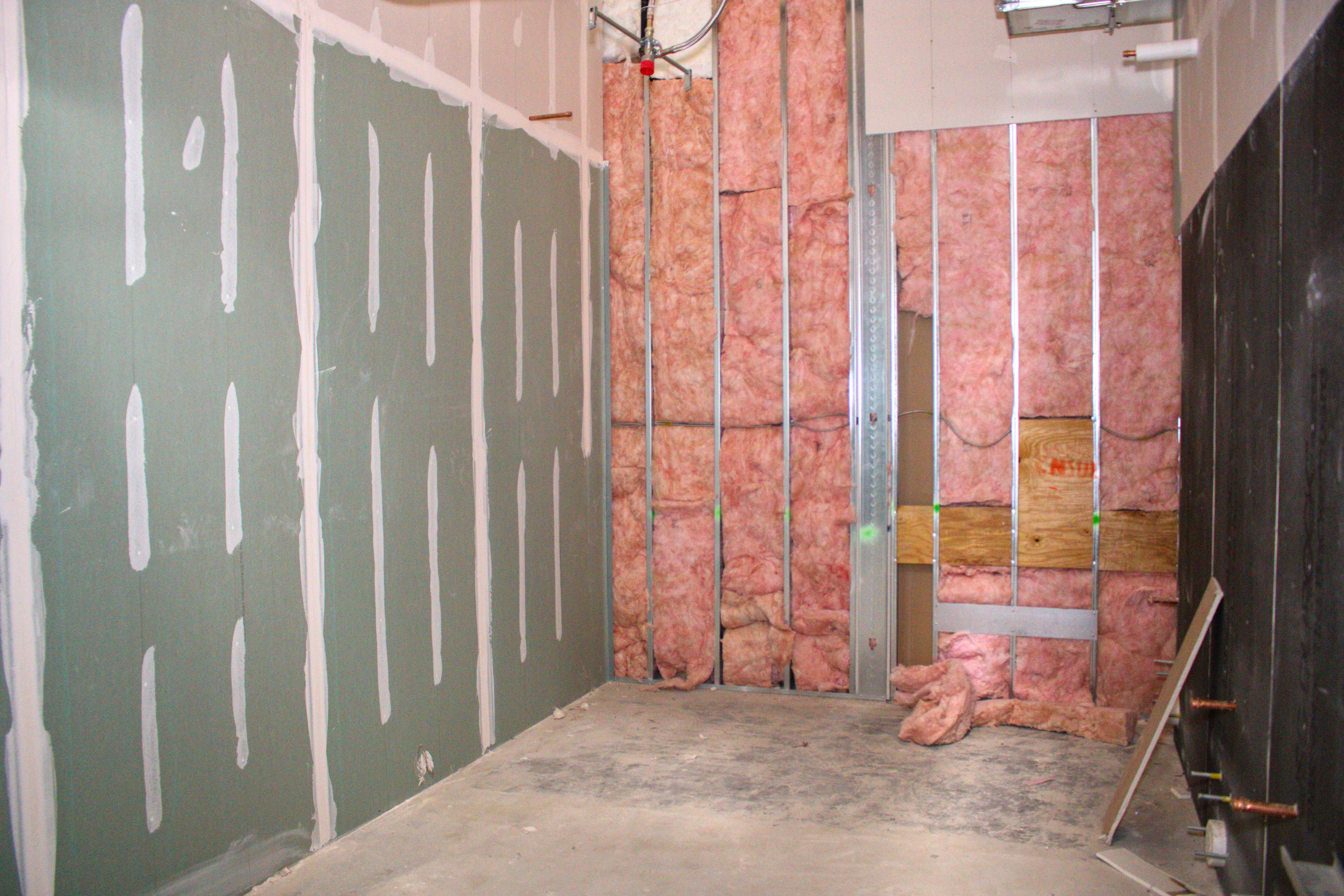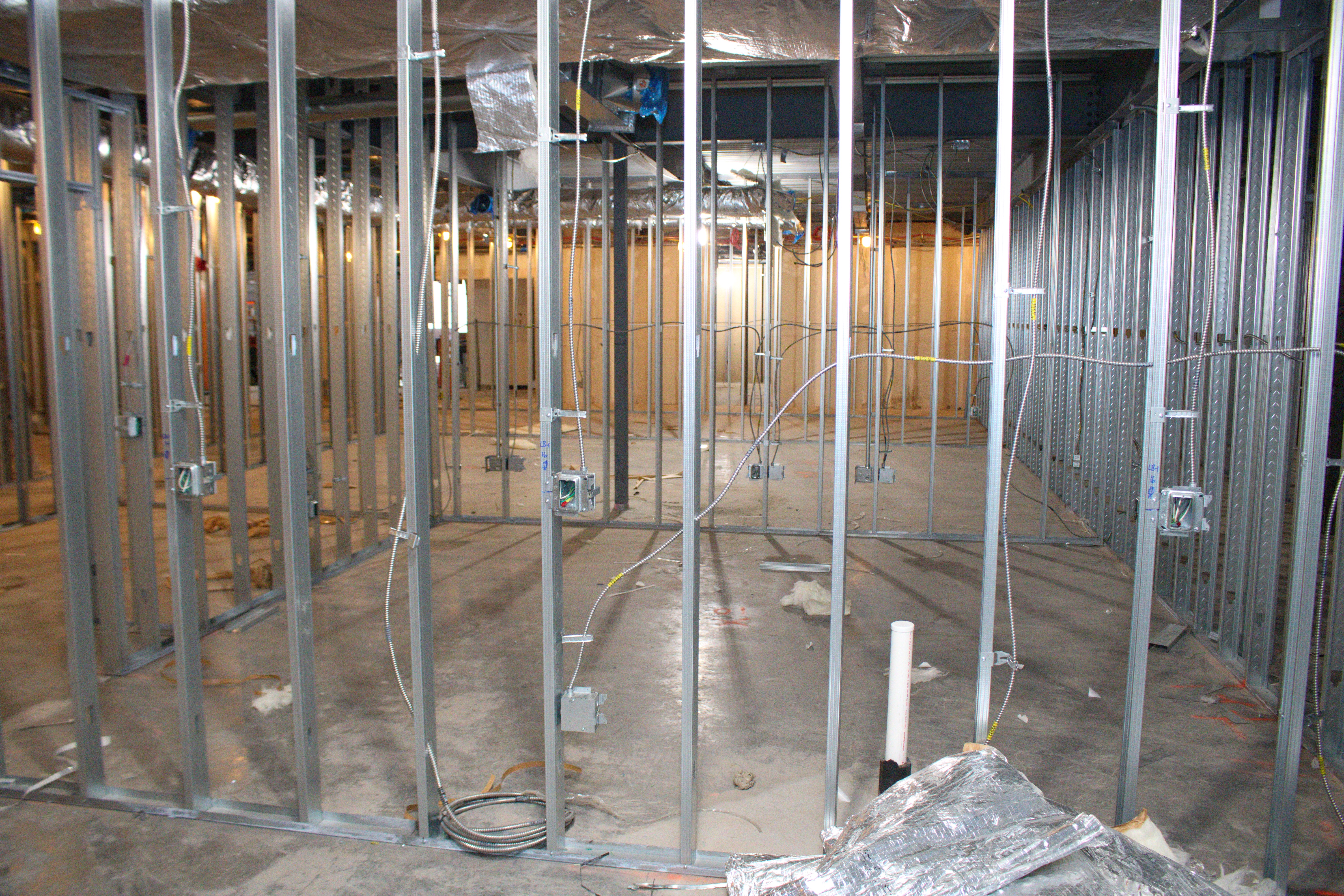 Drywall: 95 % of the interior walls South of A line have been framed, drywall panels have been installed and are being finish coated with tape and spackle now. Ready for paint.