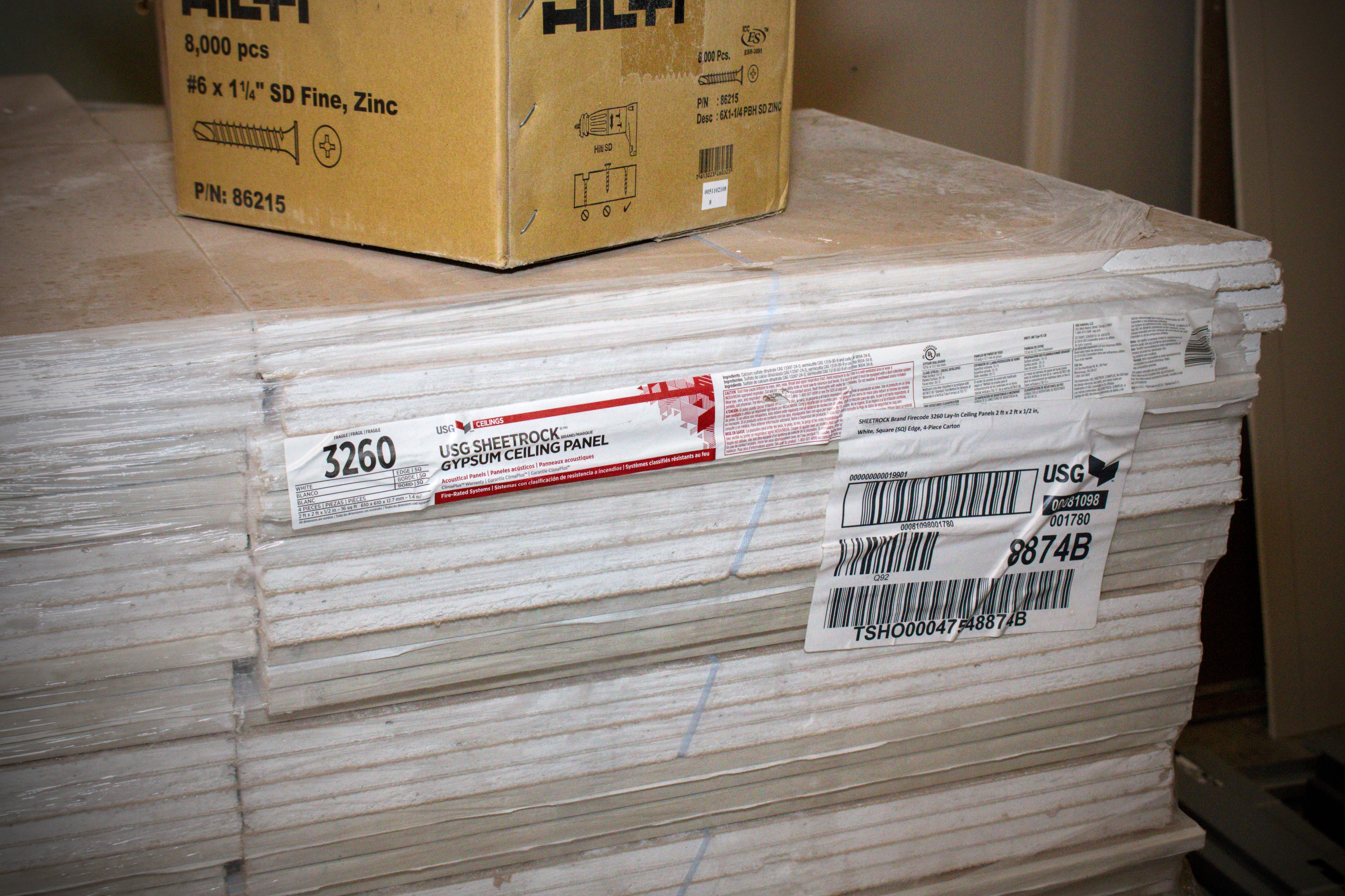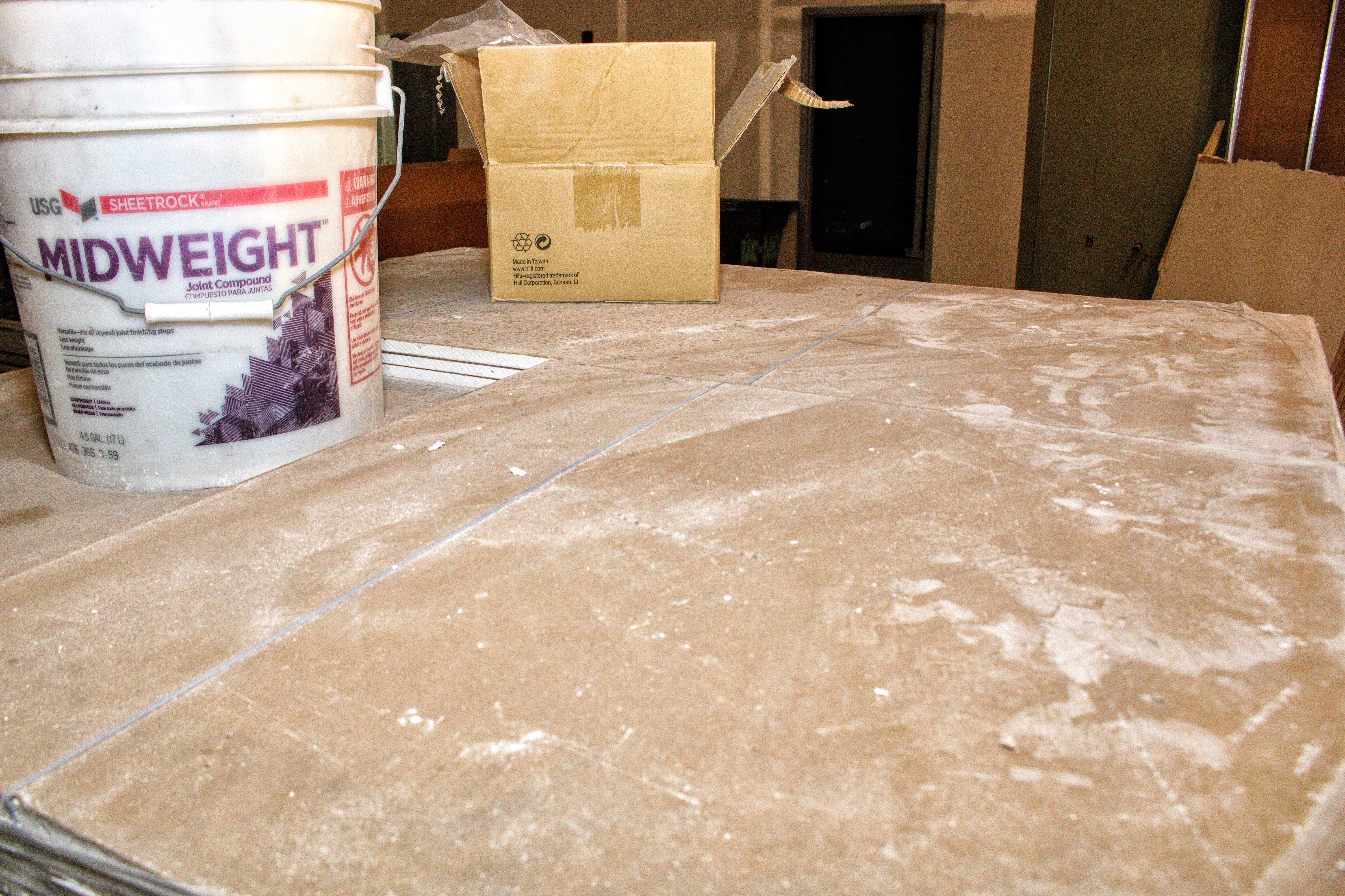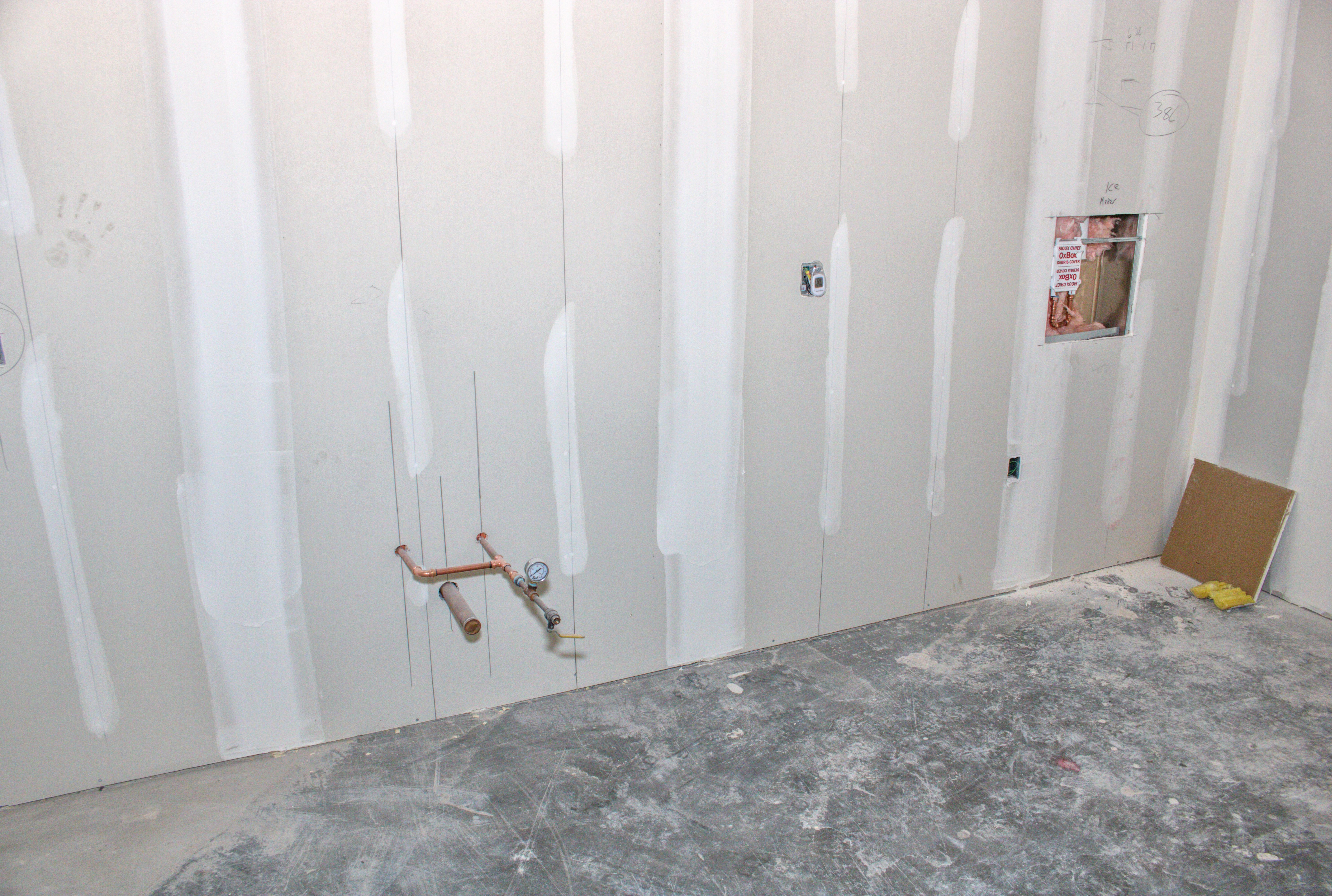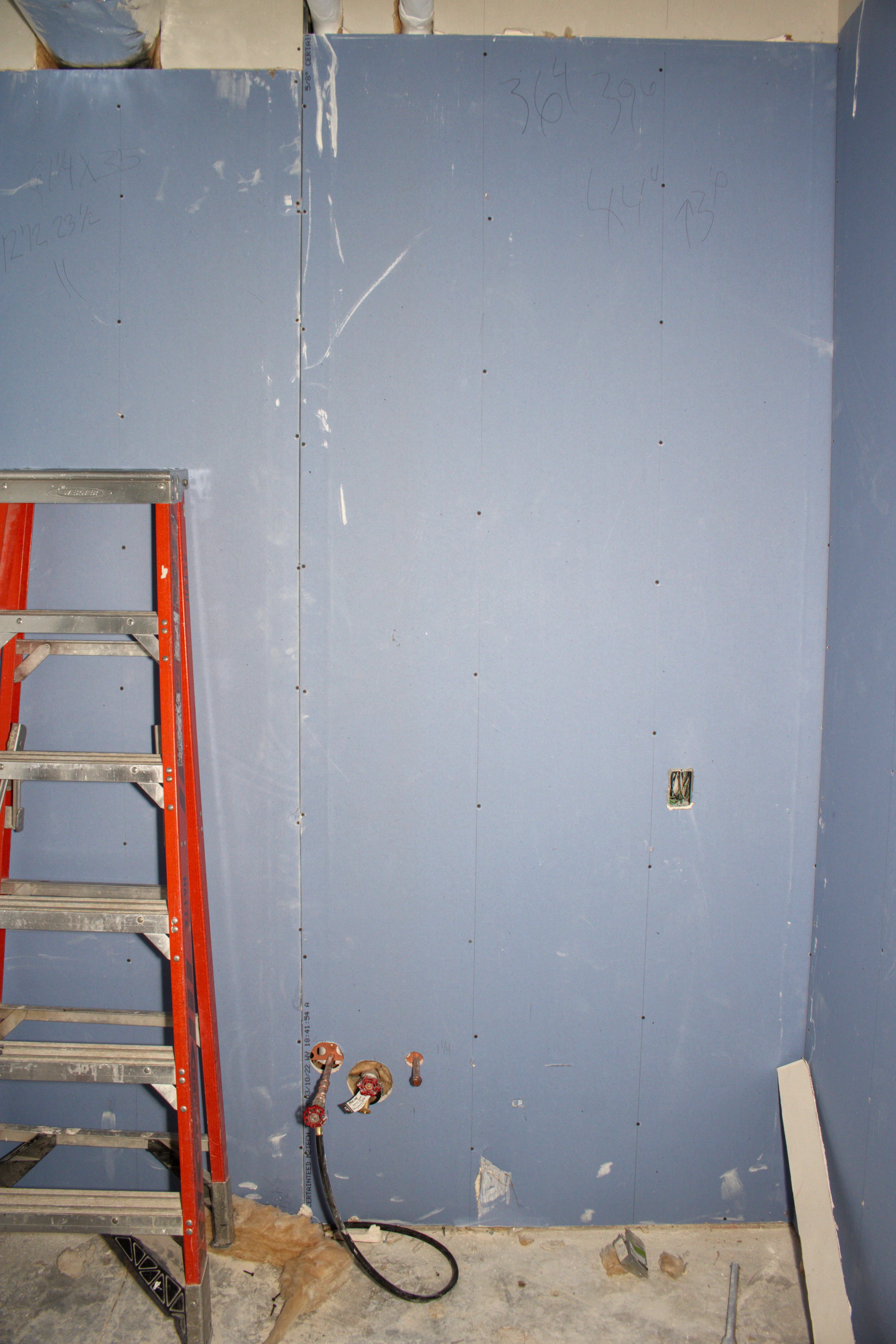 Drywall: 95 % of the interior walls South of A line have been framed, drywall panels have been installed and are being finish coated with tape and spackle now. Ready for paint.