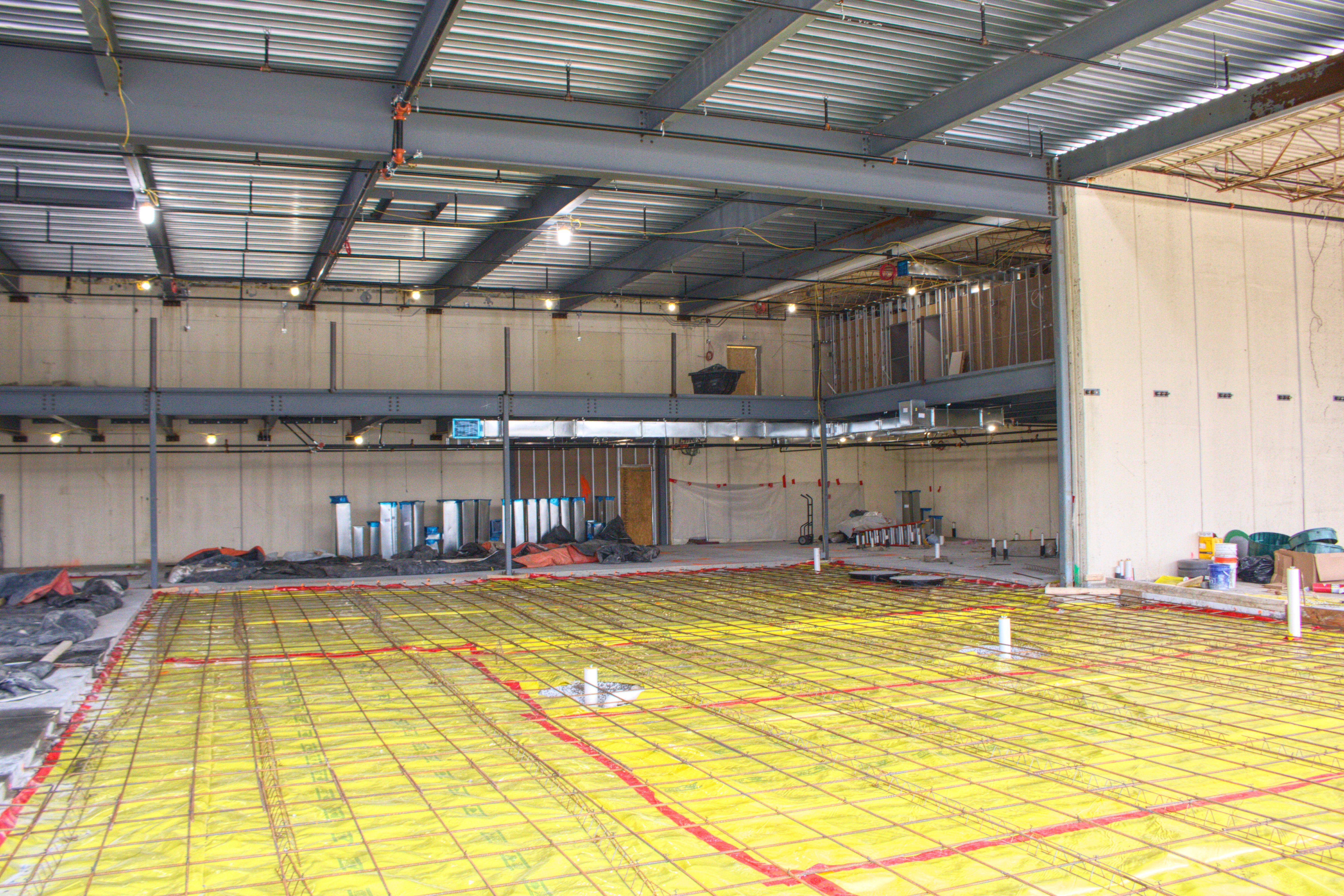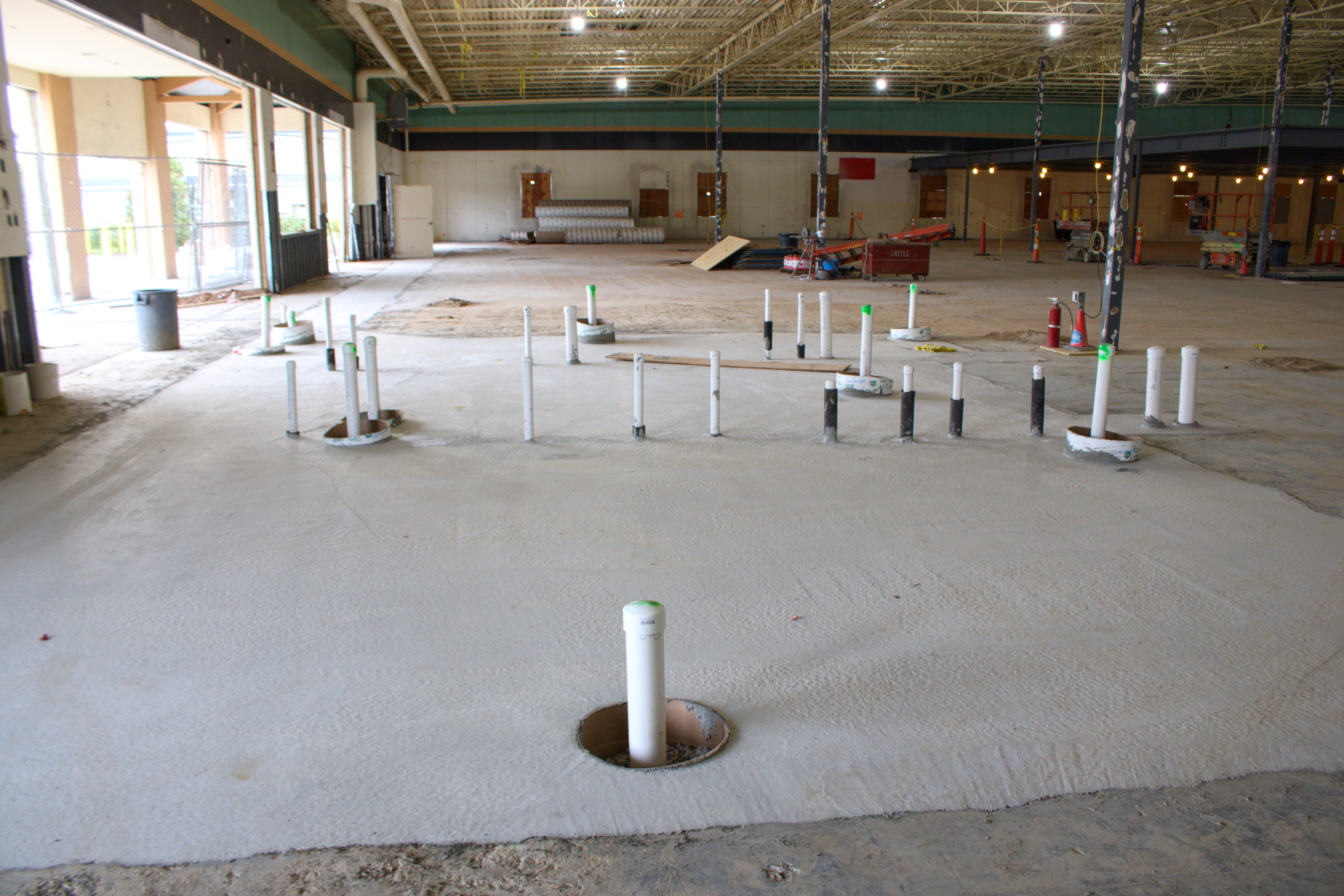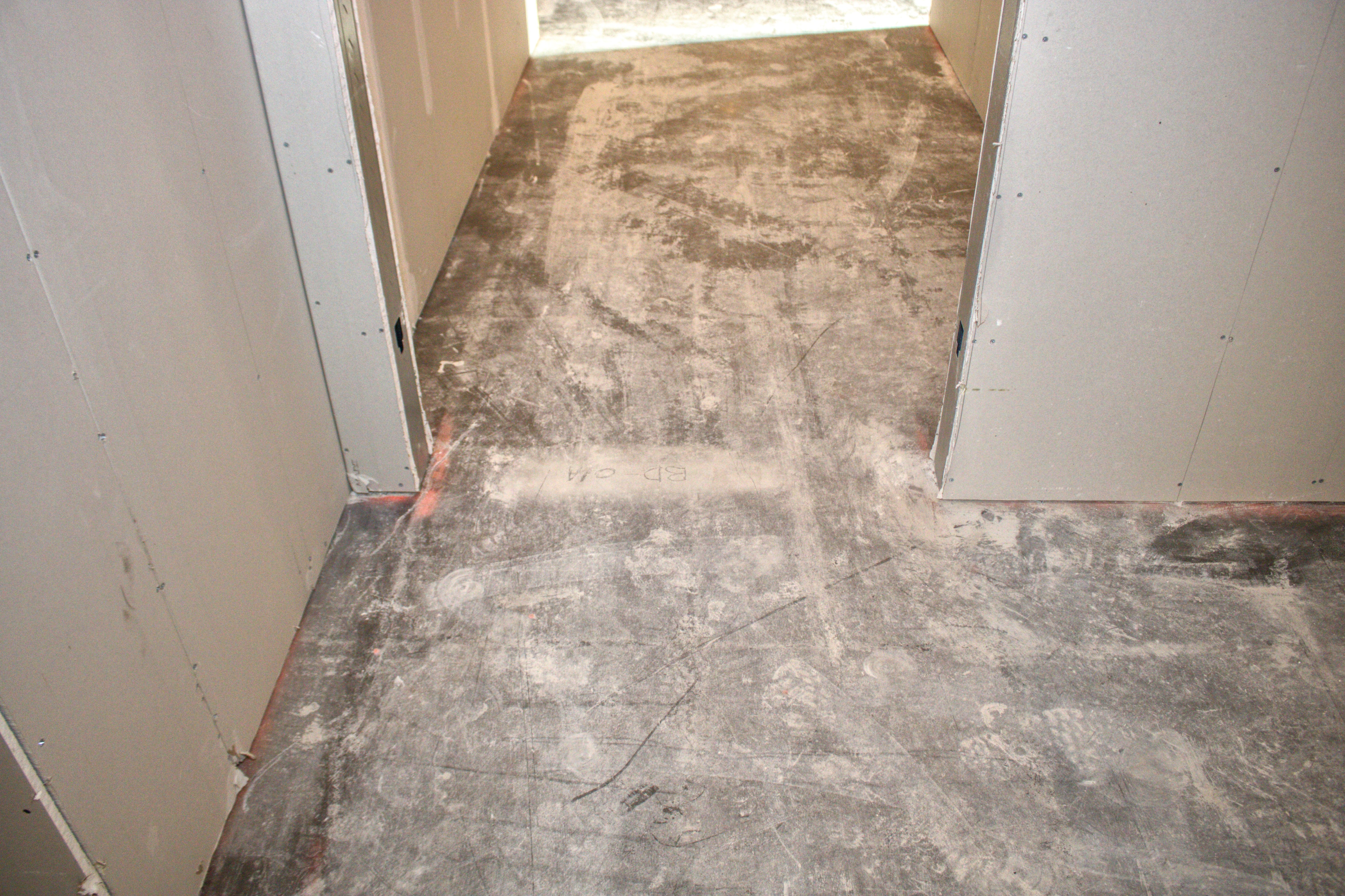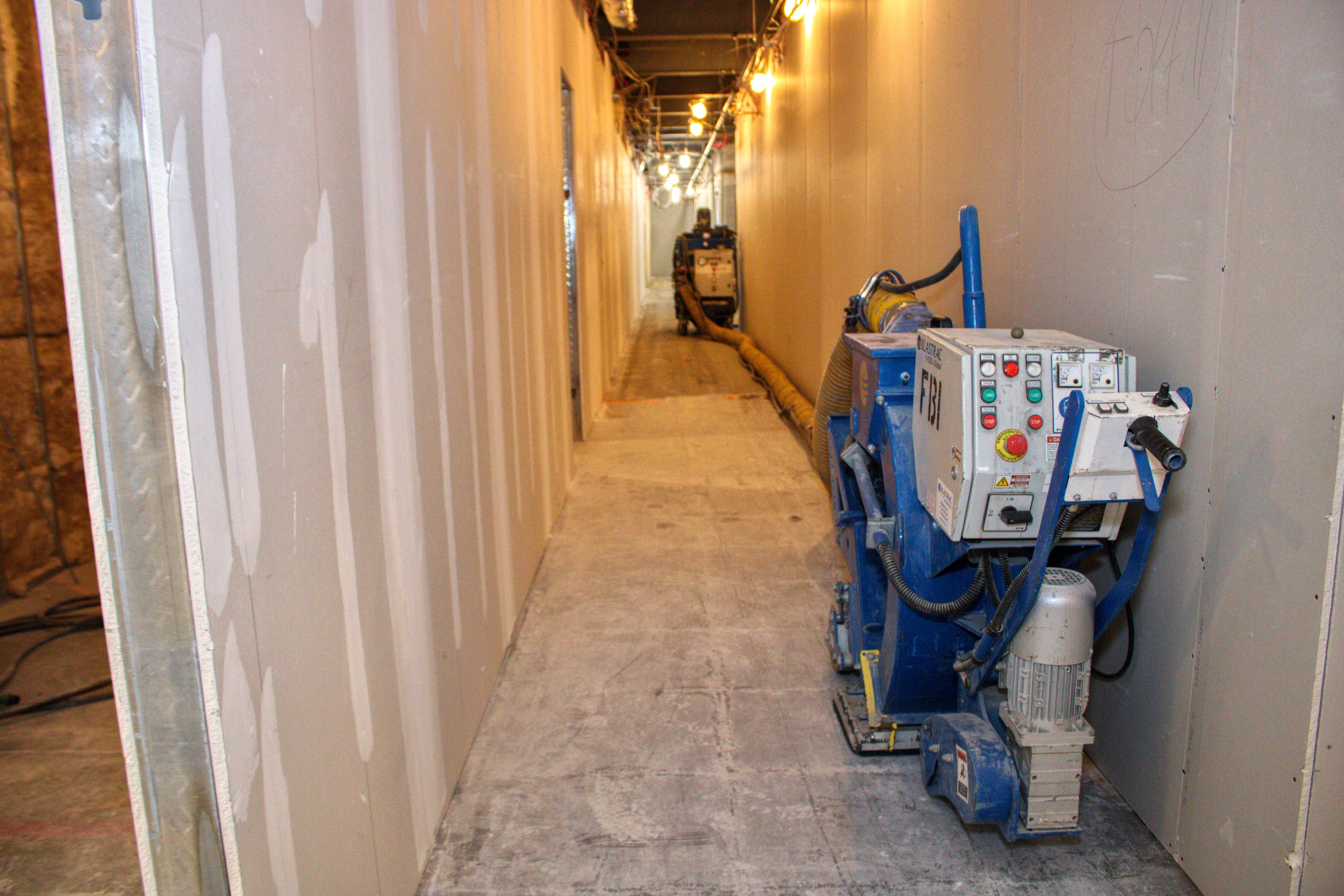 Flooring: The flooring contractor has been prepping the existing slab for finishes including installation of a vapor barrier which protects the eventual finished floor materials.