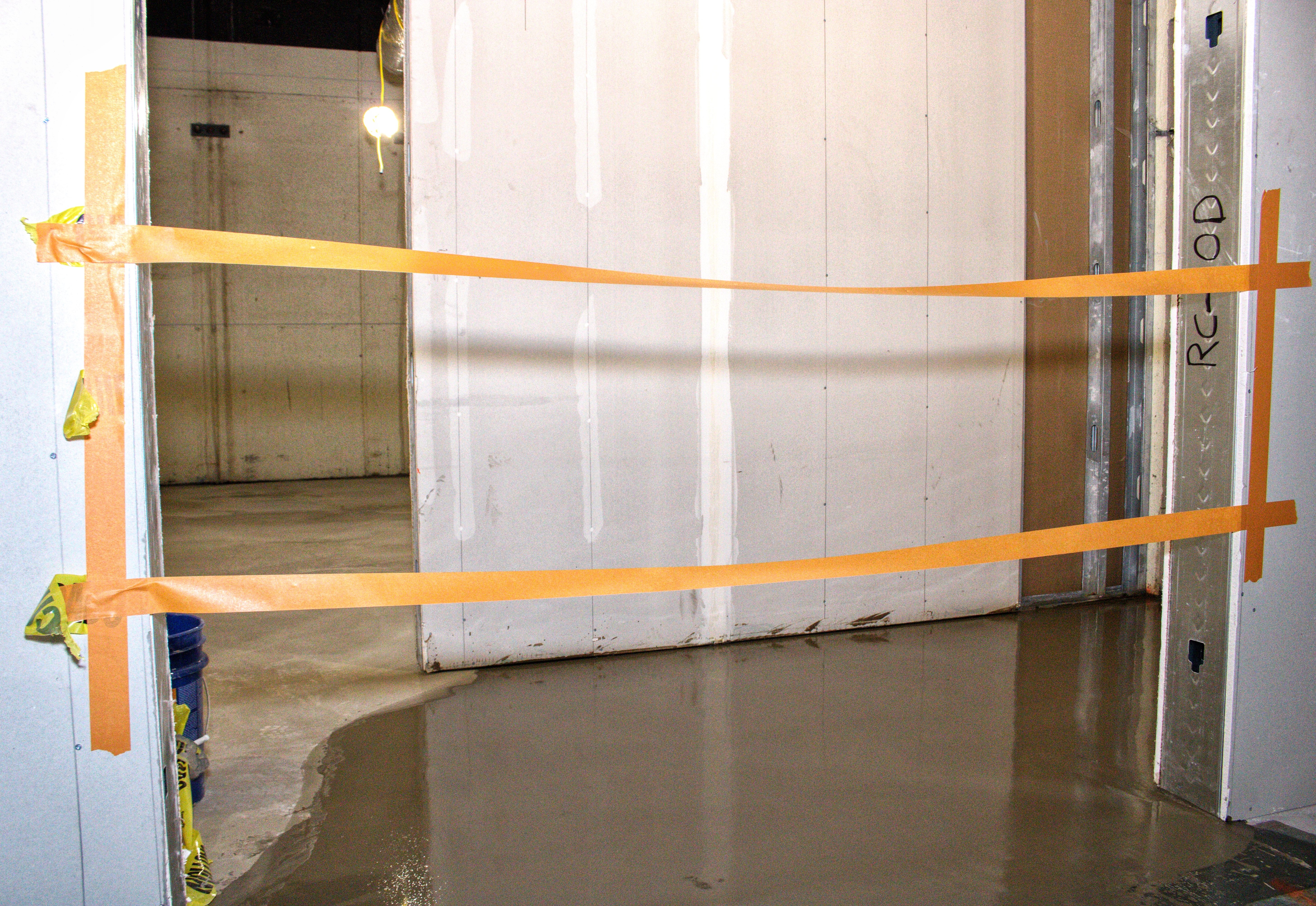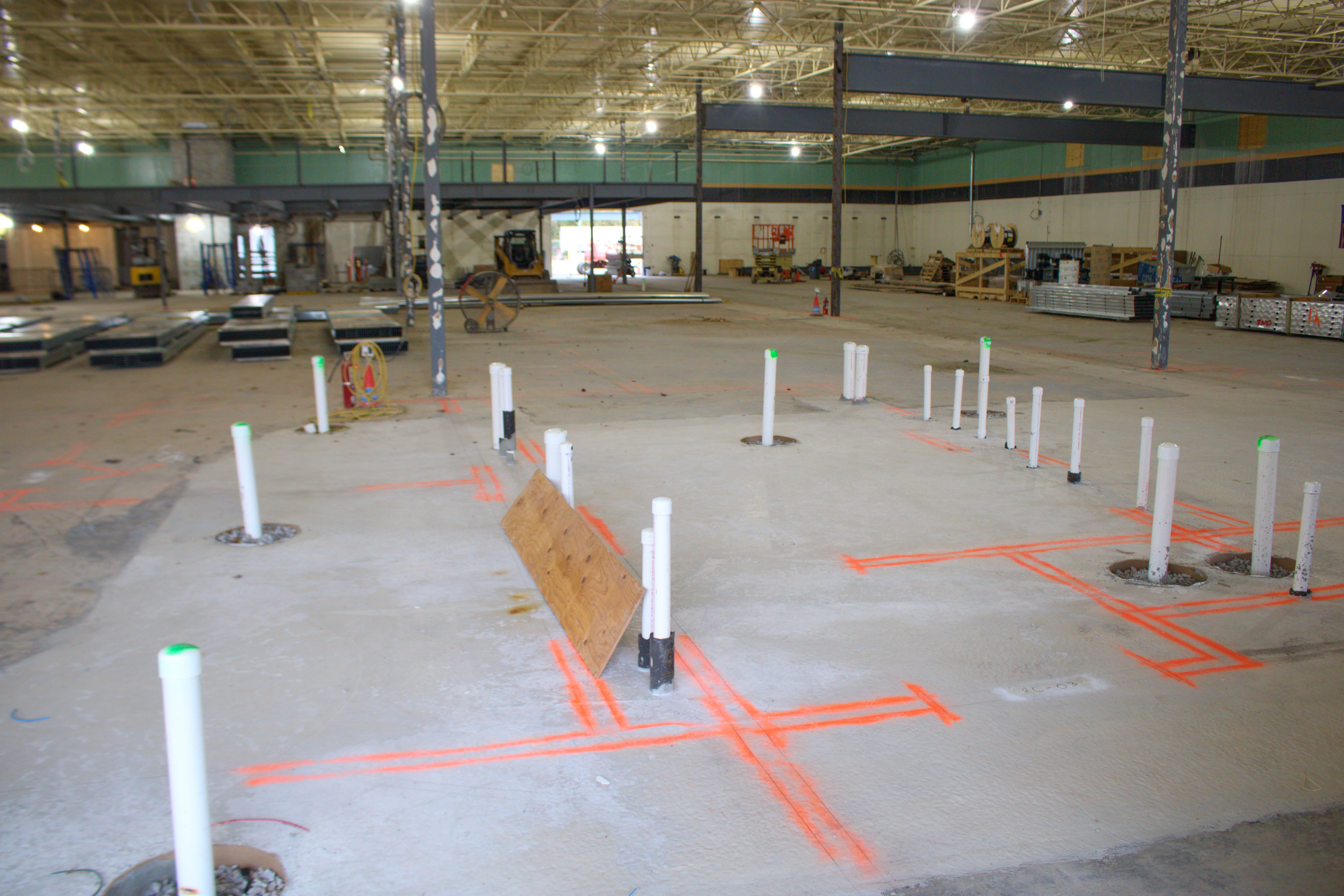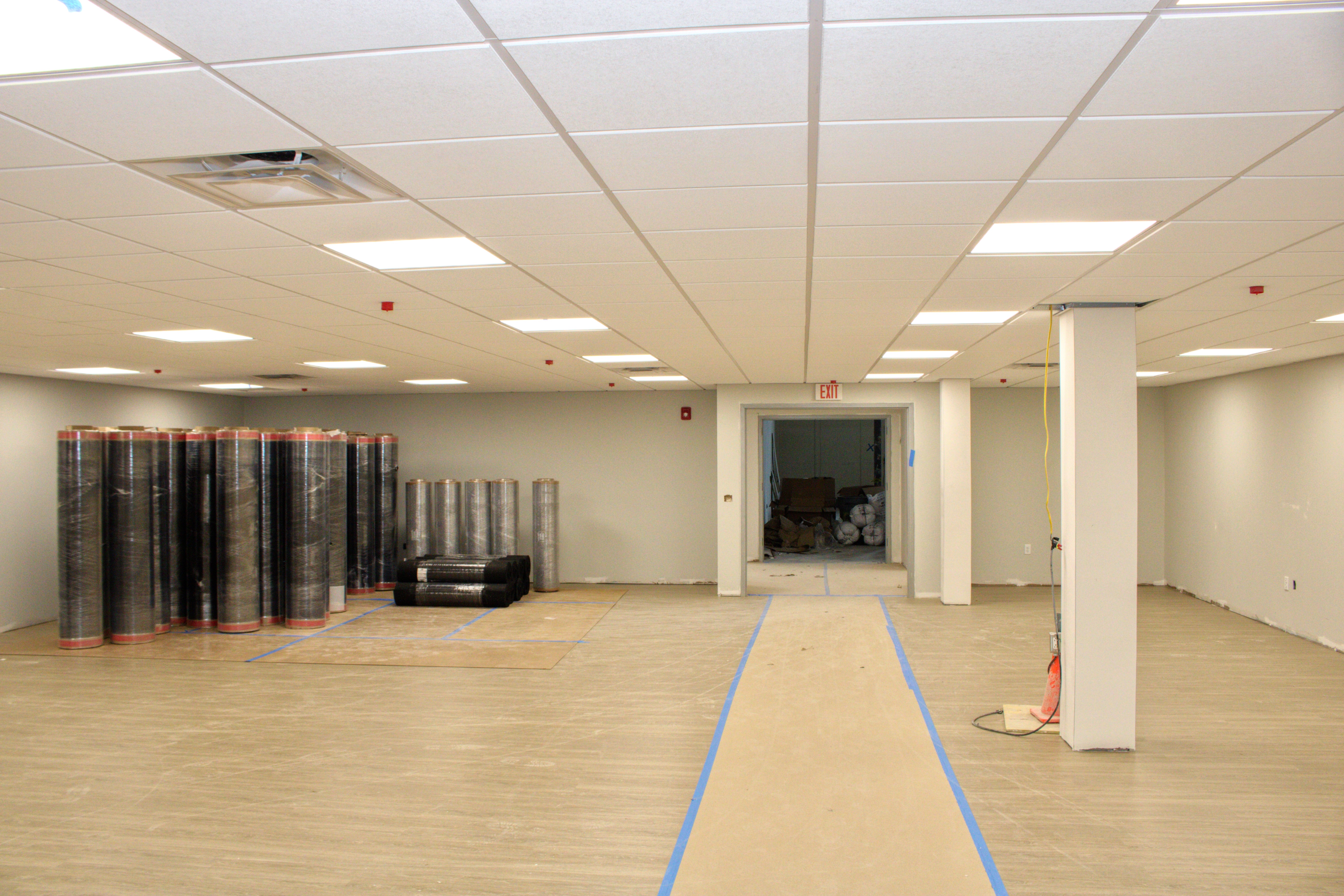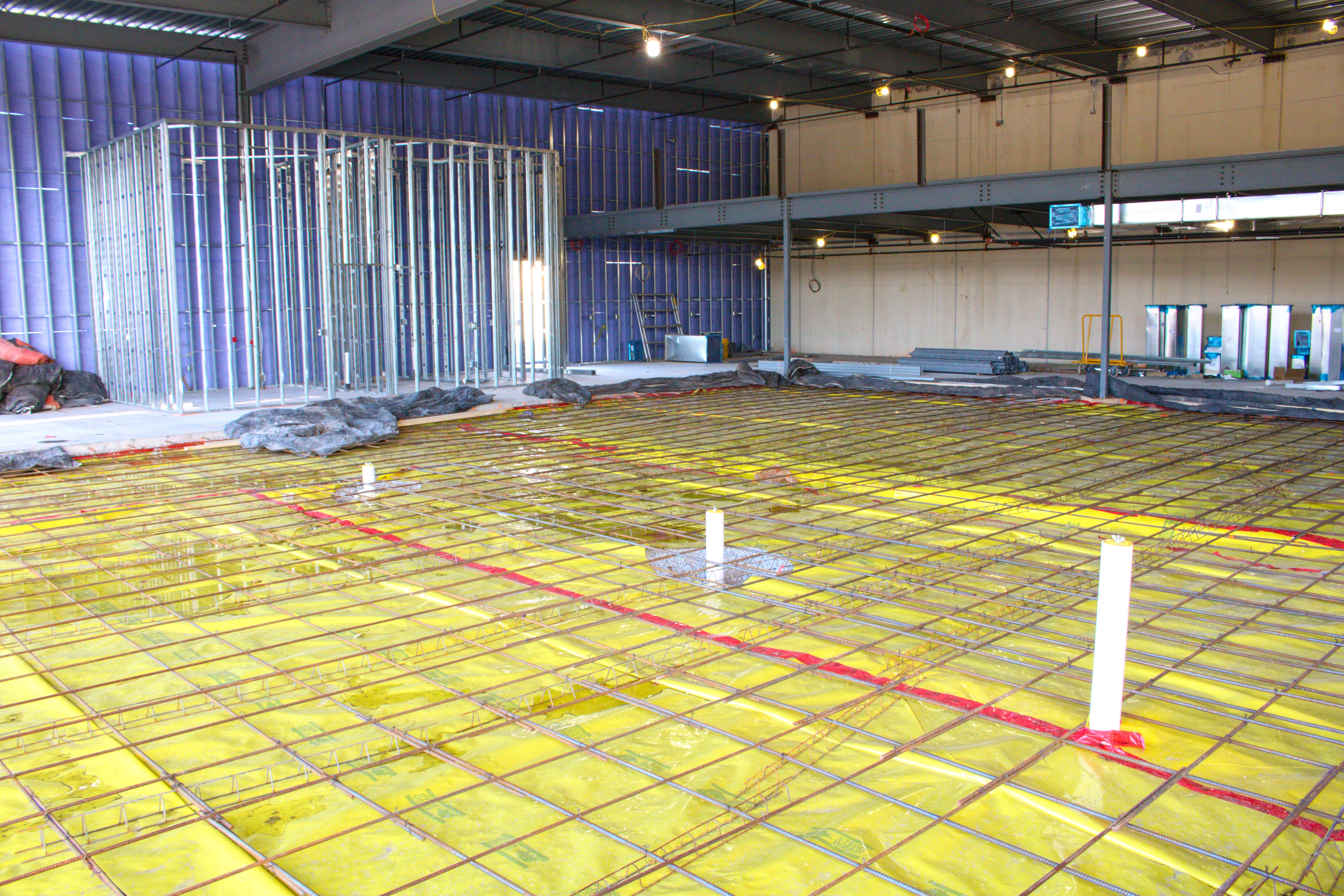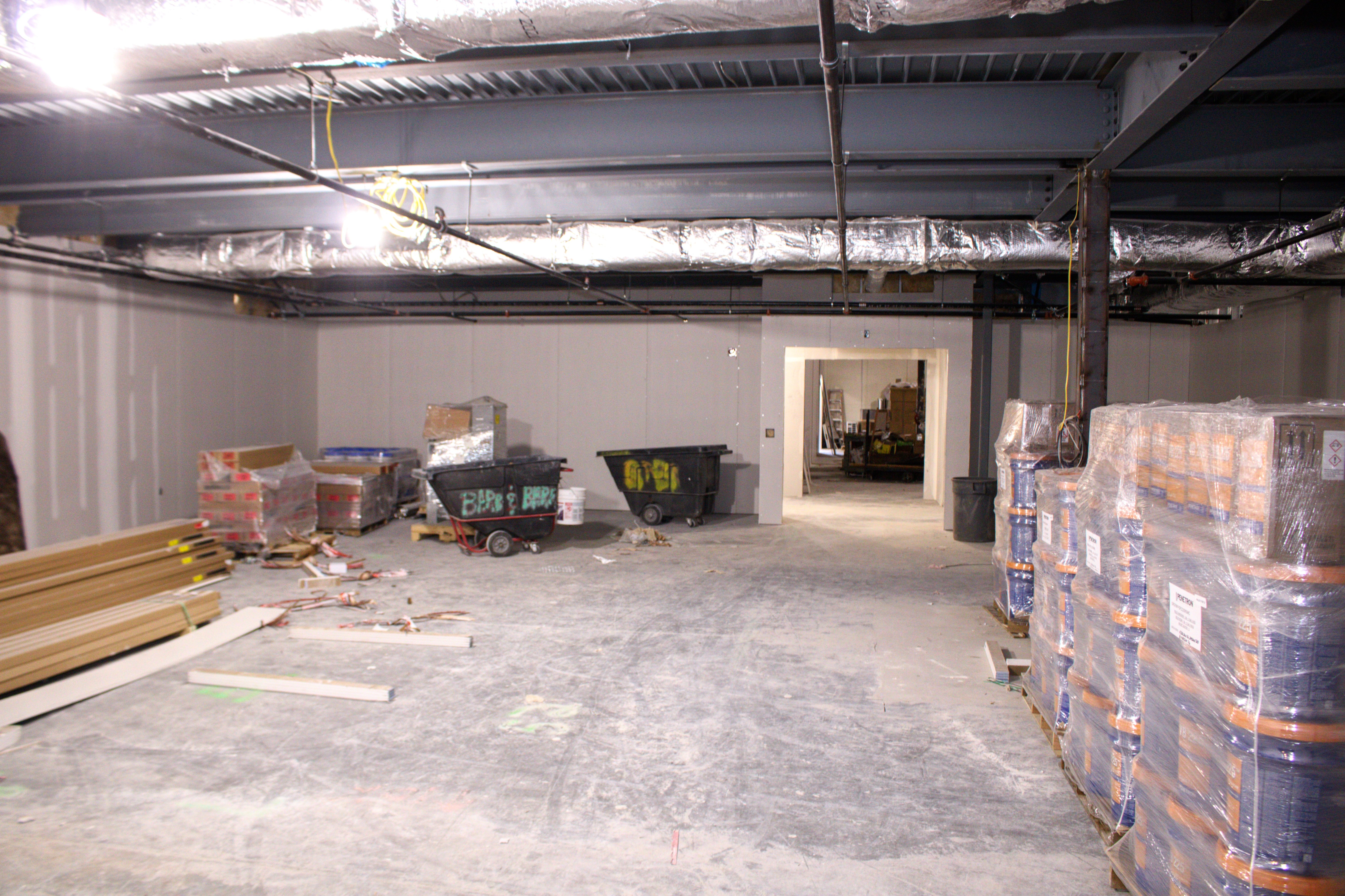 Flooring: The flooring contractor has been prepping the existing slab for finishes including installation of a vapor barrier which protects the eventual finished floor materials.