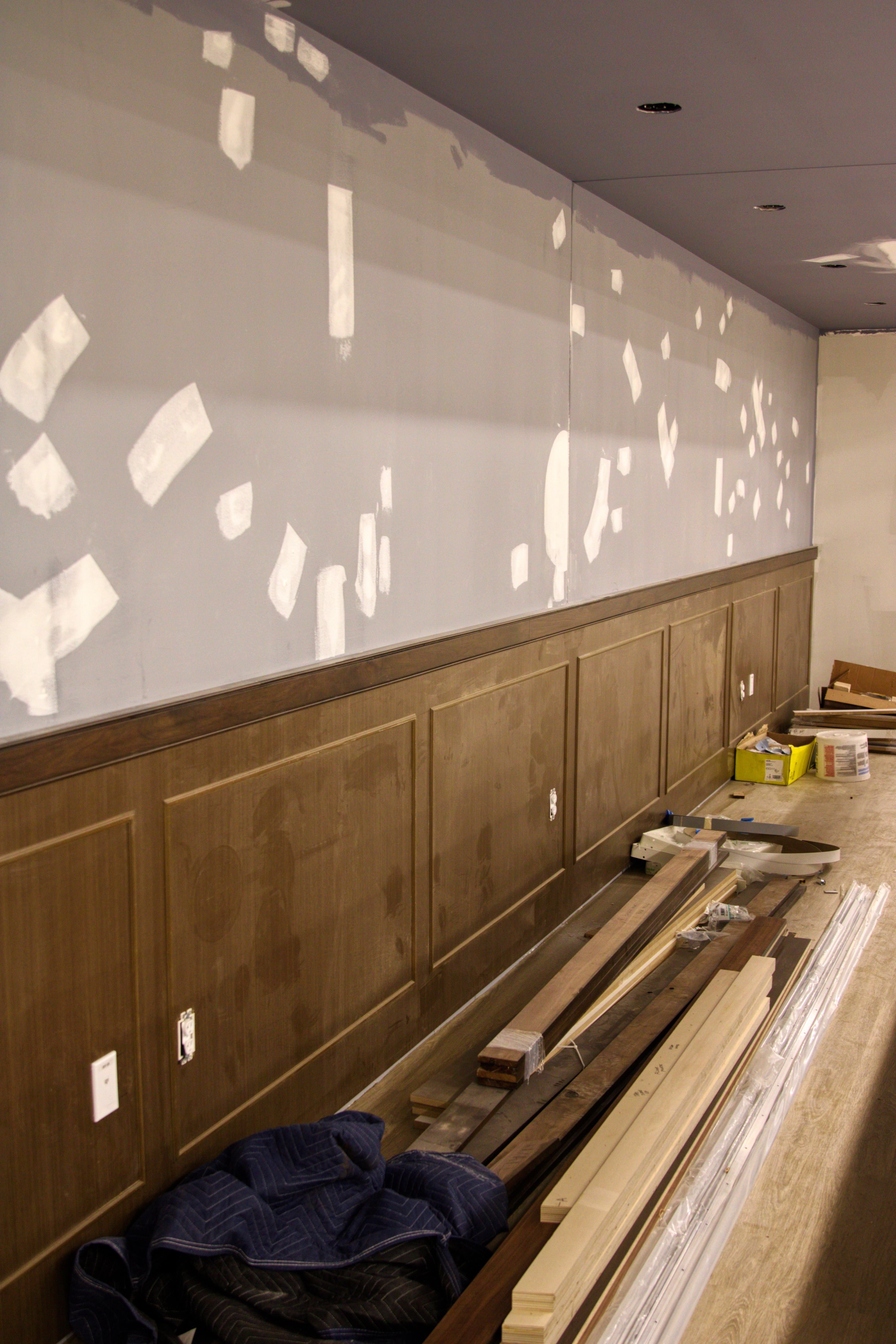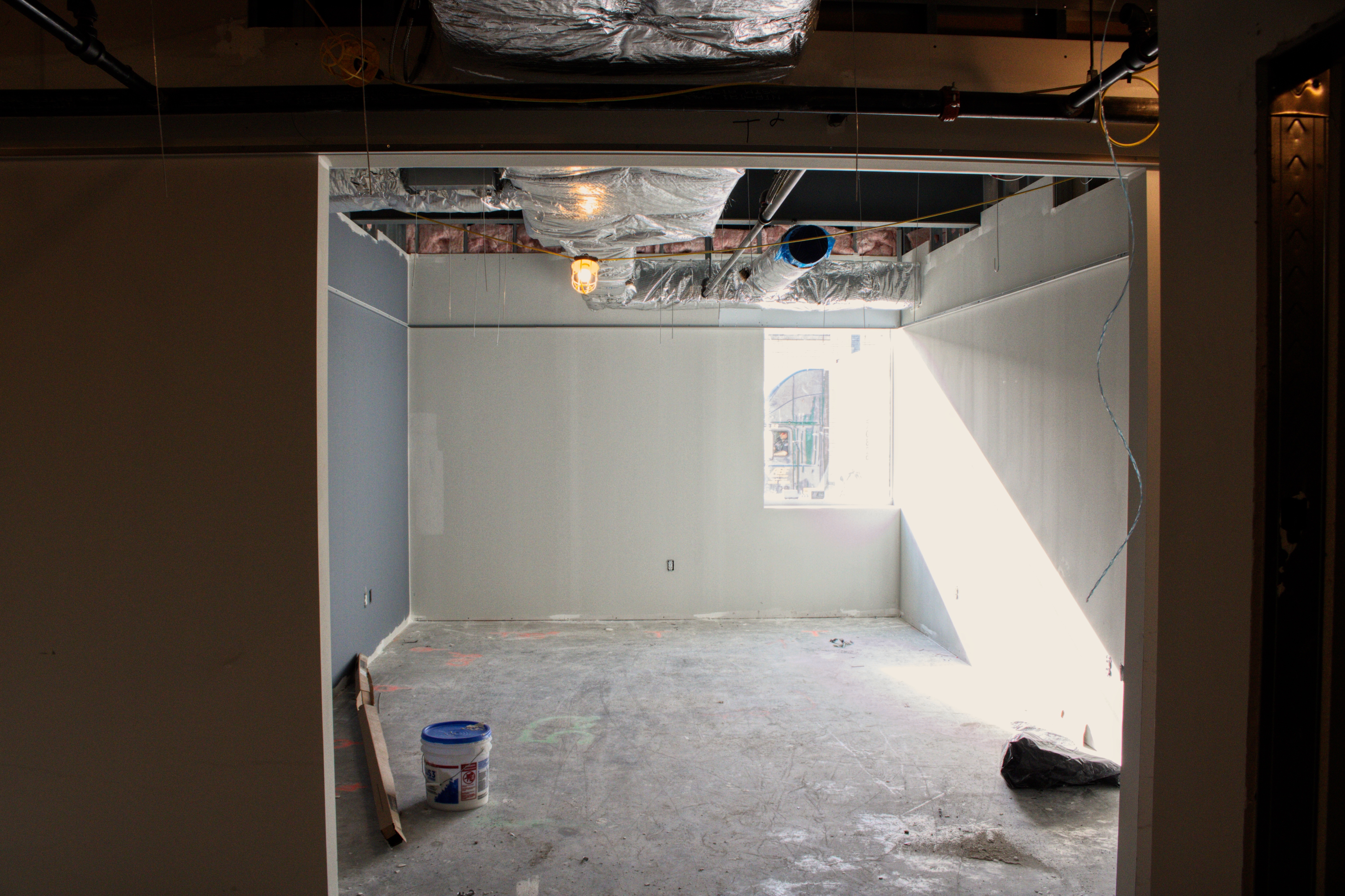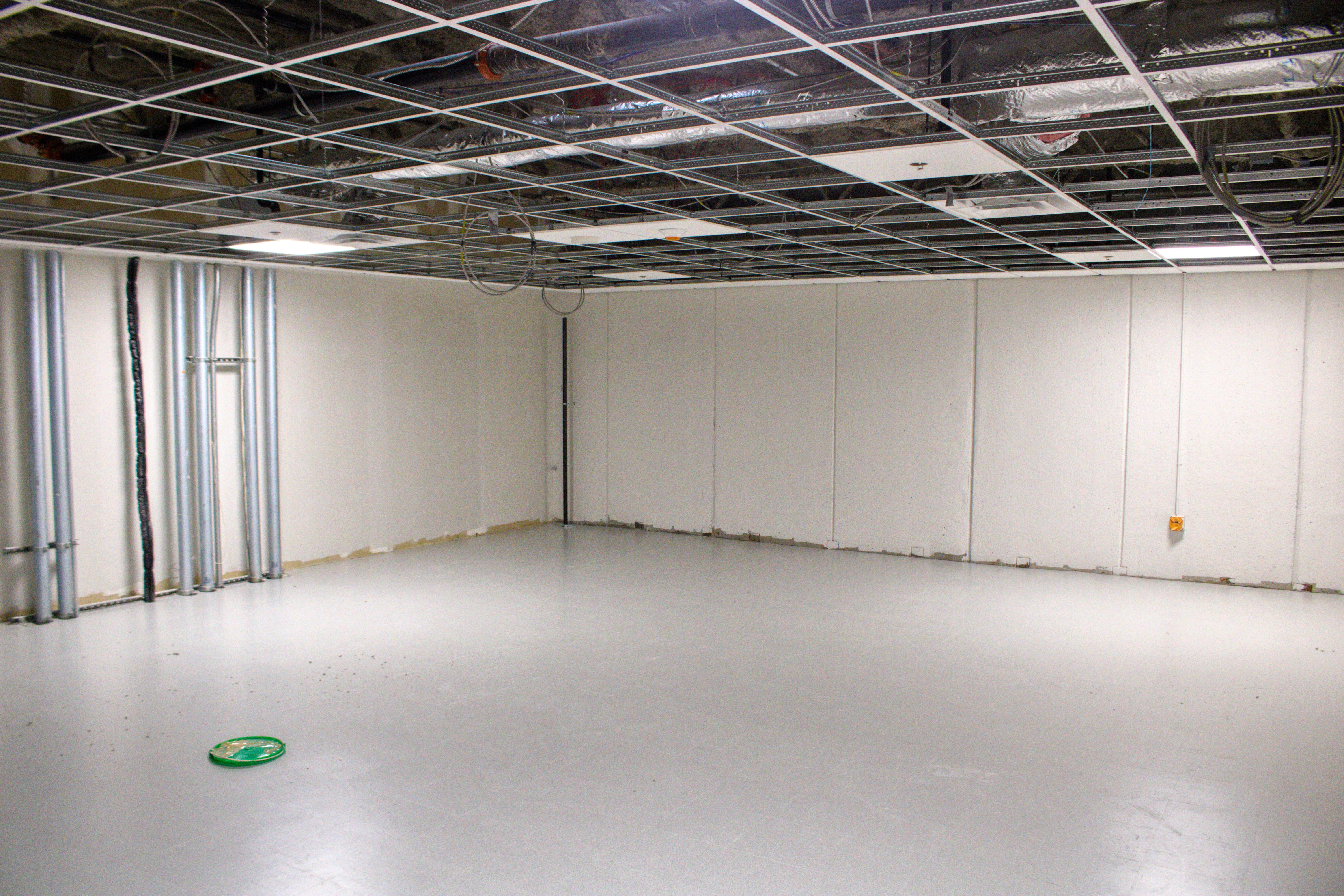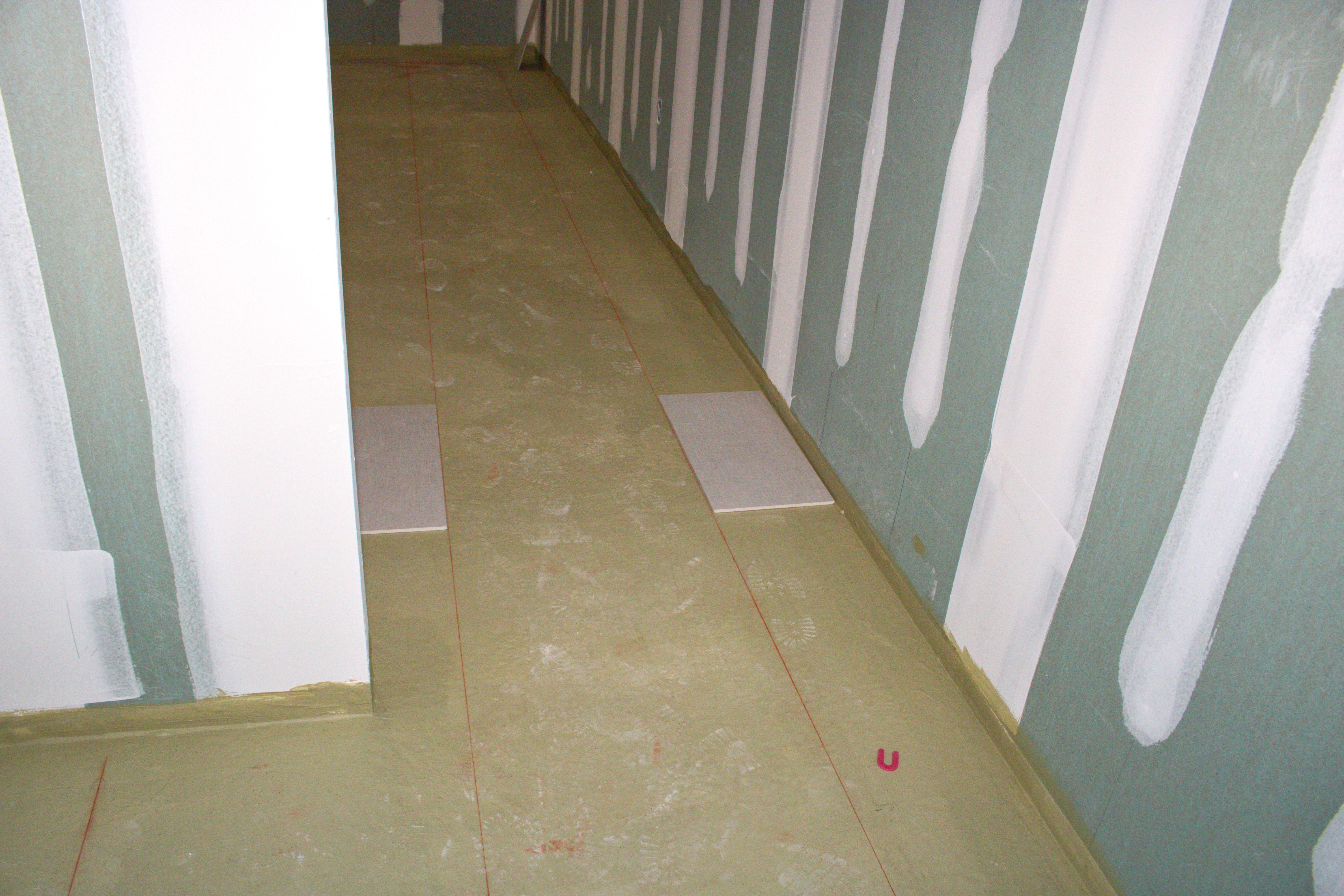 Flooring: The flooring contractor has been prepping the existing slab for finishes including installation of a vapor barrier which protects the eventual finished floor materials.