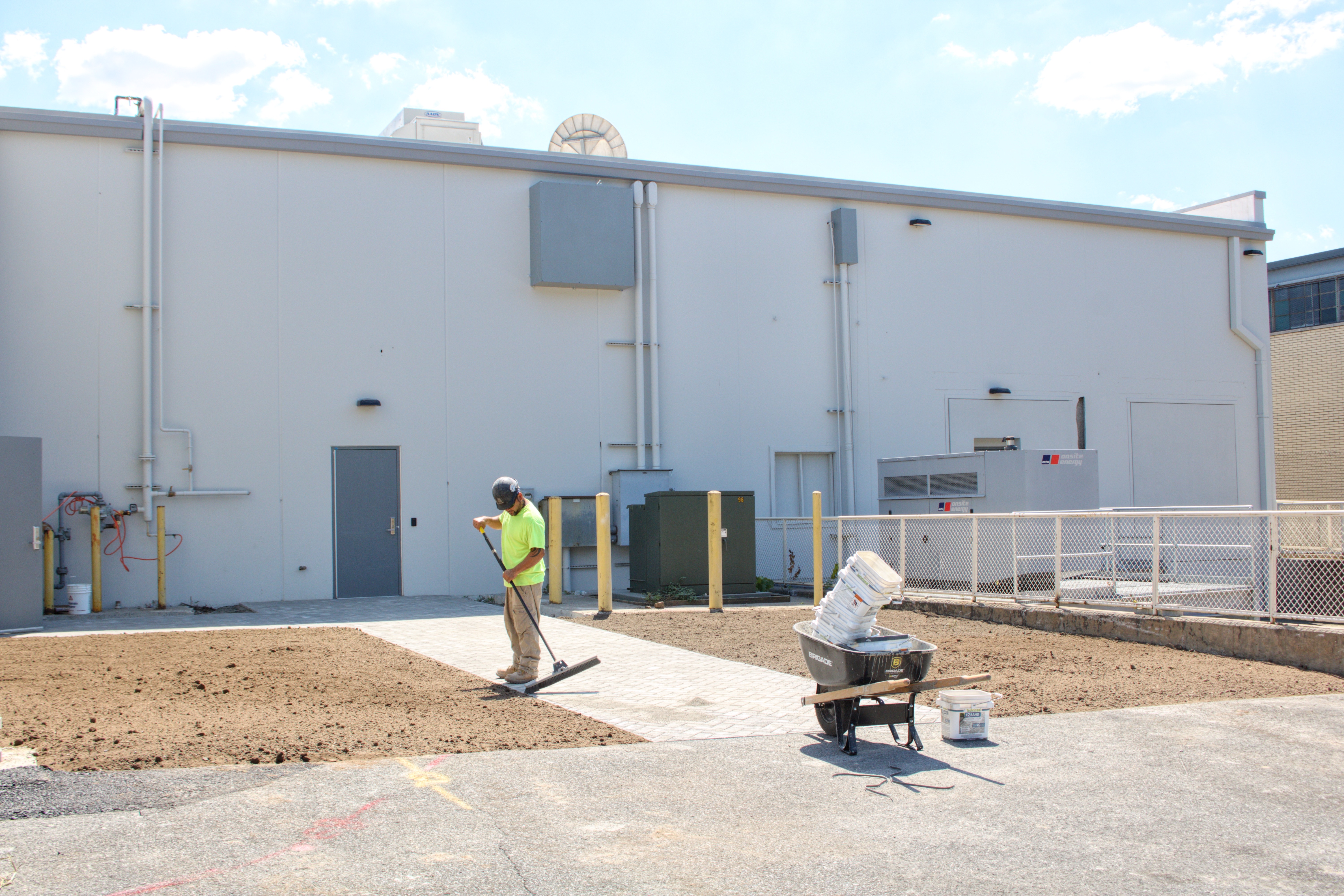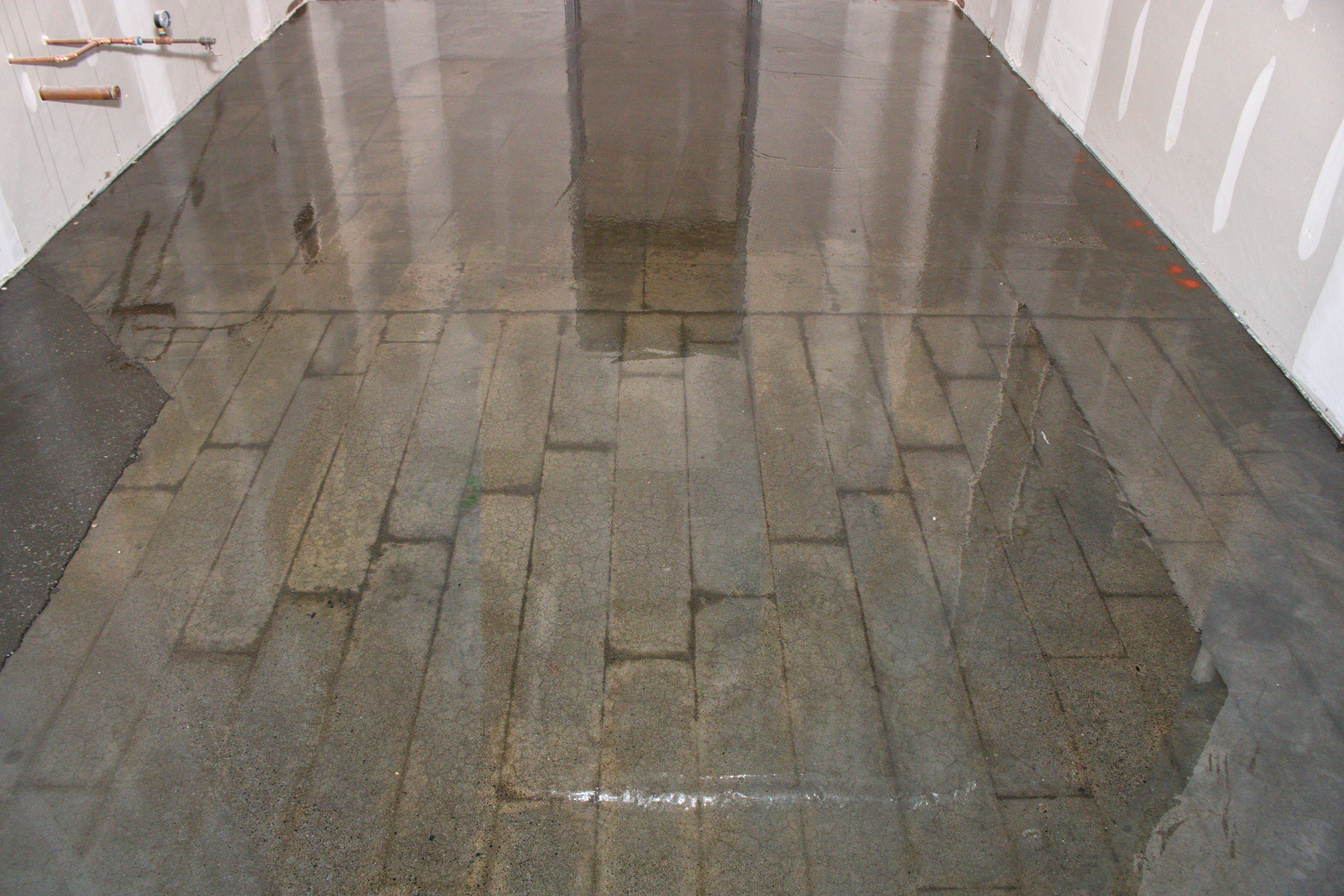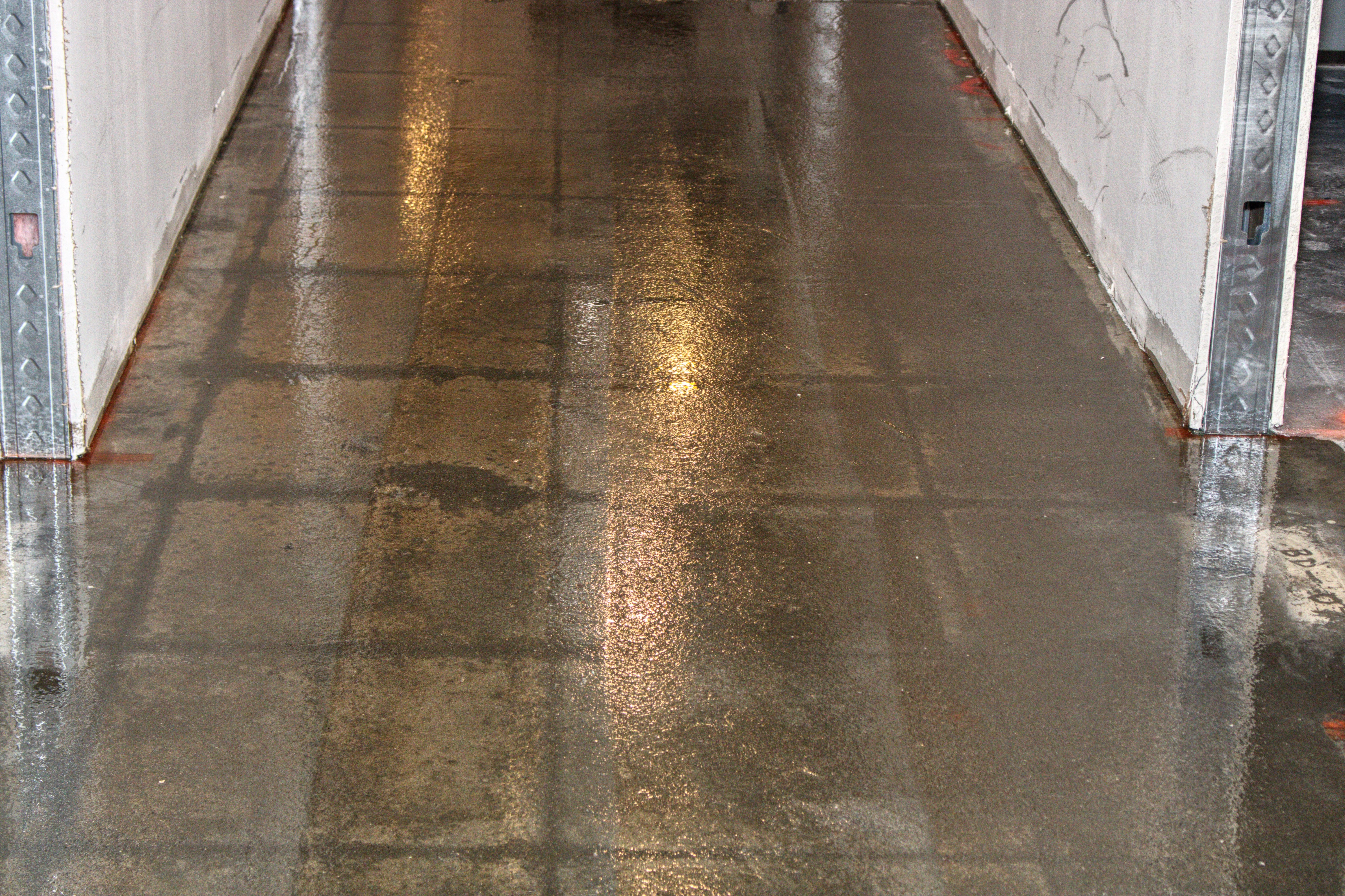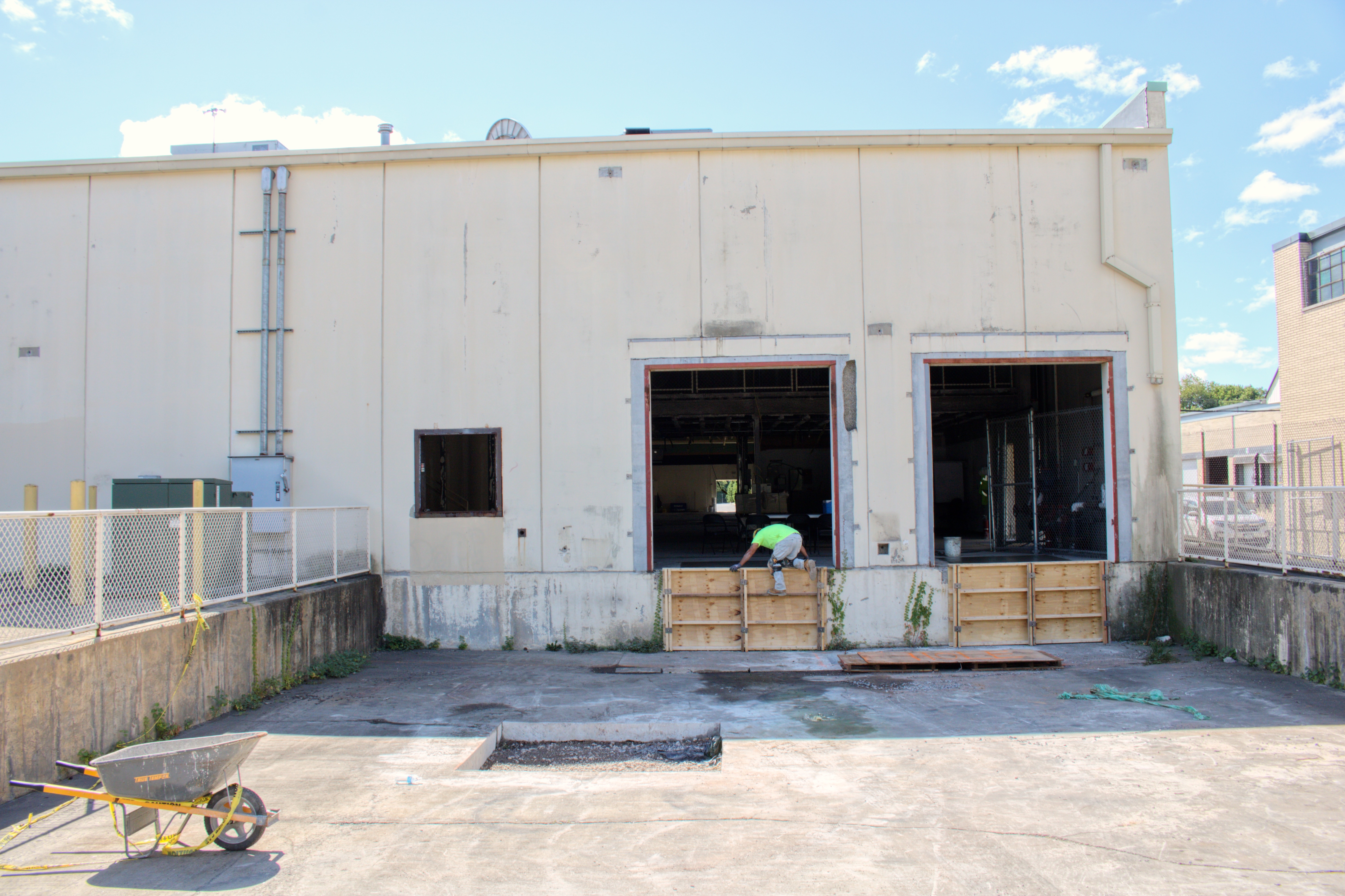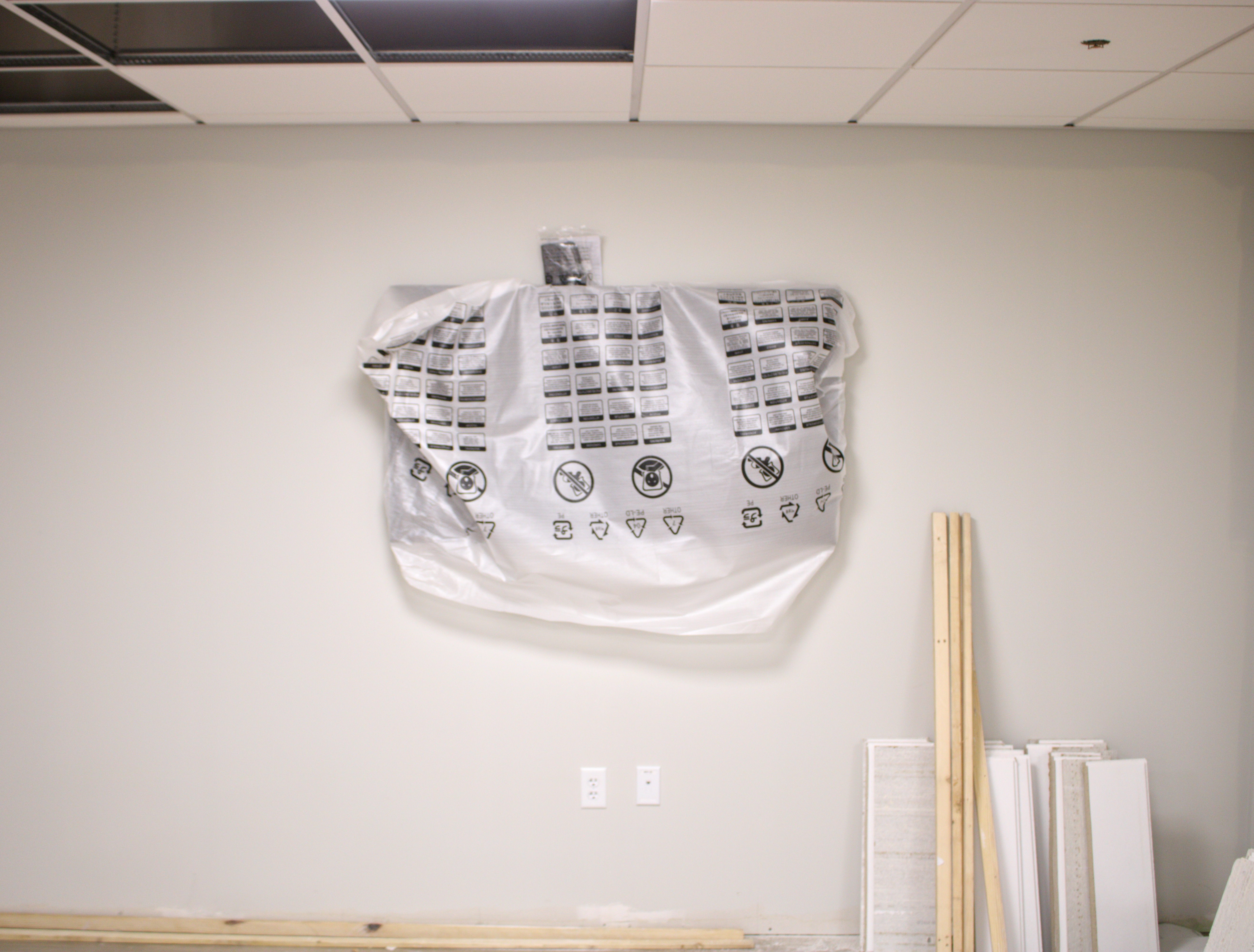 Flooring: The flooring contractor has been prepping the existing slab for finishes including installation of a vapor barrier which protects the eventual finished floor materials.