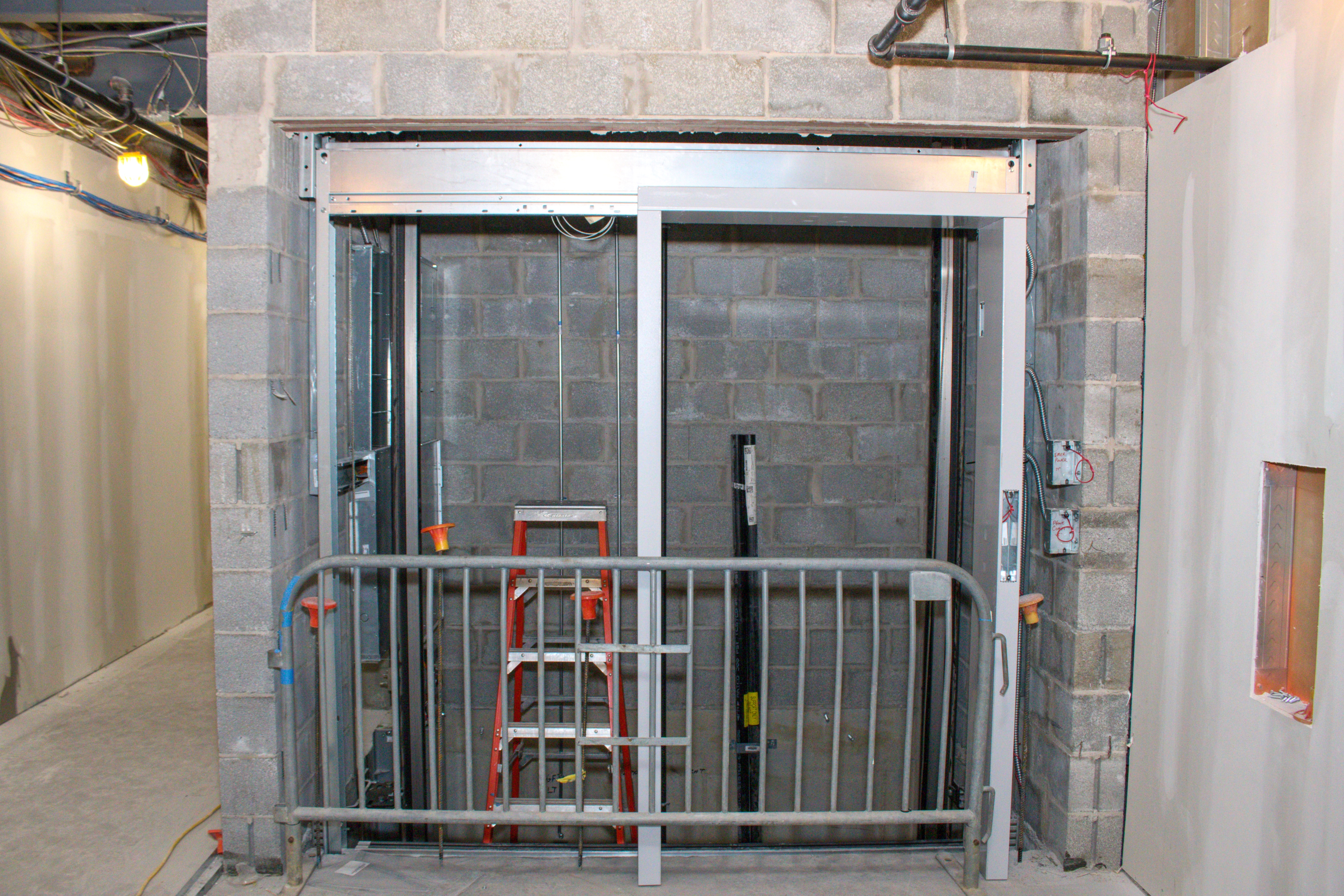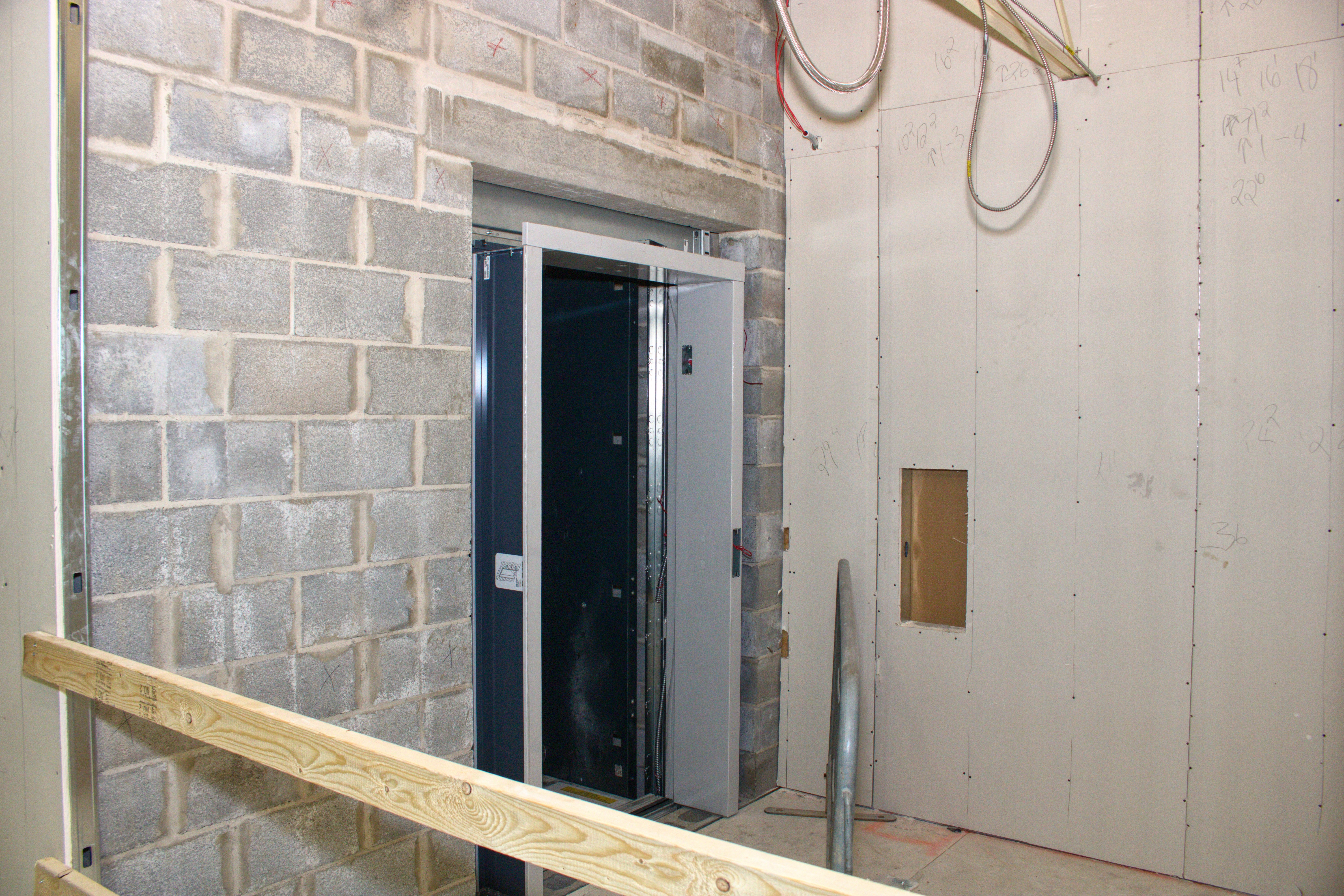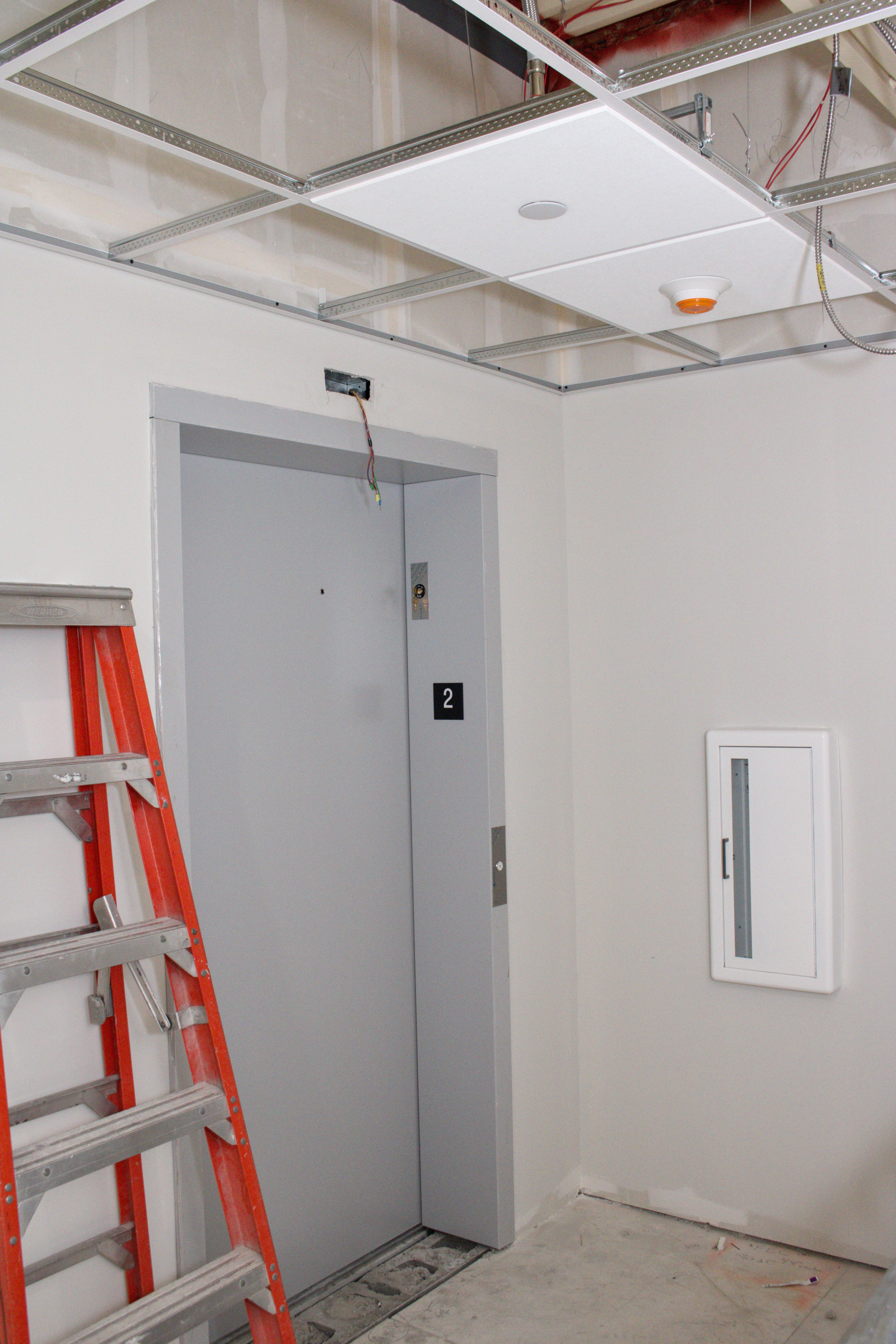 Elevator: The elevator installation has begun and is 60% complete. The cab has been constructed, gear installed and protective devices, sprinkler, fire alarm, etc. are well on their way.