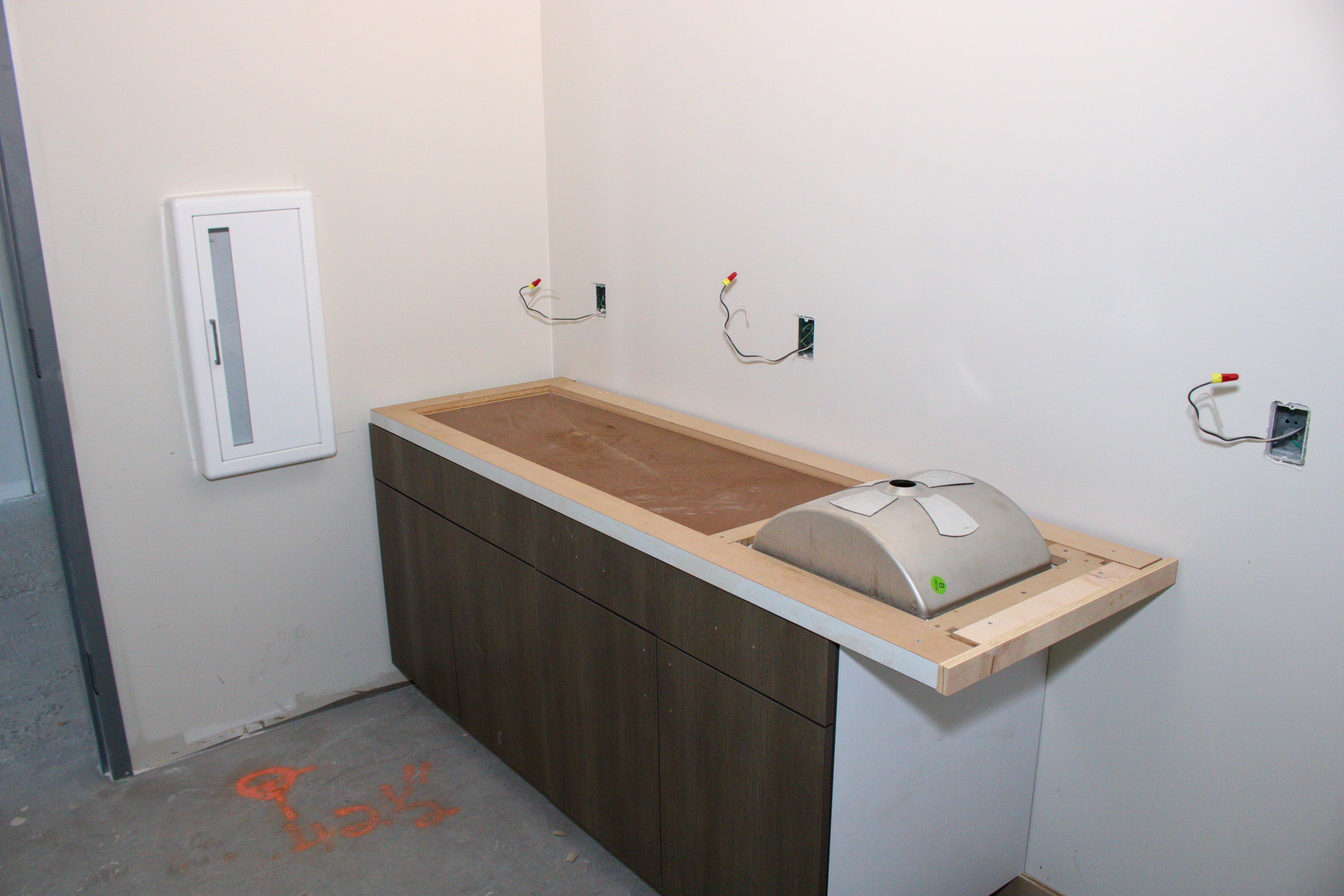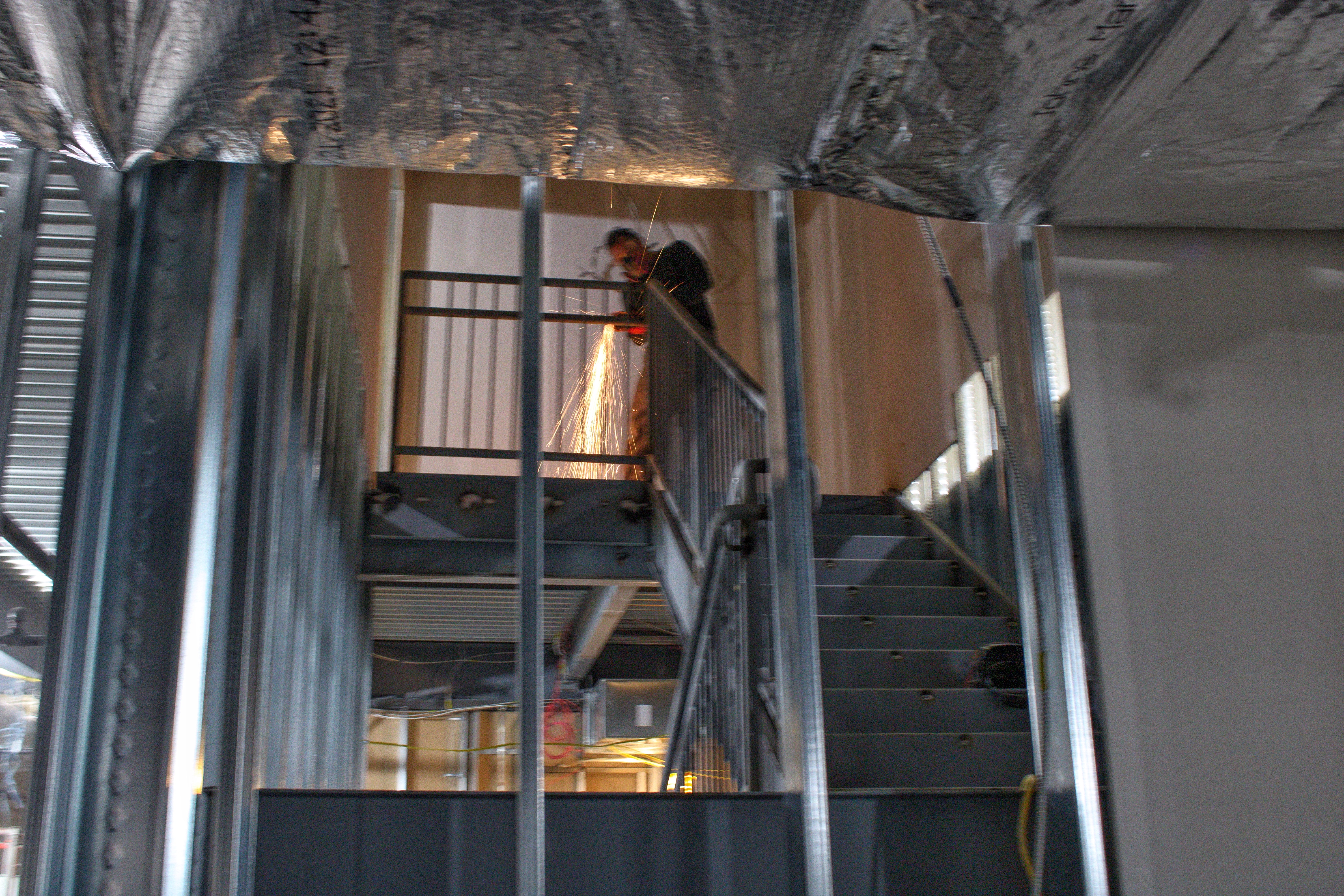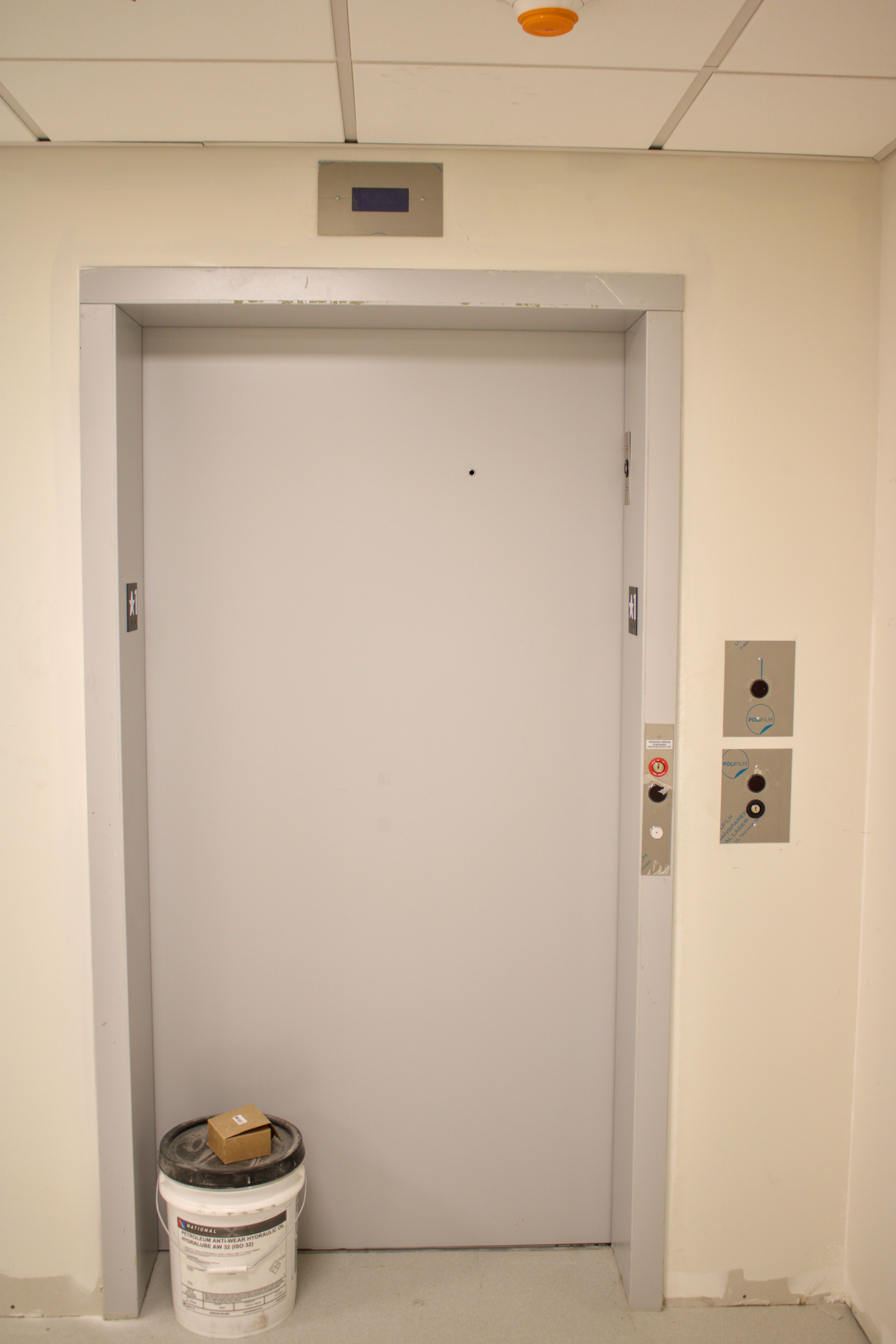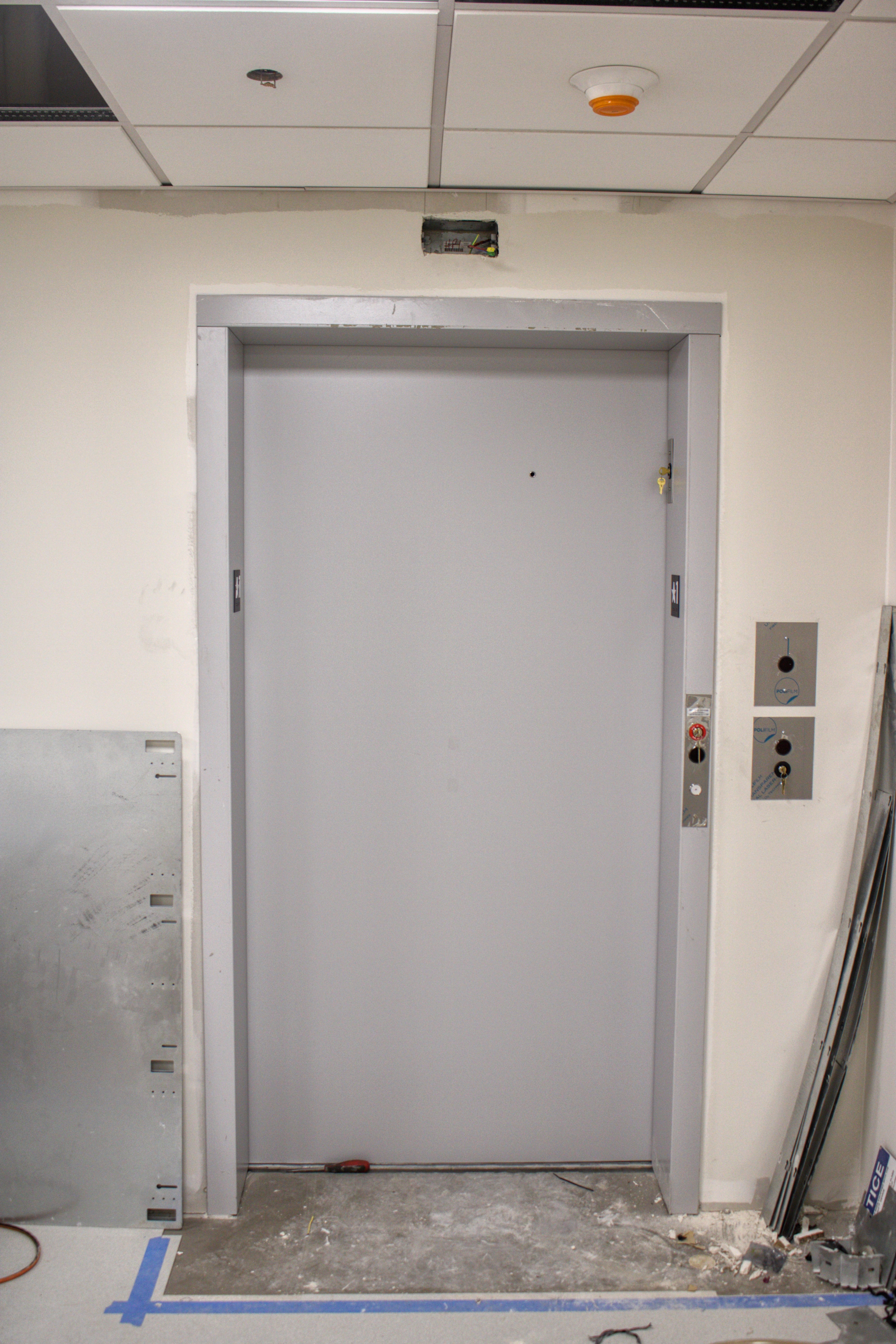 Elevator: The elevator installation has begun and is 60% complete. The cab has been constructed, gear installed and protective devices, sprinkler, fire alarm, etc. are well on their way.