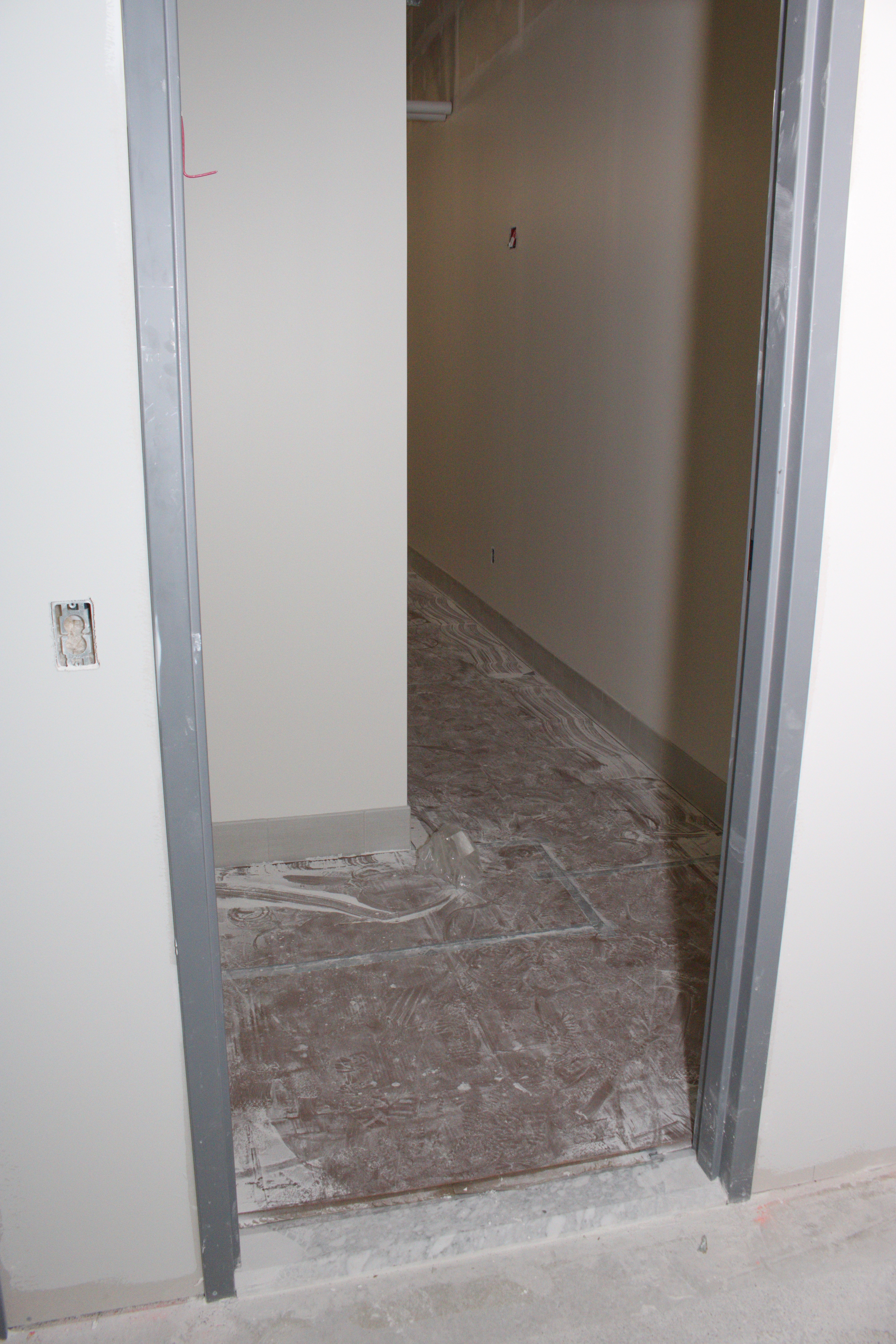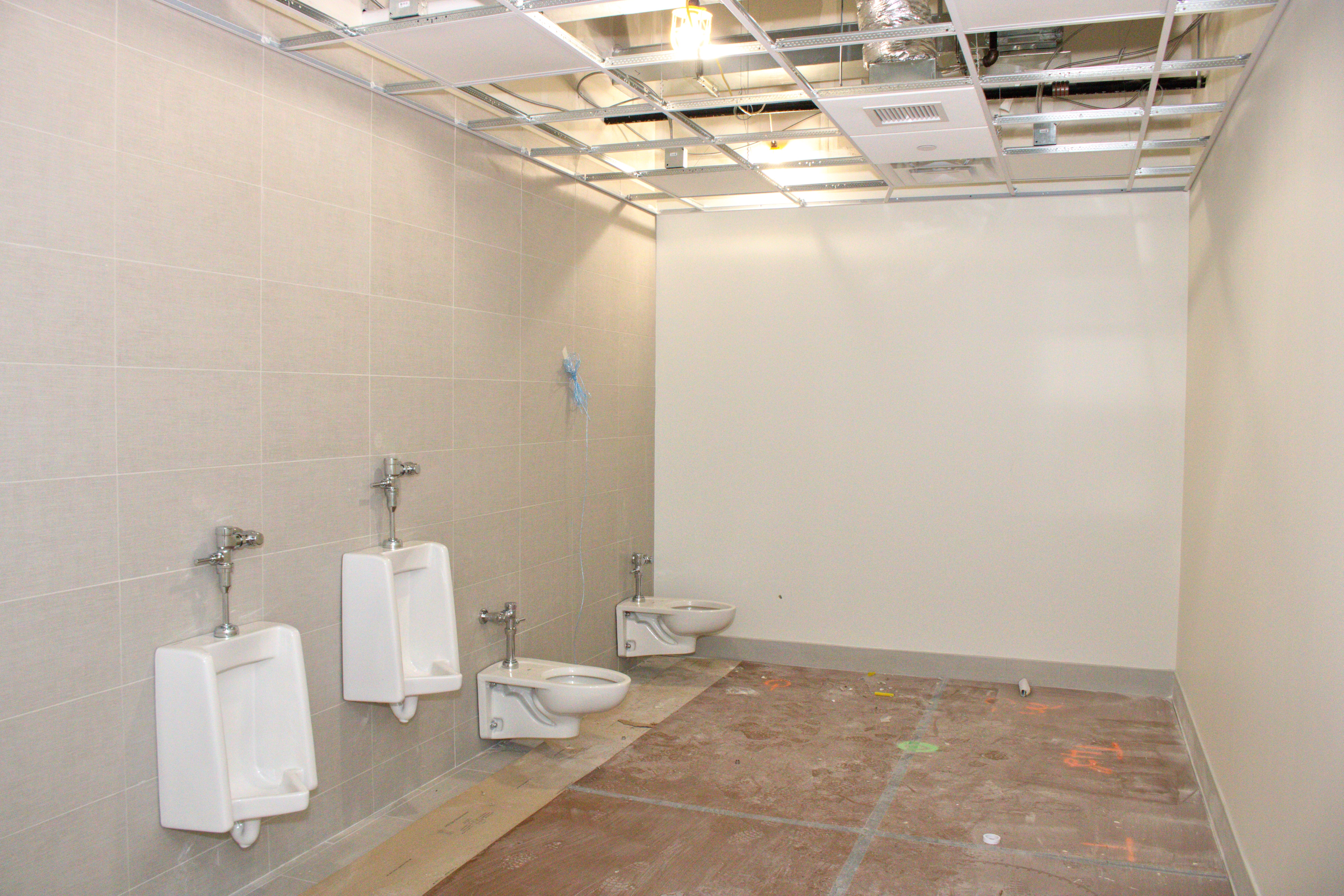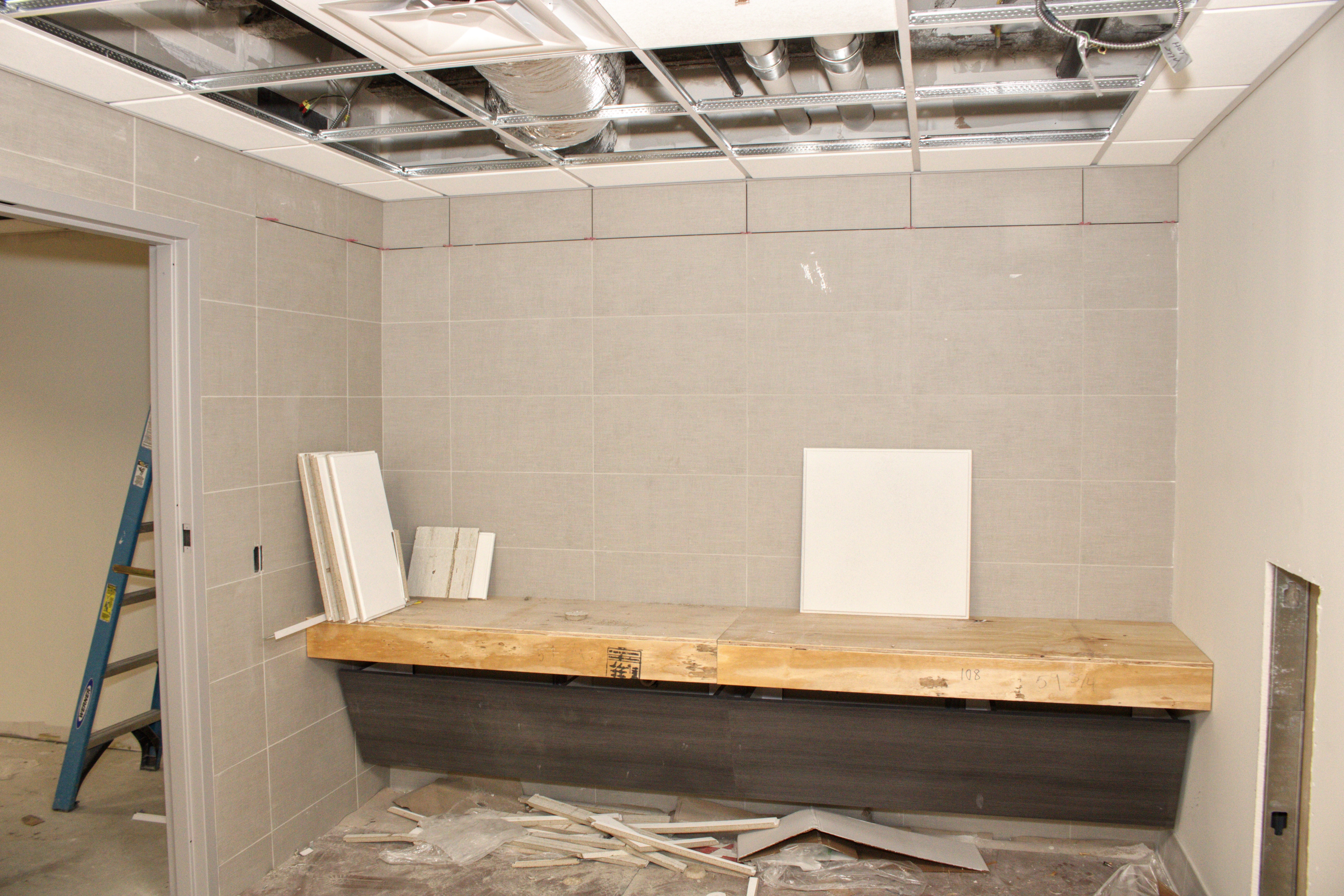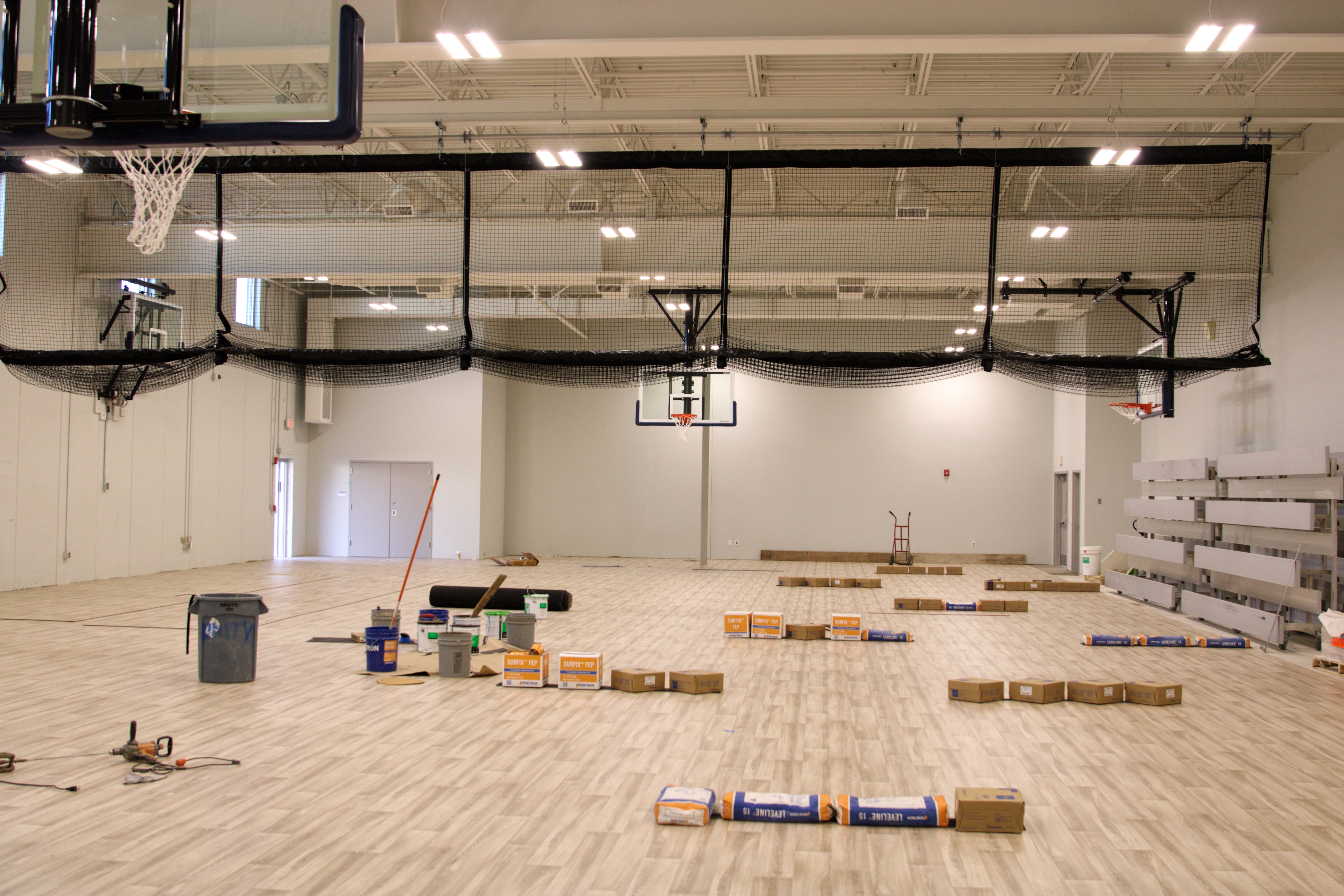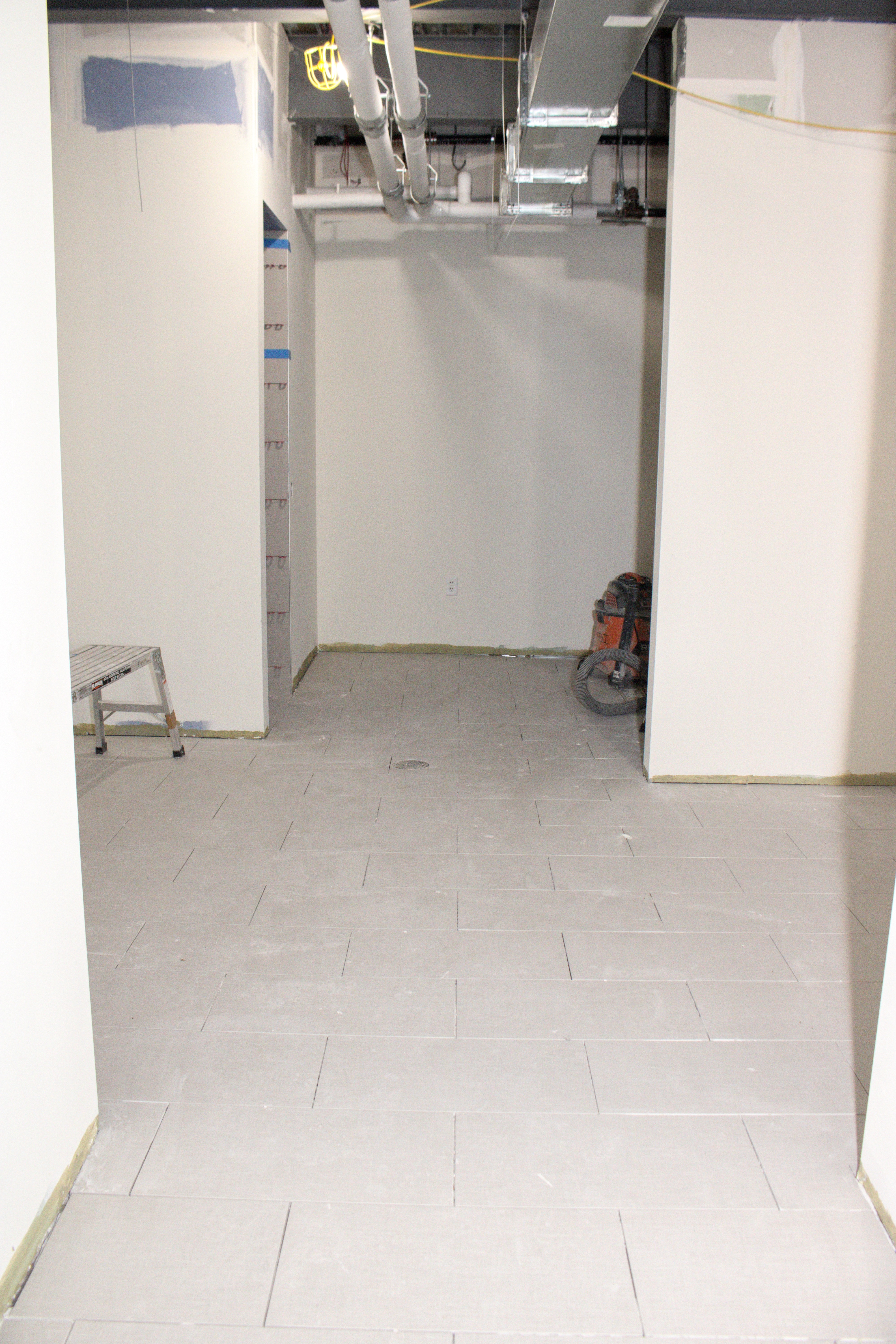Flooring: The flooring contractor has completed all of the floor prep (outside of the gymnasium area) and vapor barrier for the eventual finishes, i.e. Carpet, VCT and LVT. Those finished floors will be installed more towards the last few weeks of the project to make sure they are not damaged. Ceramic tile at all of the bathrooms is 60% complete and will continue at the North end over the next few weeks.