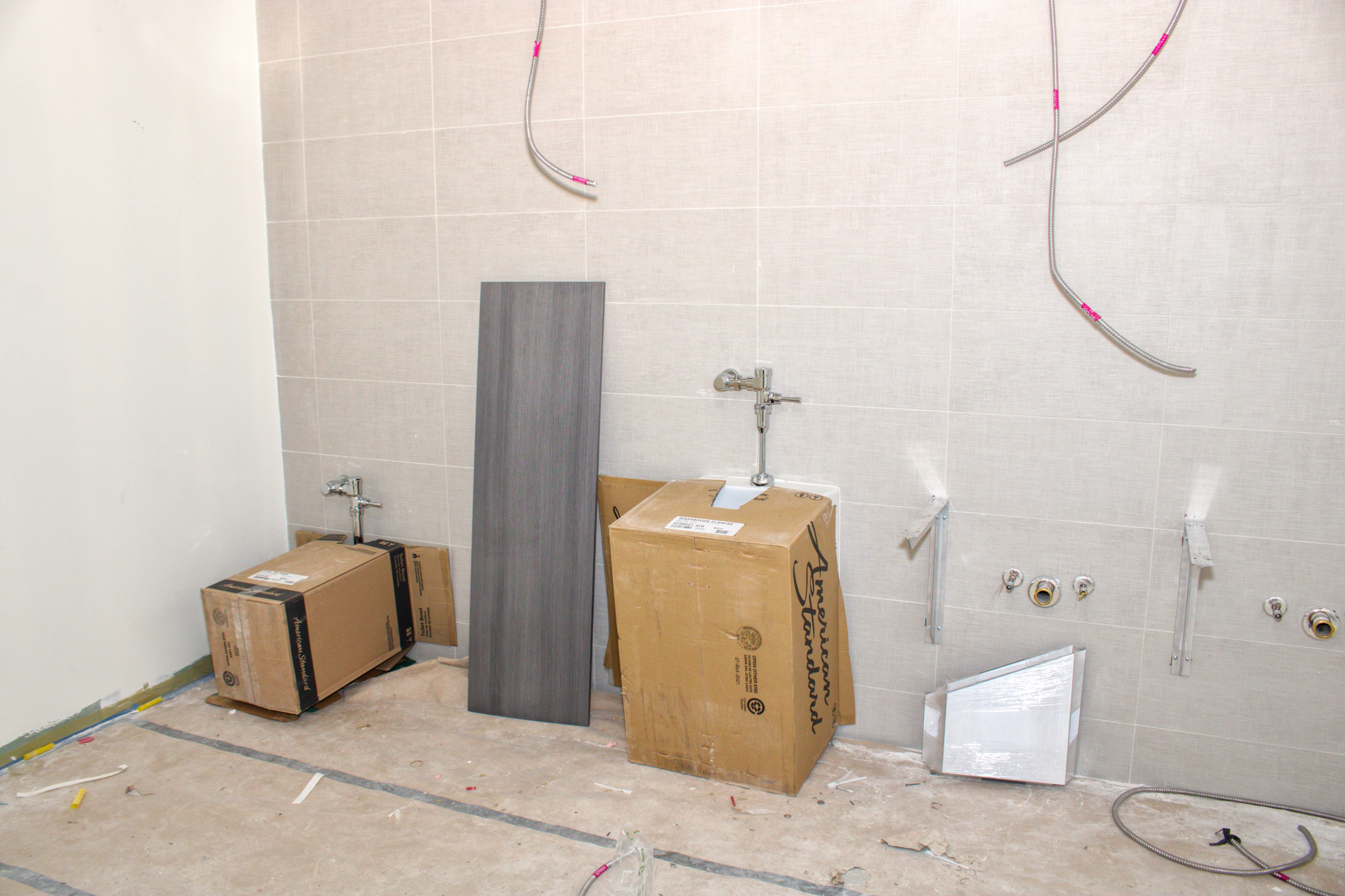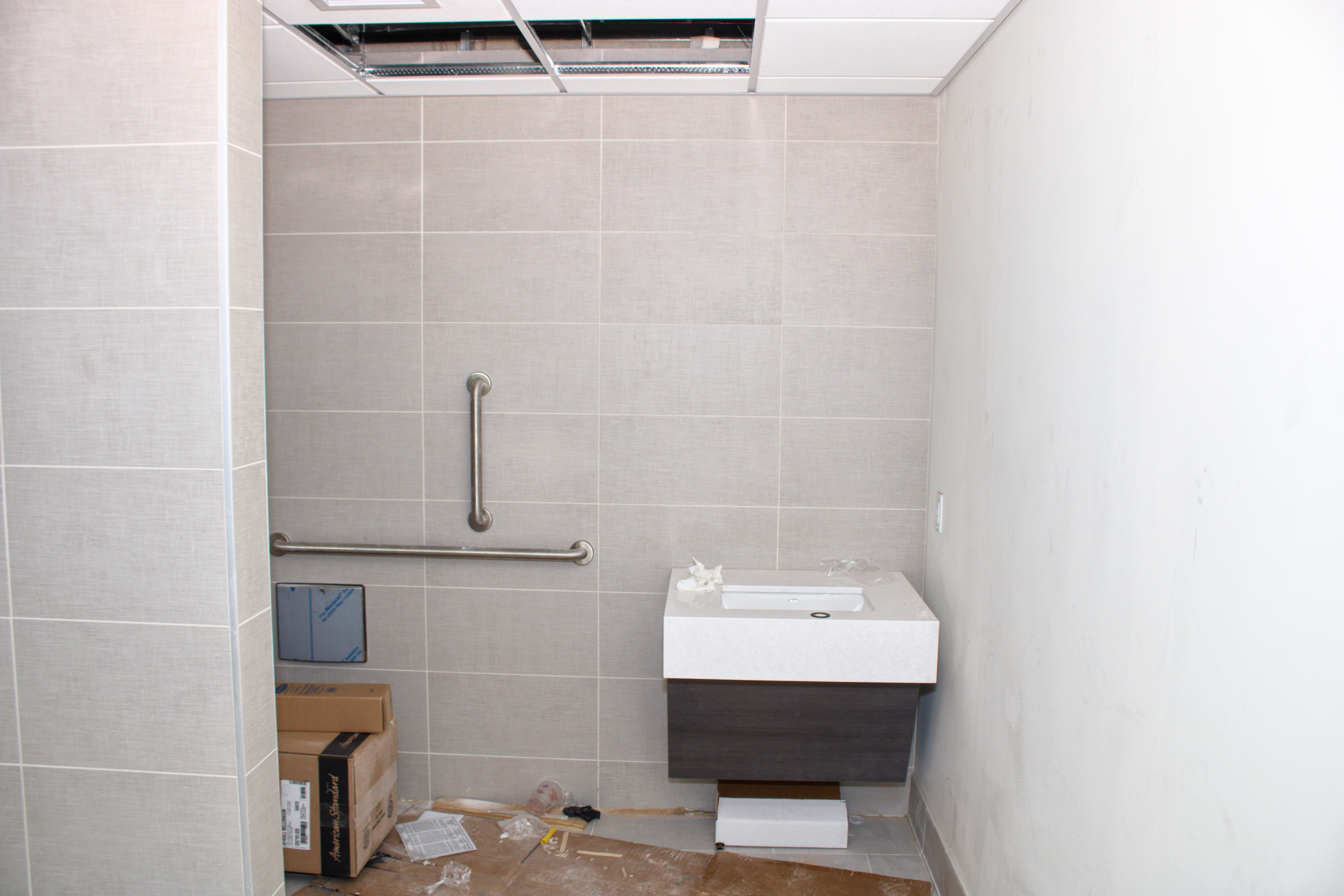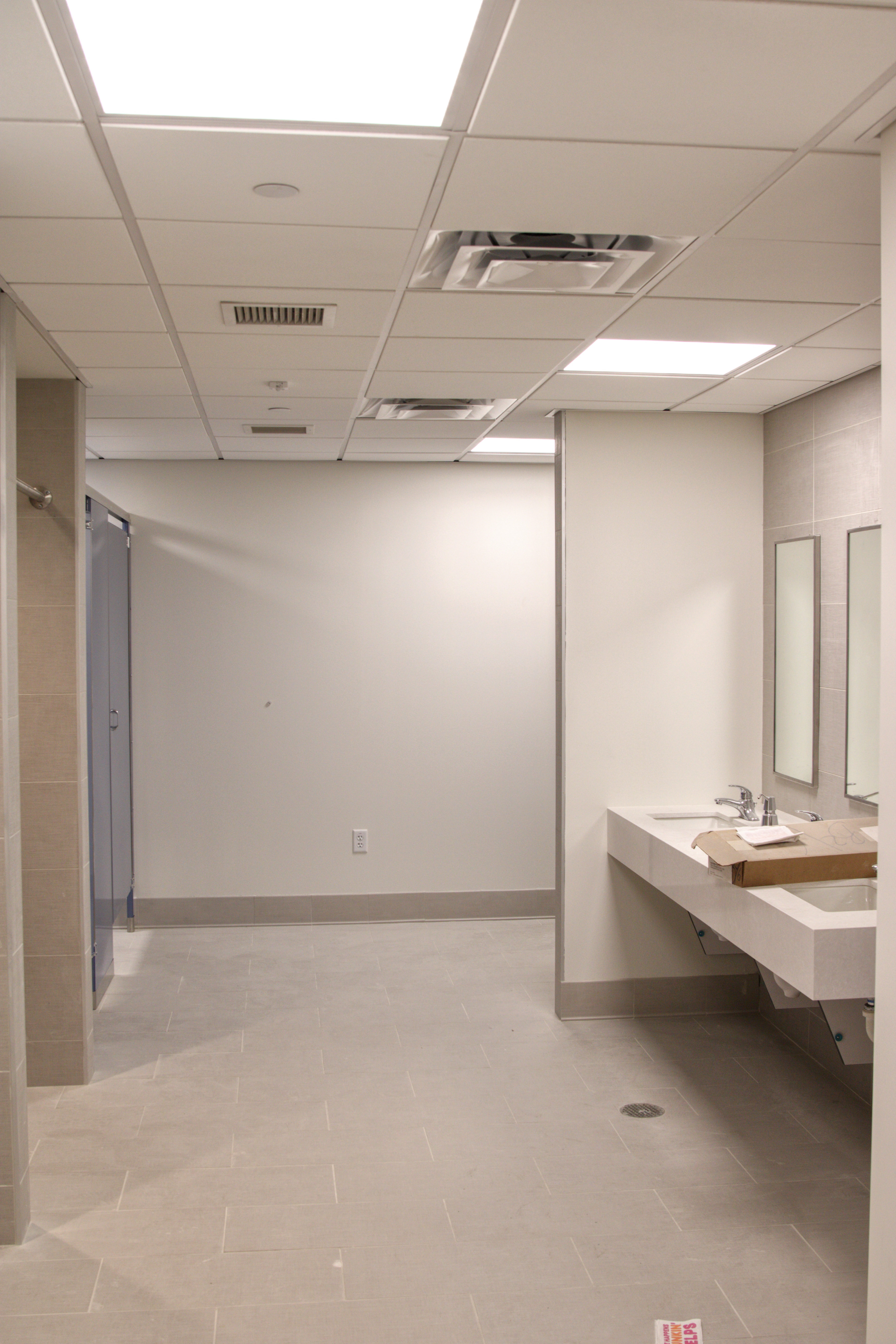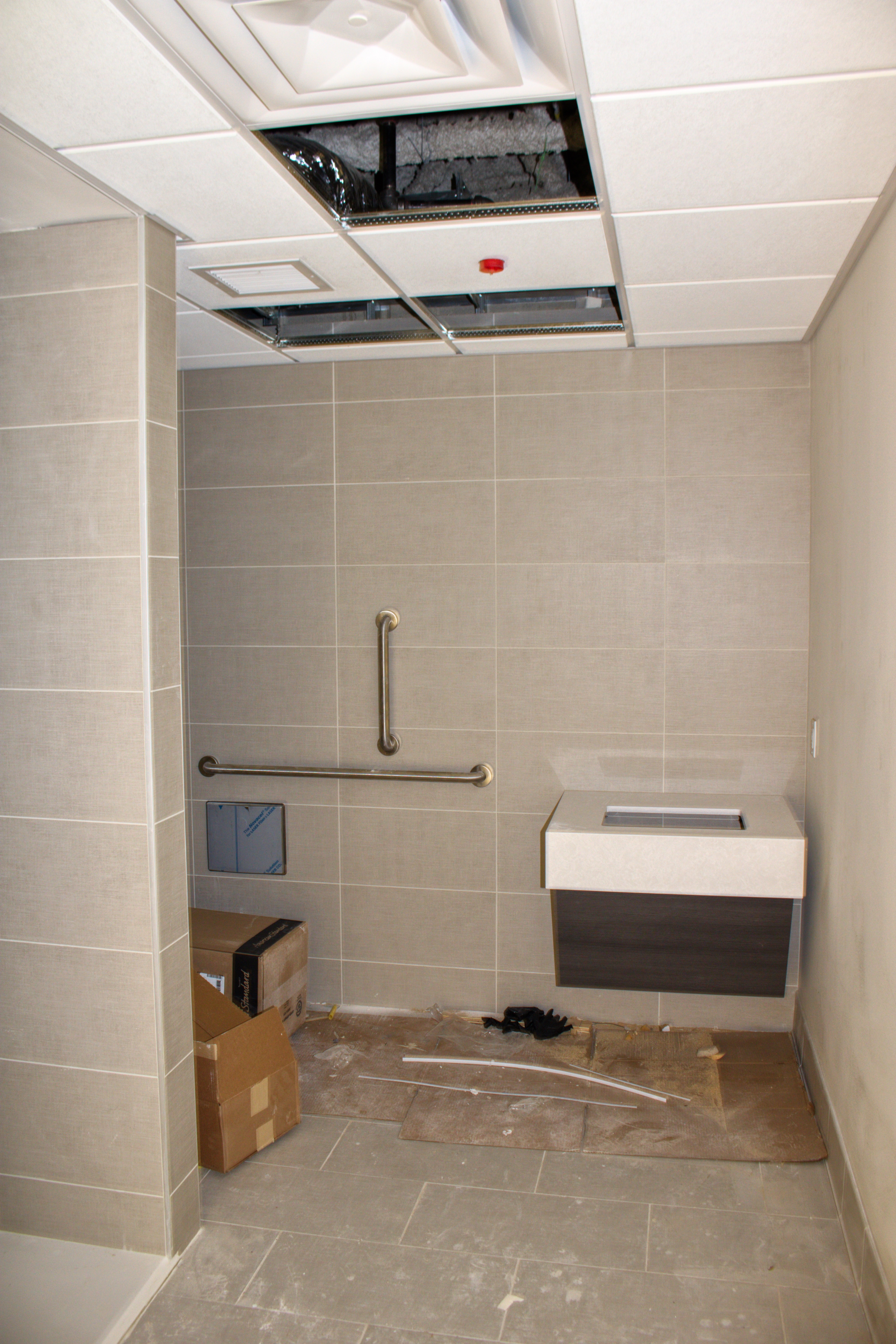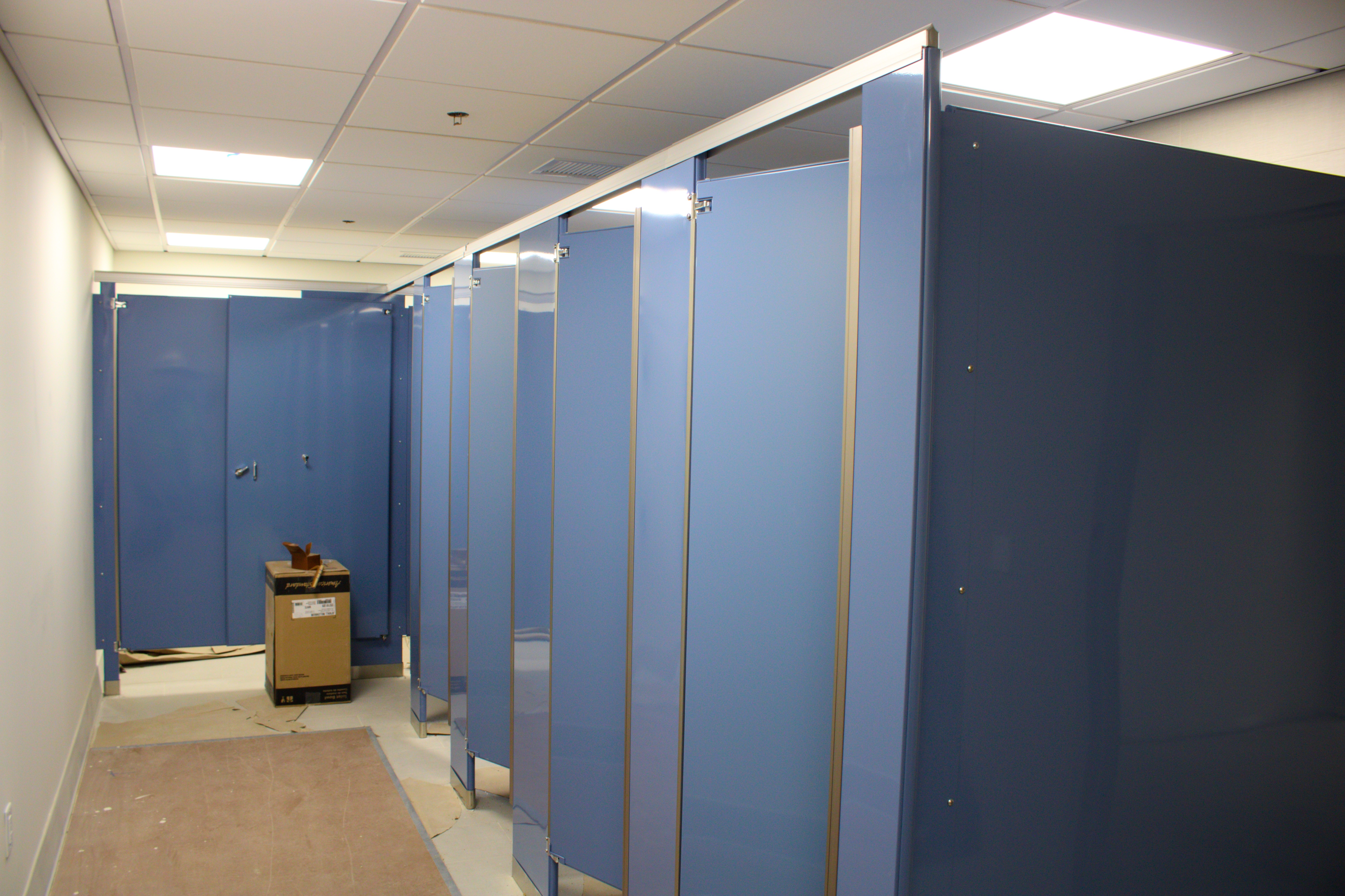 Flooring: The flooring contractor has completed all of the floor prep (outside of the gymnasium area) and vapor barrier for the eventual finishes, i.e. Carpet, VCT and LVT. Those finished floors will be installed more towards the last few weeks of the project to make sure they are not damaged. Ceramic tile at all of the bathrooms is 60% complete and will continue at the North end over the next few weeks.