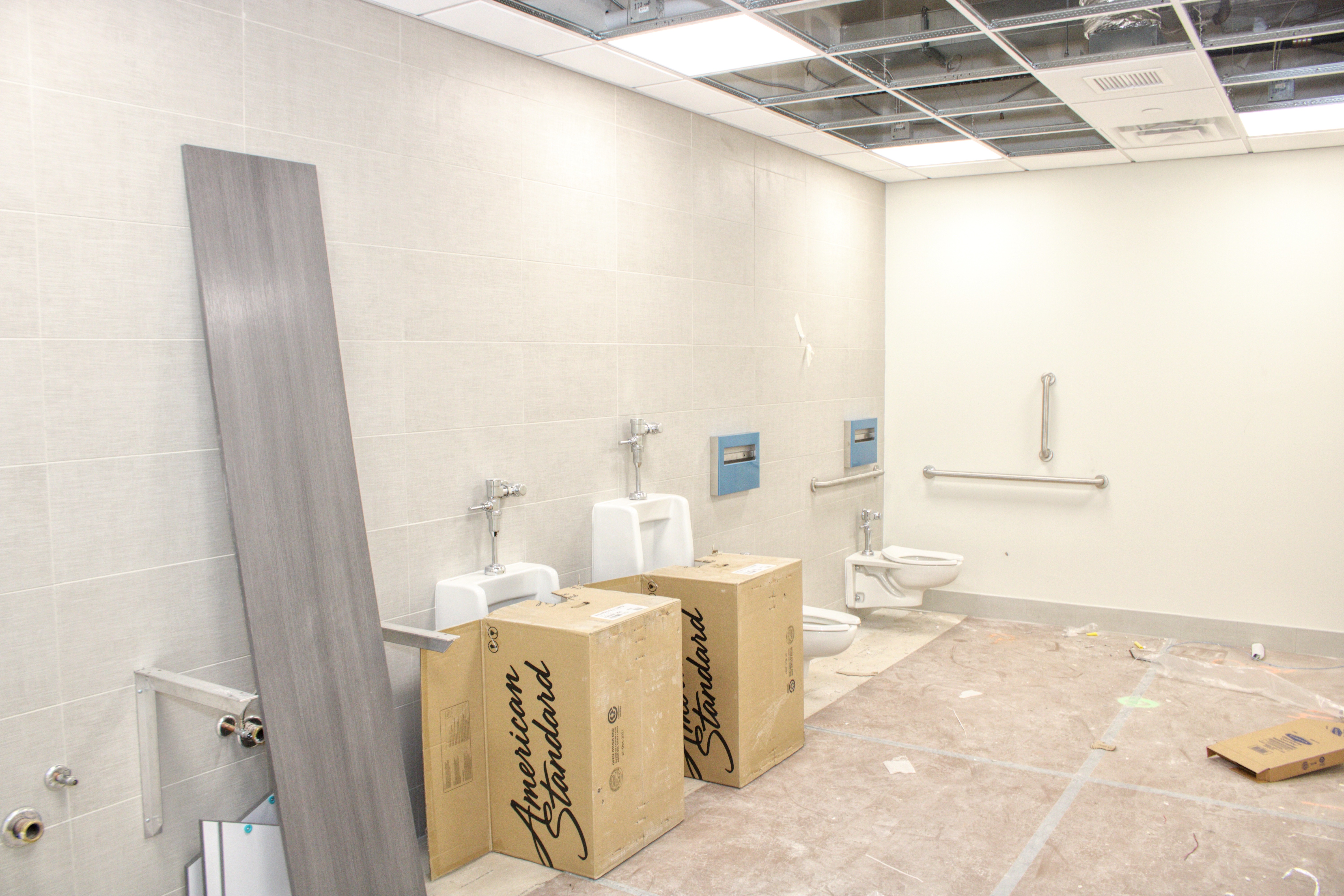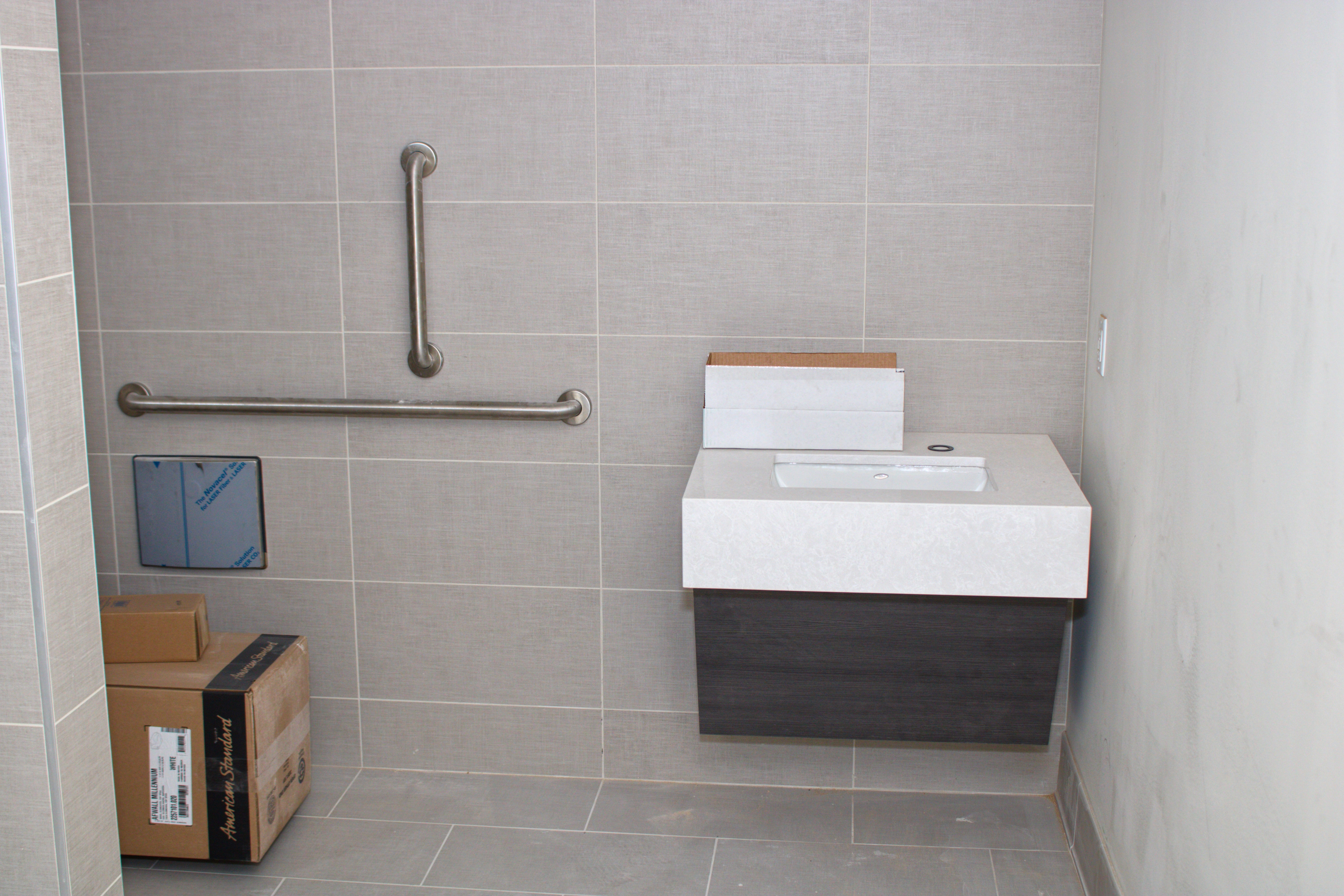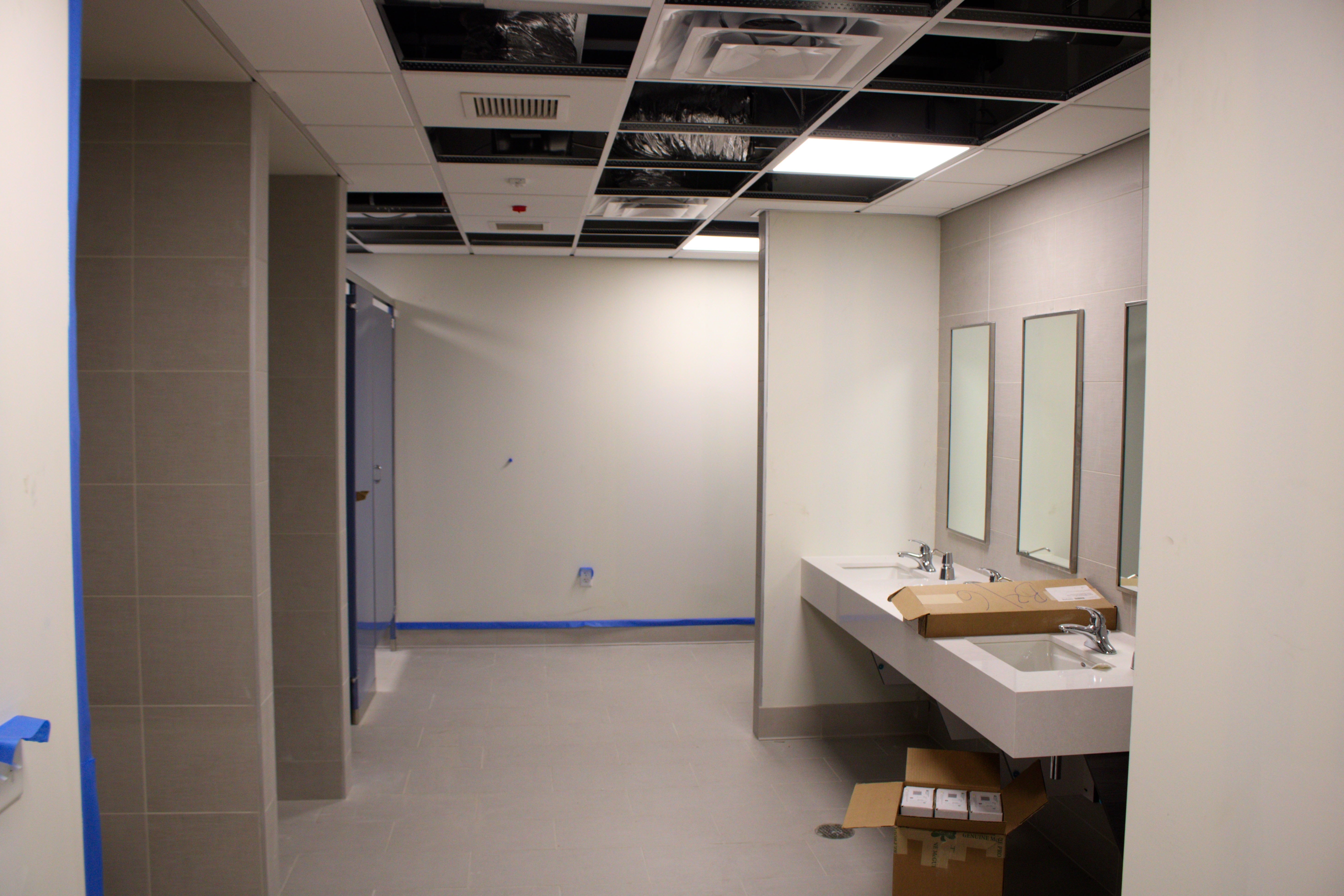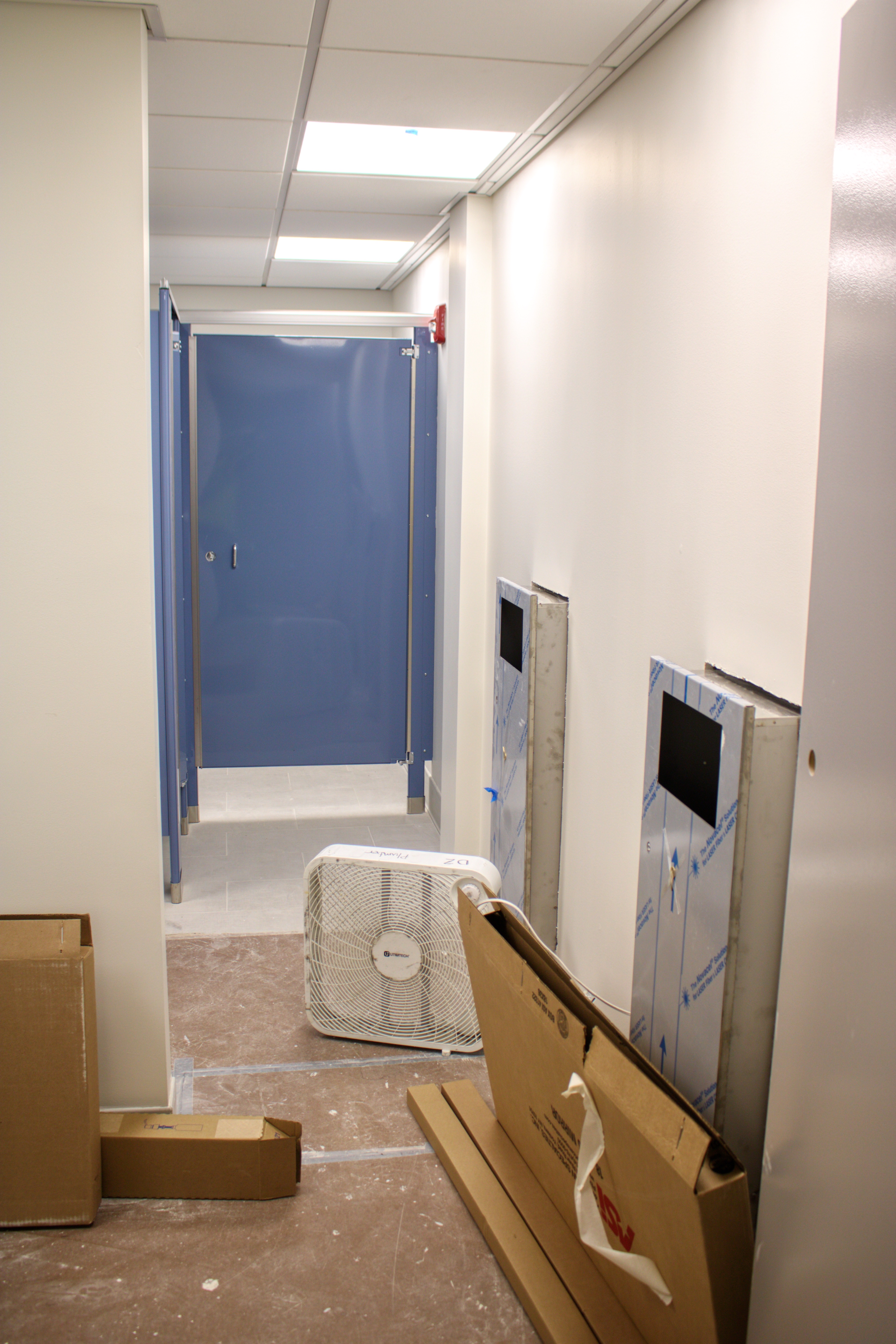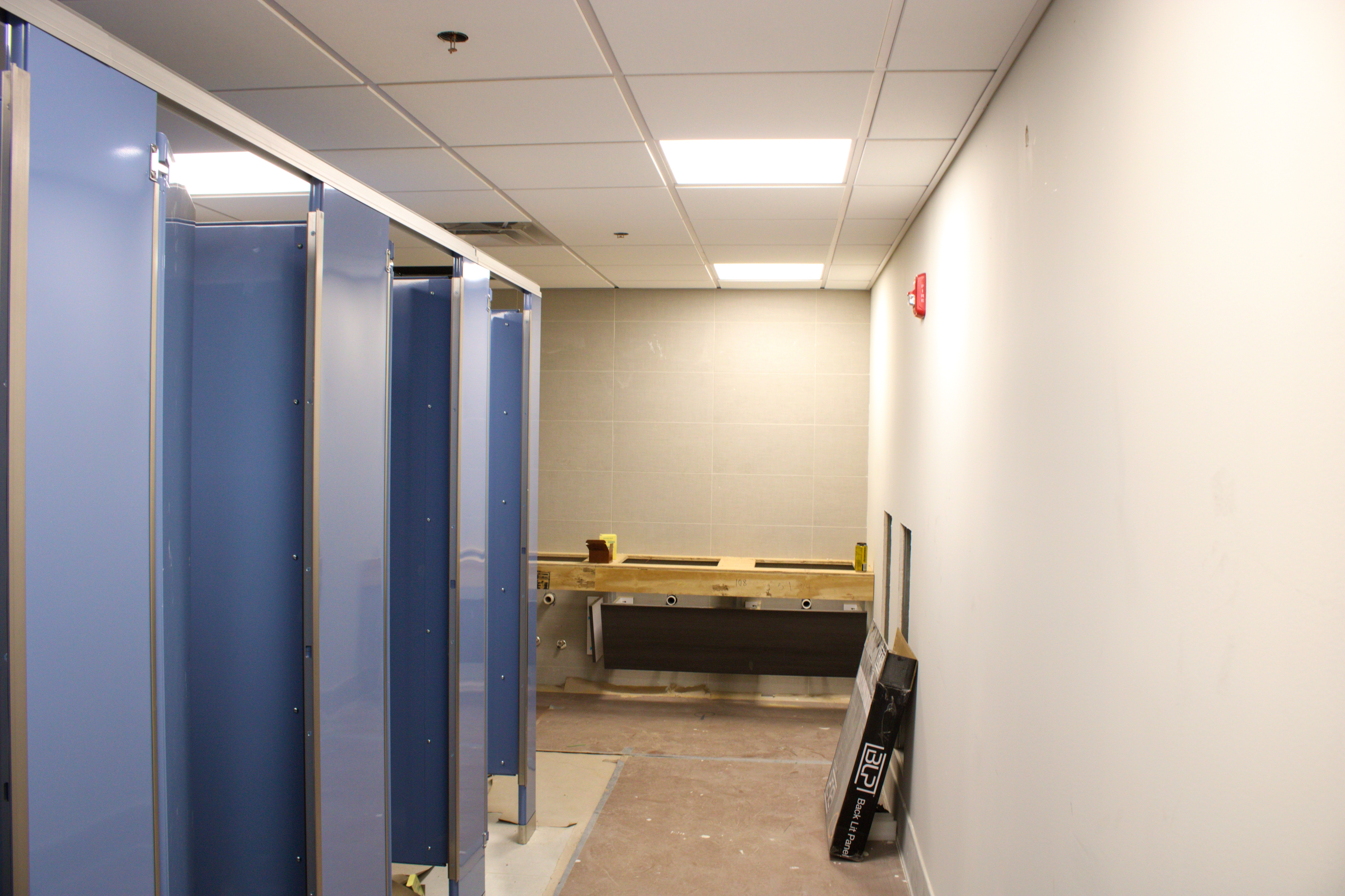 Flooring: The flooring contractor has completed all of the floor prep (outside of the gymnasium area) and vapor barrier for the eventual finishes, i.e. Carpet, VCT and LVT. Those finished floors will be installed more towards the last few weeks of the project to make sure they are not damaged. Ceramic tile at all of the bathrooms is 60% complete and will continue at the North end over the next few weeks.