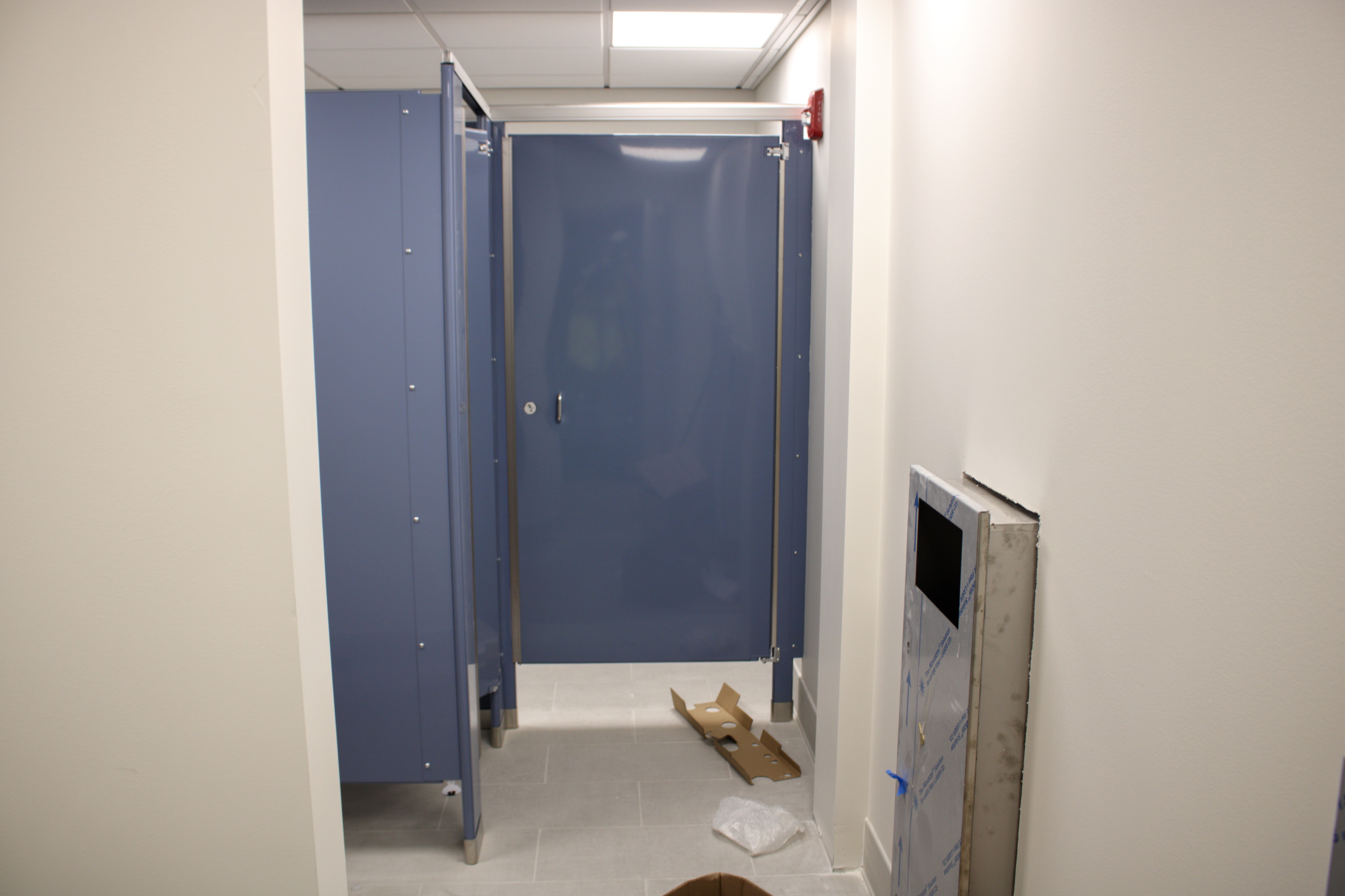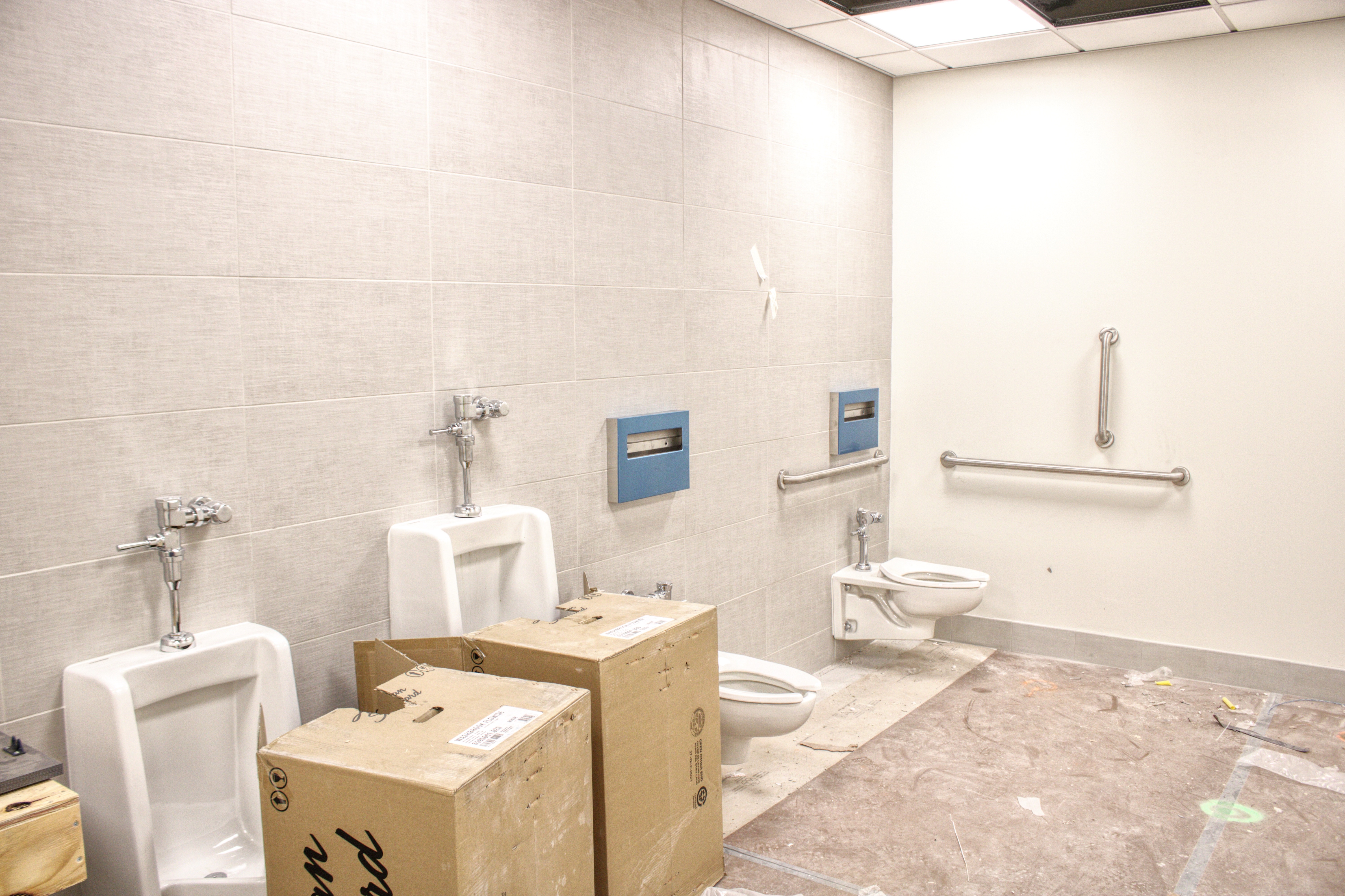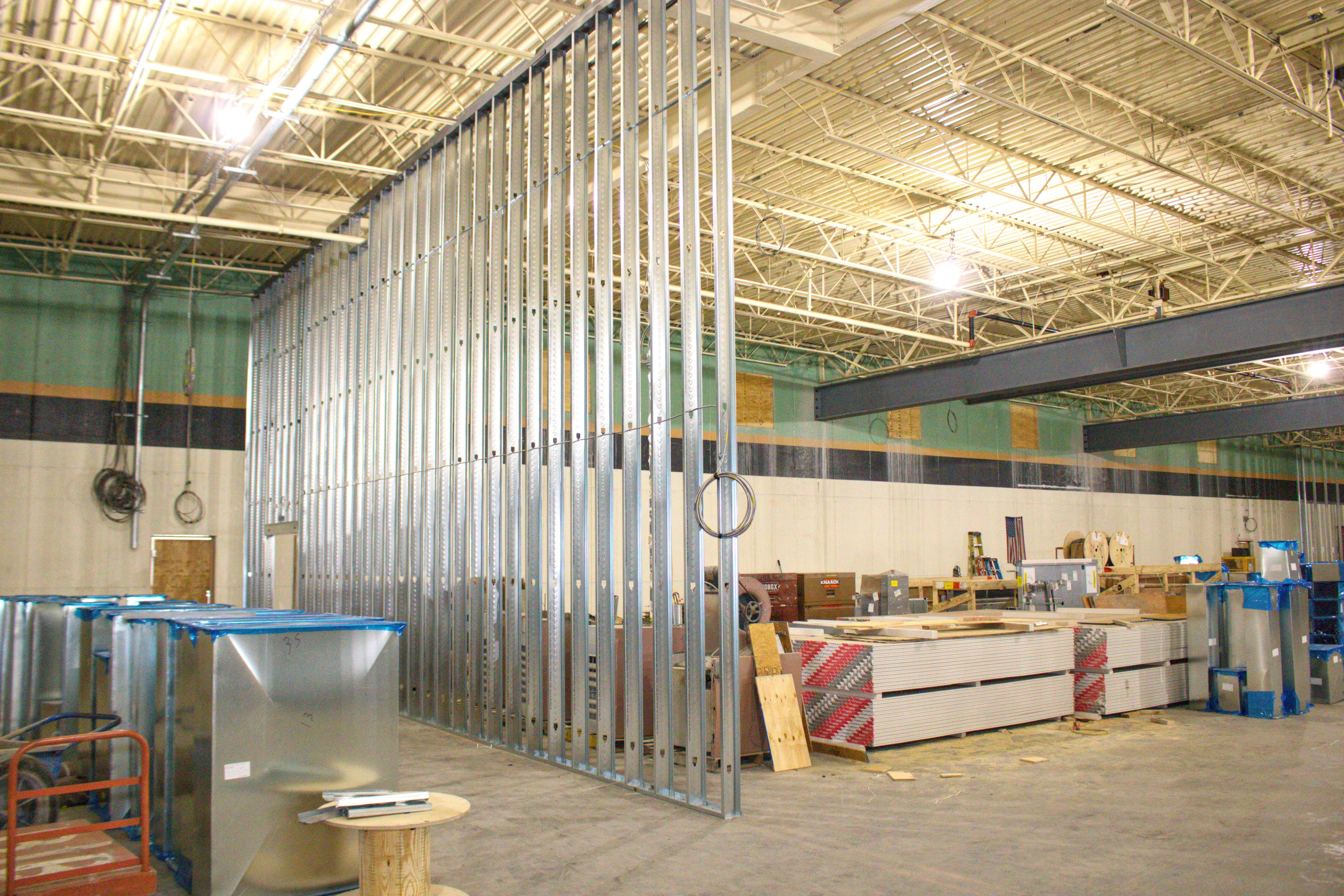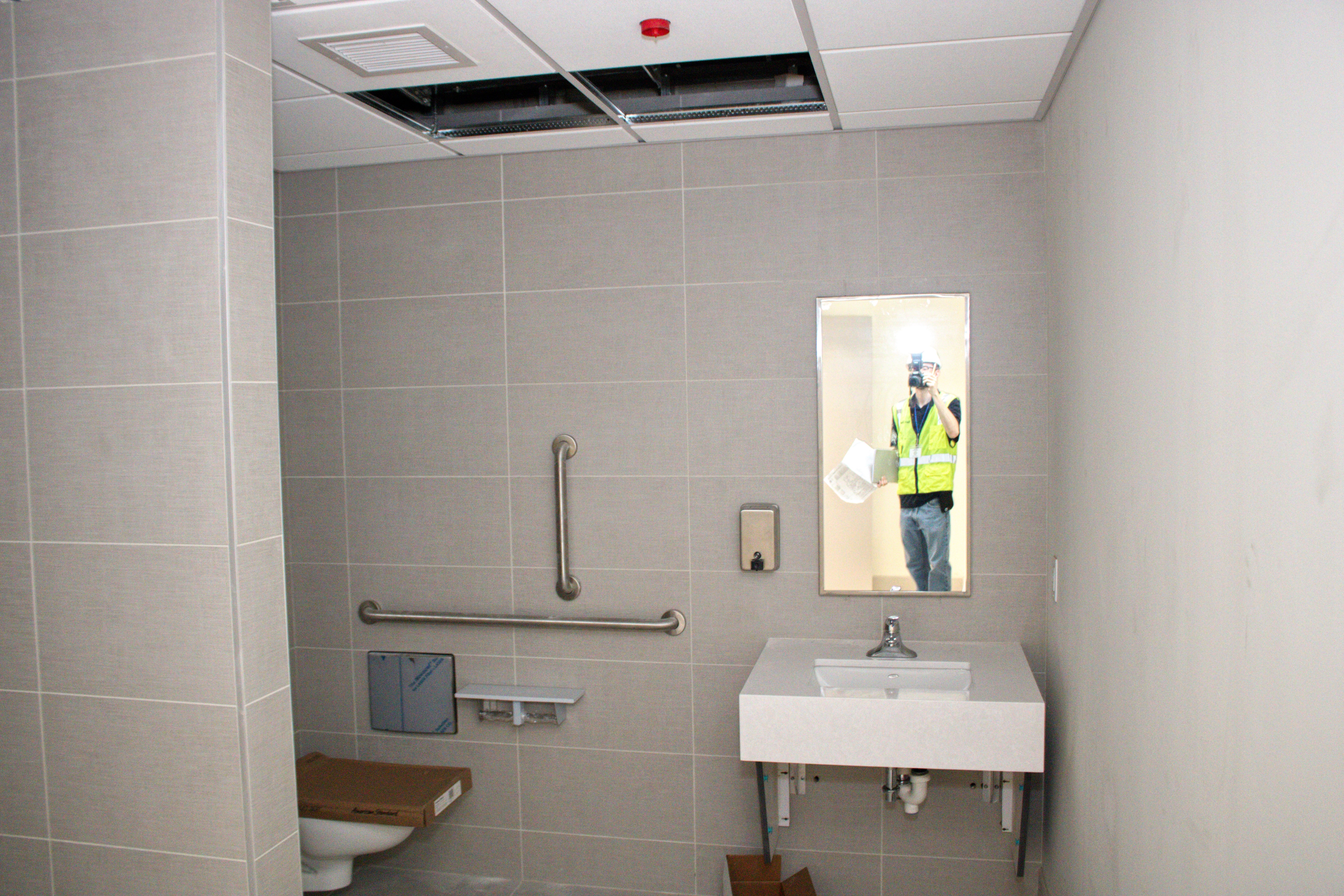 Flooring: The flooring contractor has completed all of the floor prep (outside of the gymnasium area) and vapor barrier for the eventual finishes, i.e. Carpet, VCT and LVT. Those finished floors will be installed more towards the last few weeks of the project to make sure they are not damaged. Ceramic tile at all of the bathrooms is 60% complete and will continue at the North end over the next few weeks.