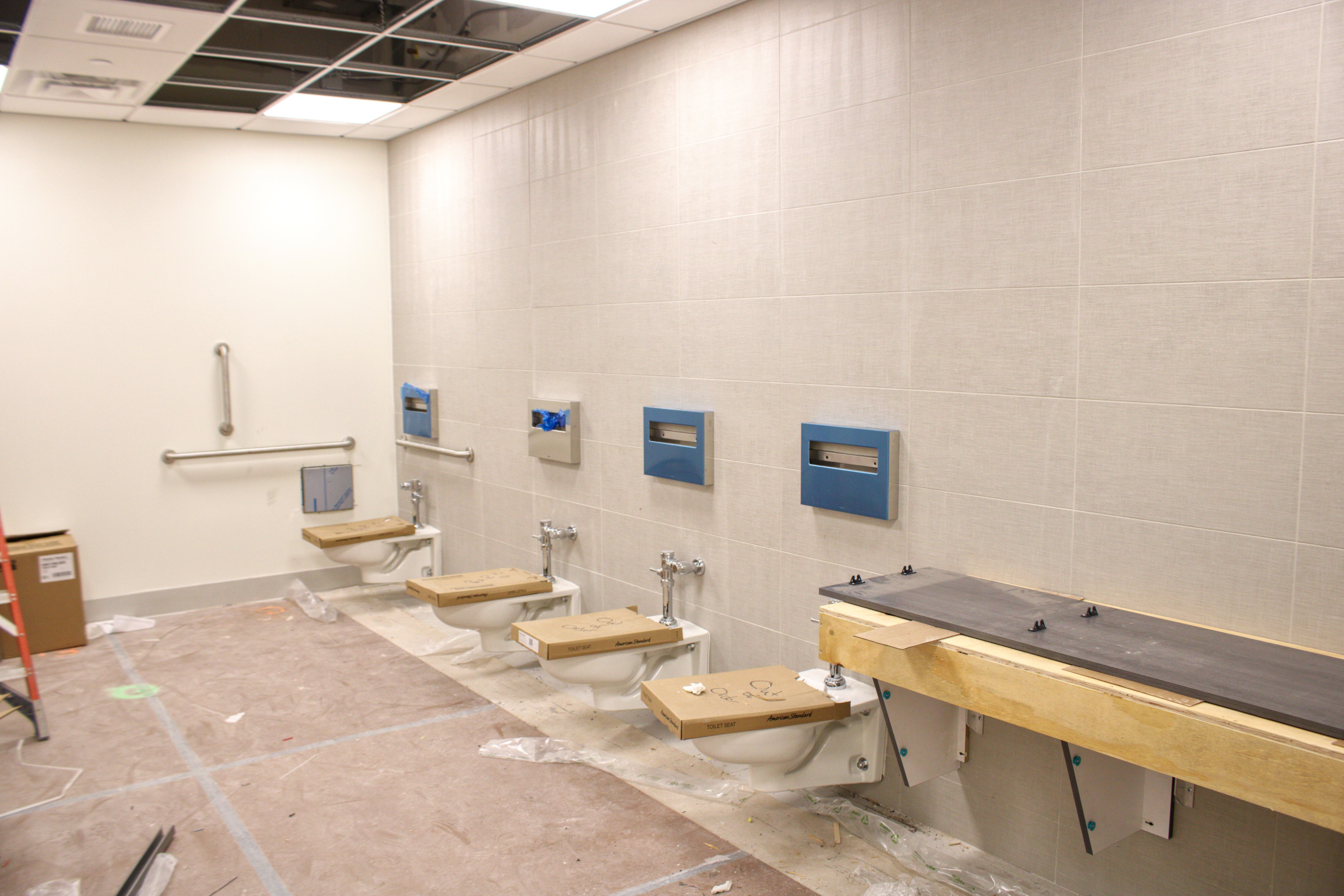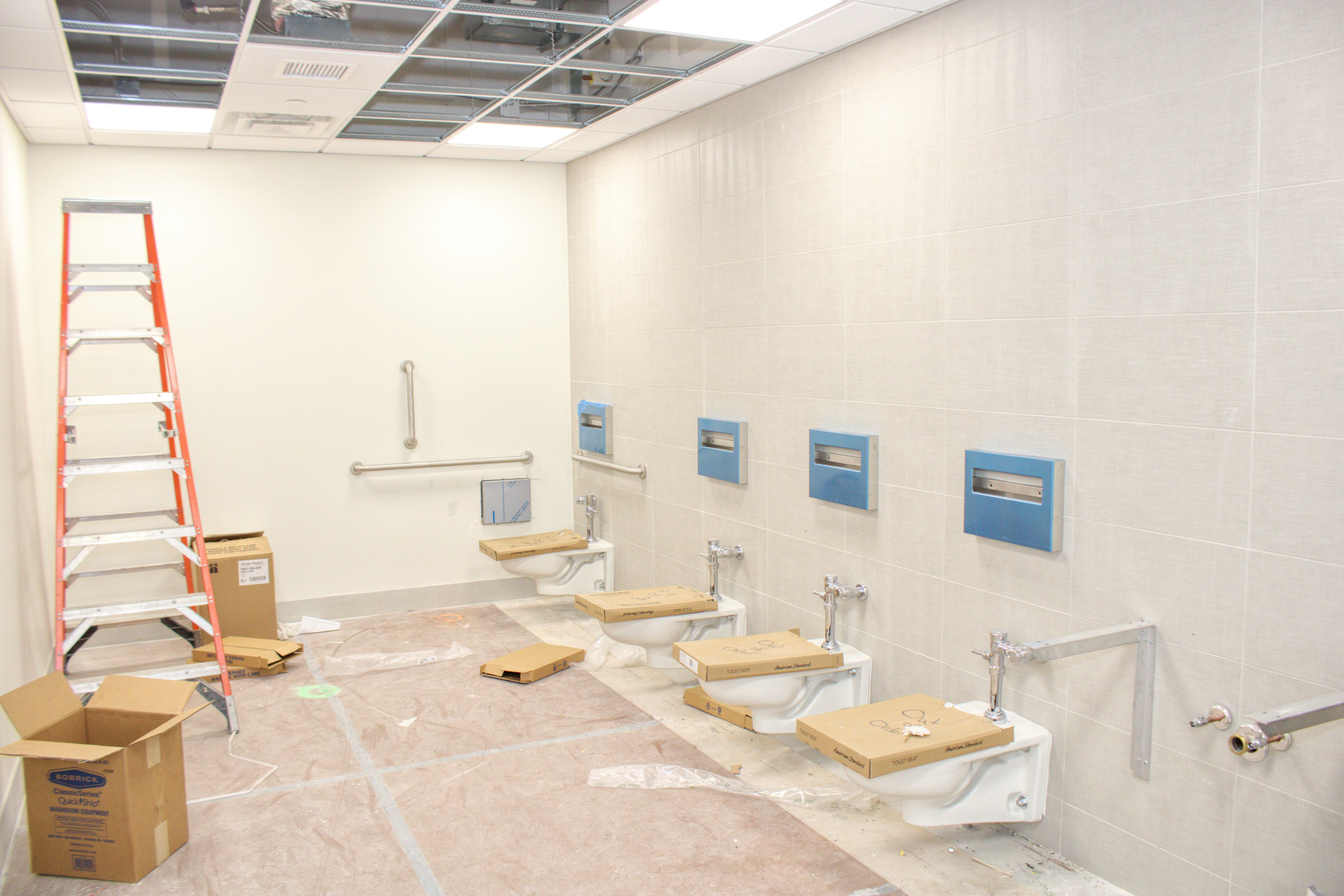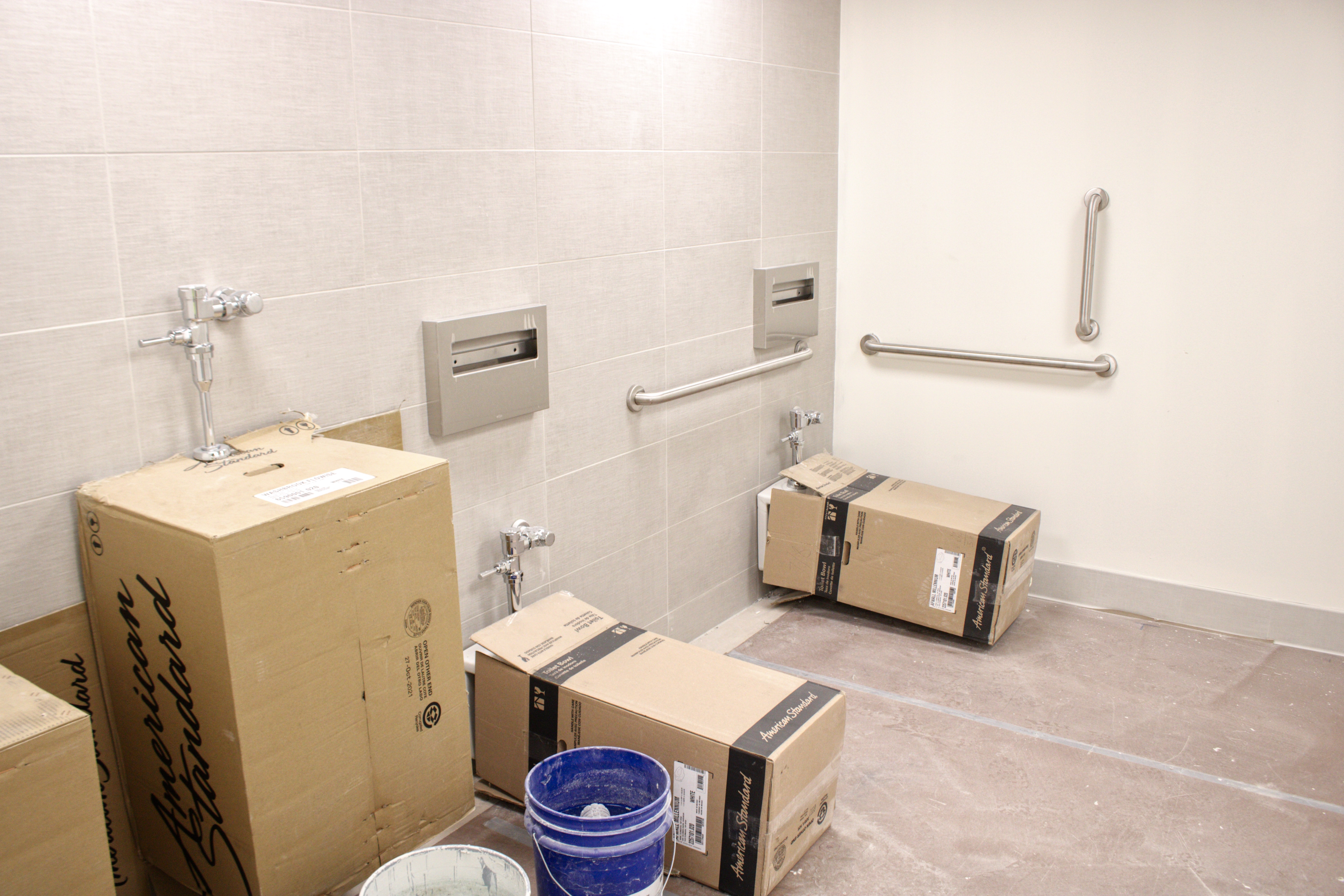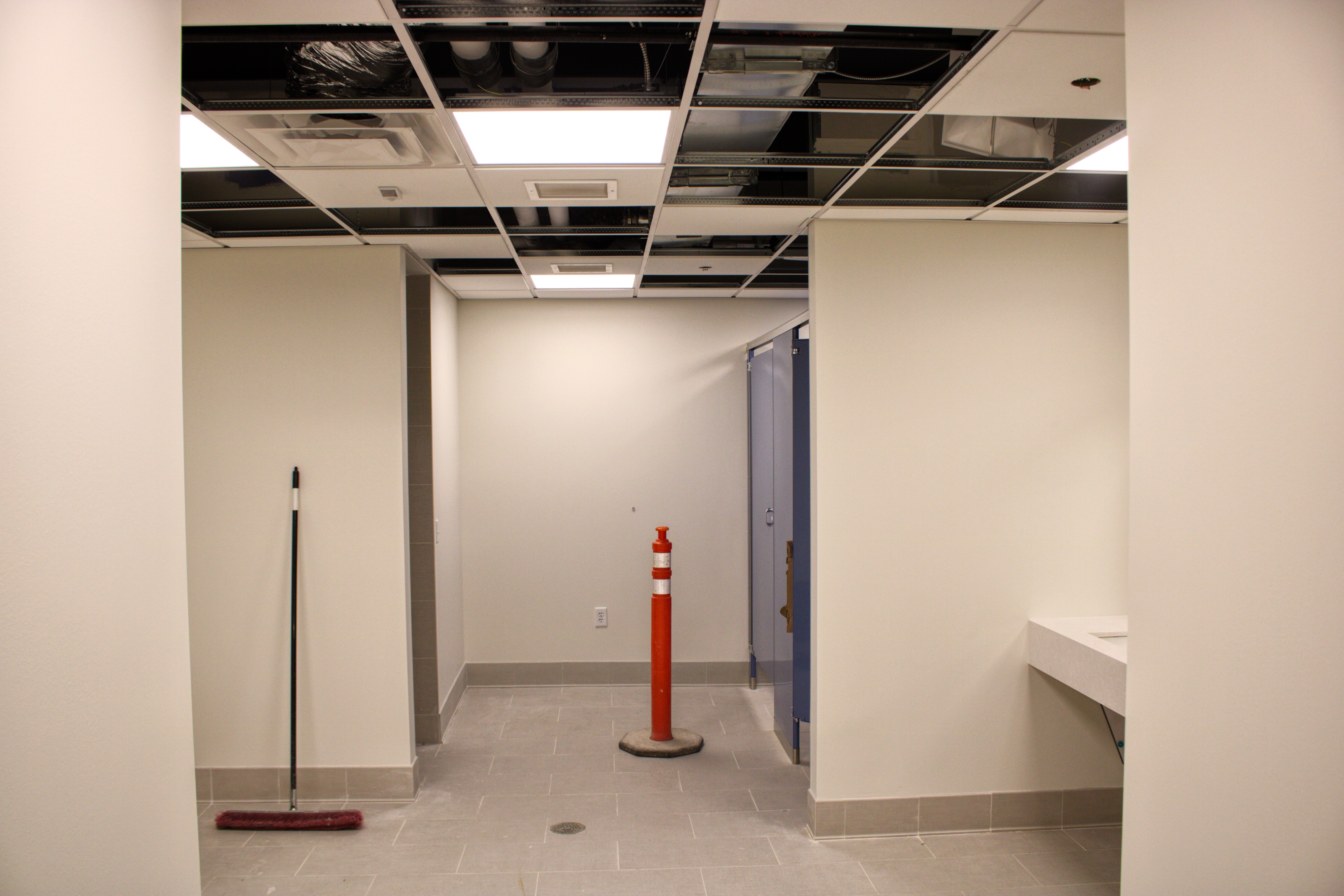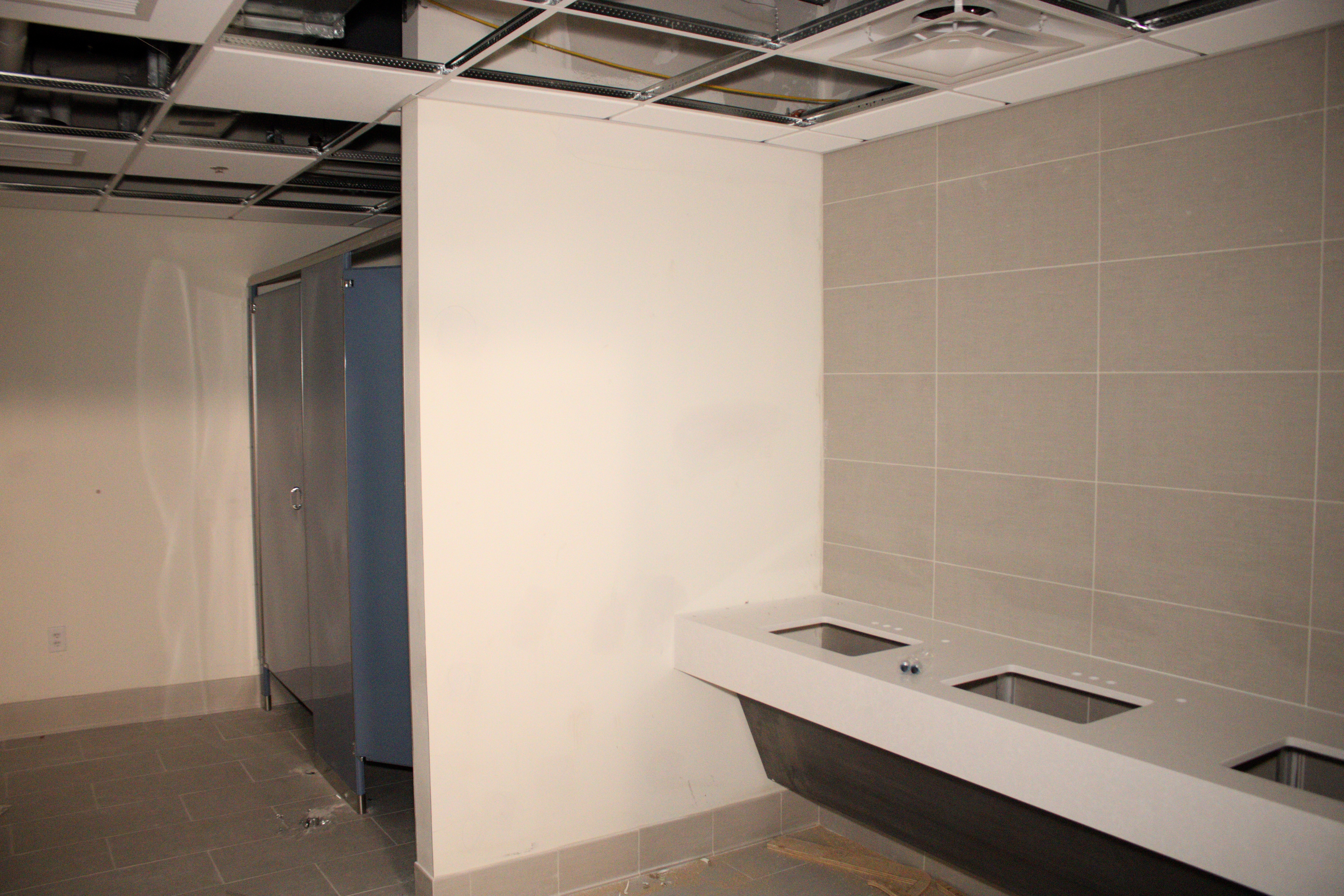Flooring: The flooring contractor has completed all of the floor prep (outside of the gymnasium area) and vapor barrier for the eventual finishes, i.e. Carpet, VCT and LVT. Those finished floors will be installed more towards the last few weeks of the project to make sure they are not damaged. Ceramic tile at all of the bathrooms is 60% complete and will continue at the North end over the next few weeks.