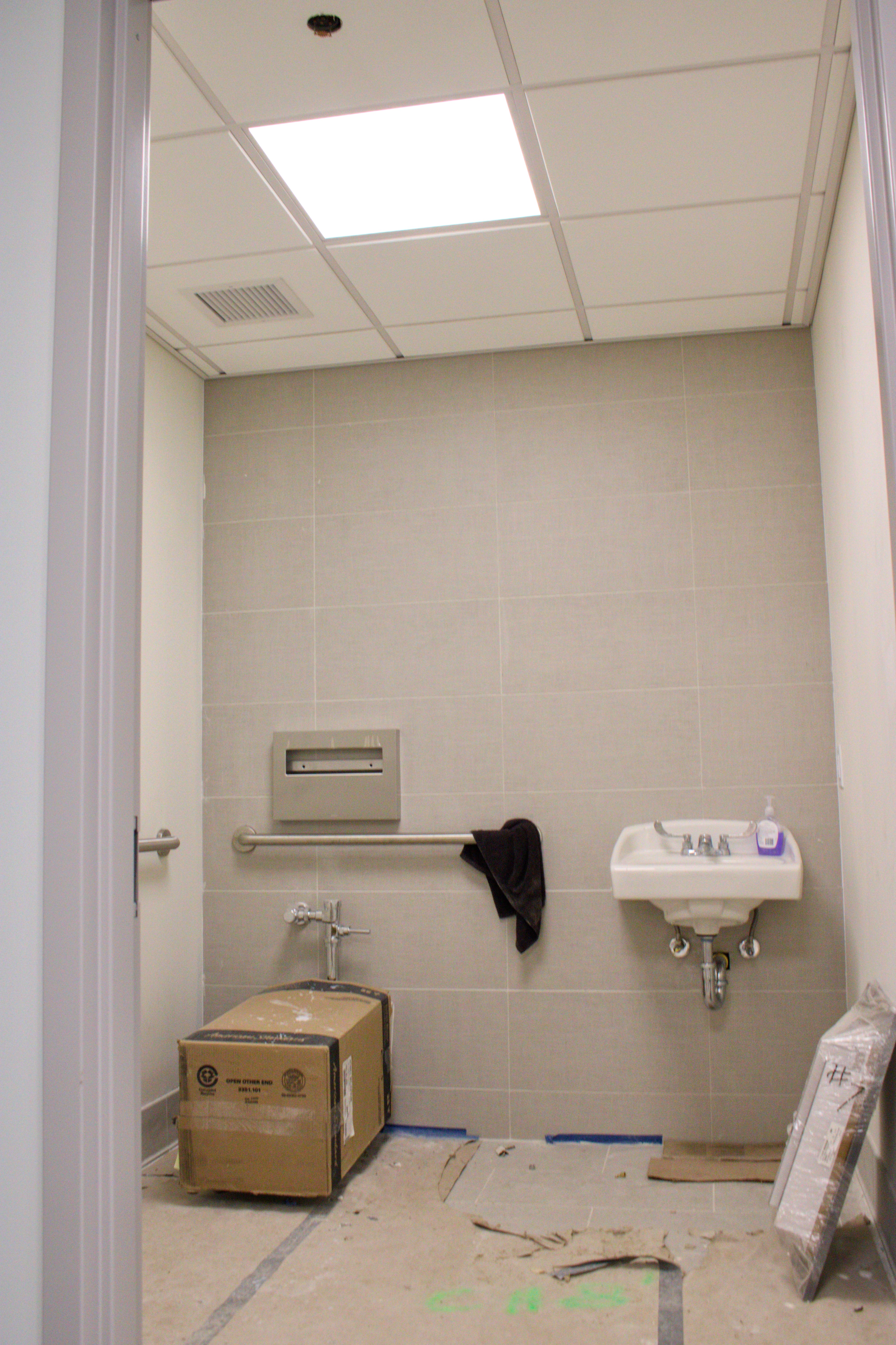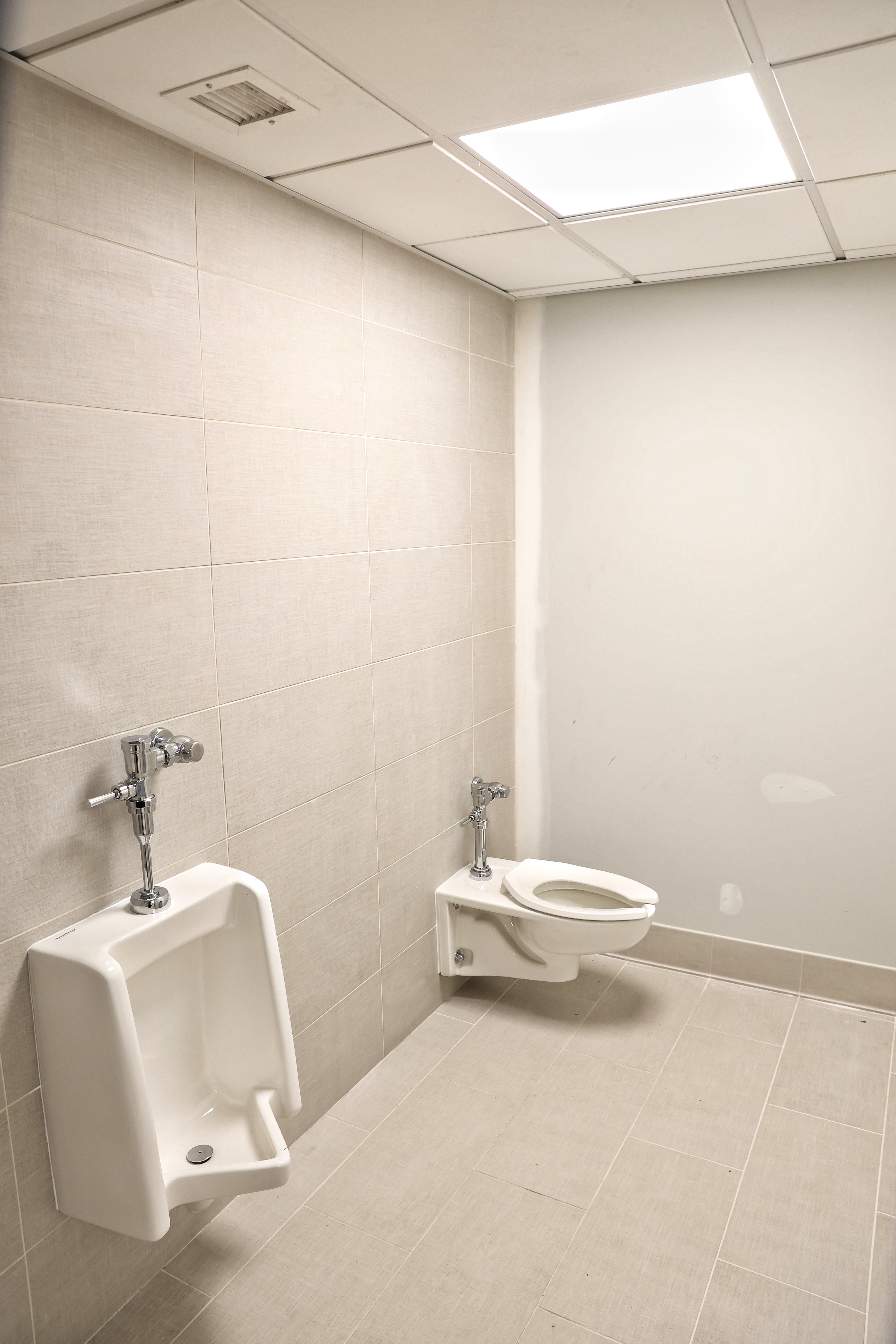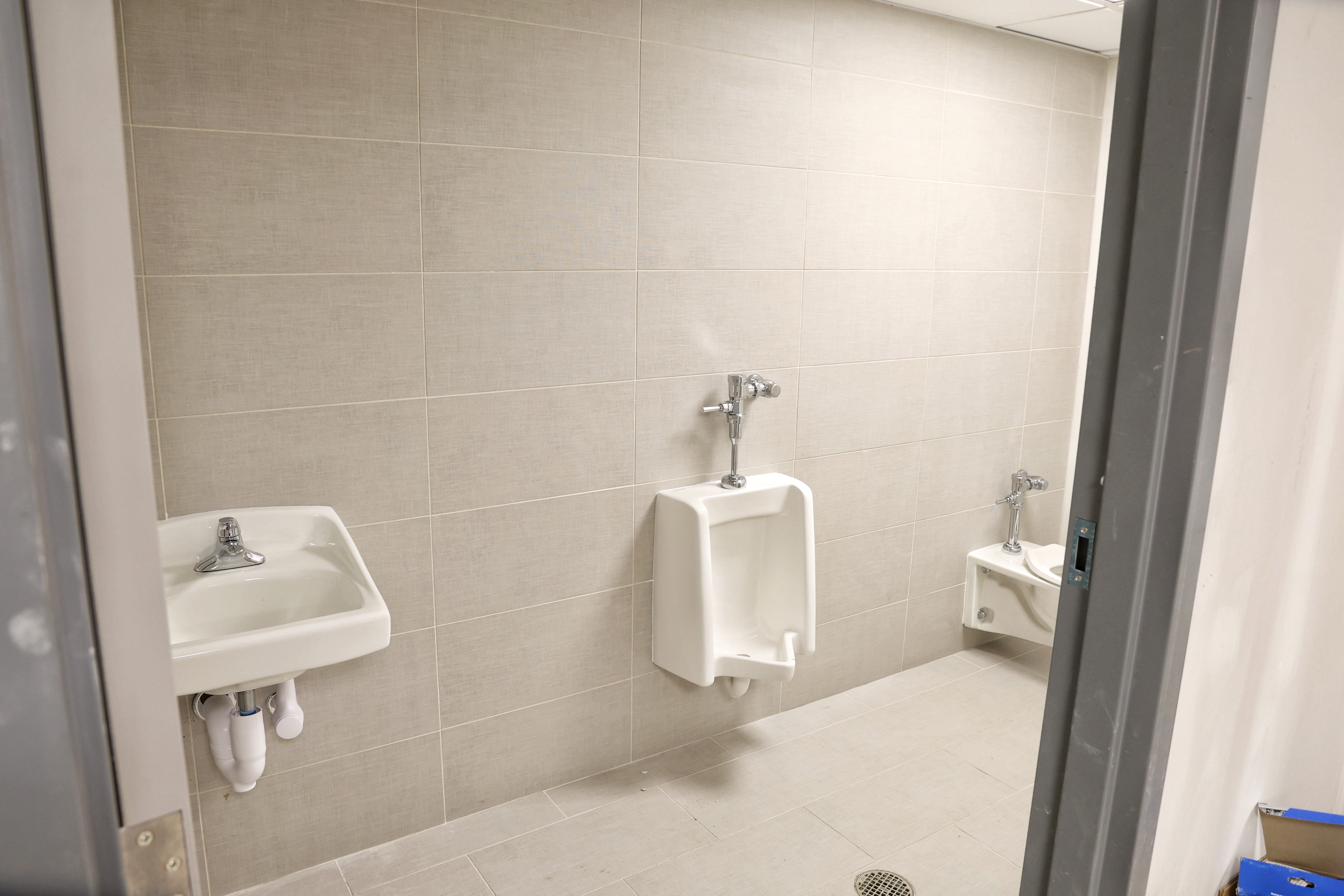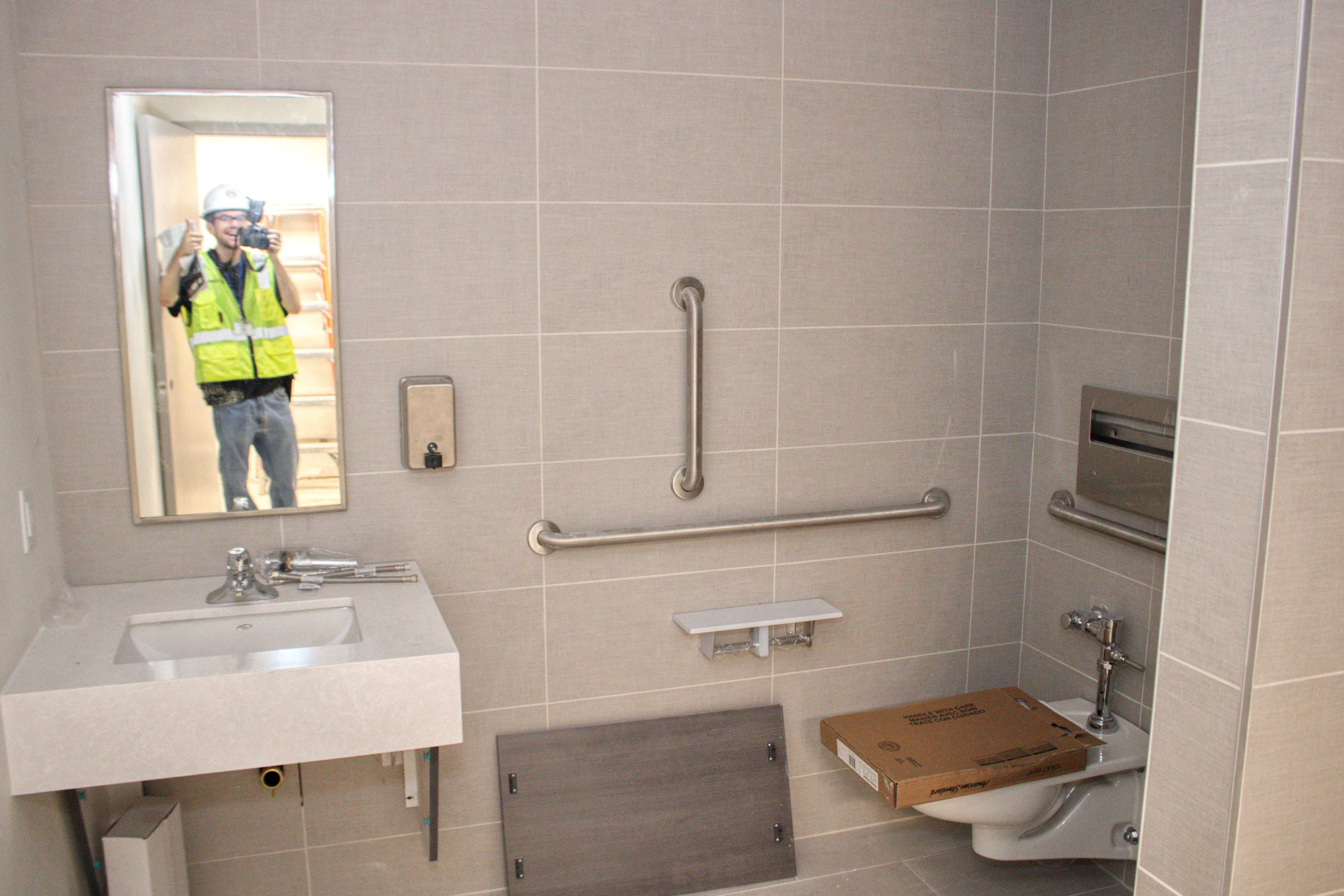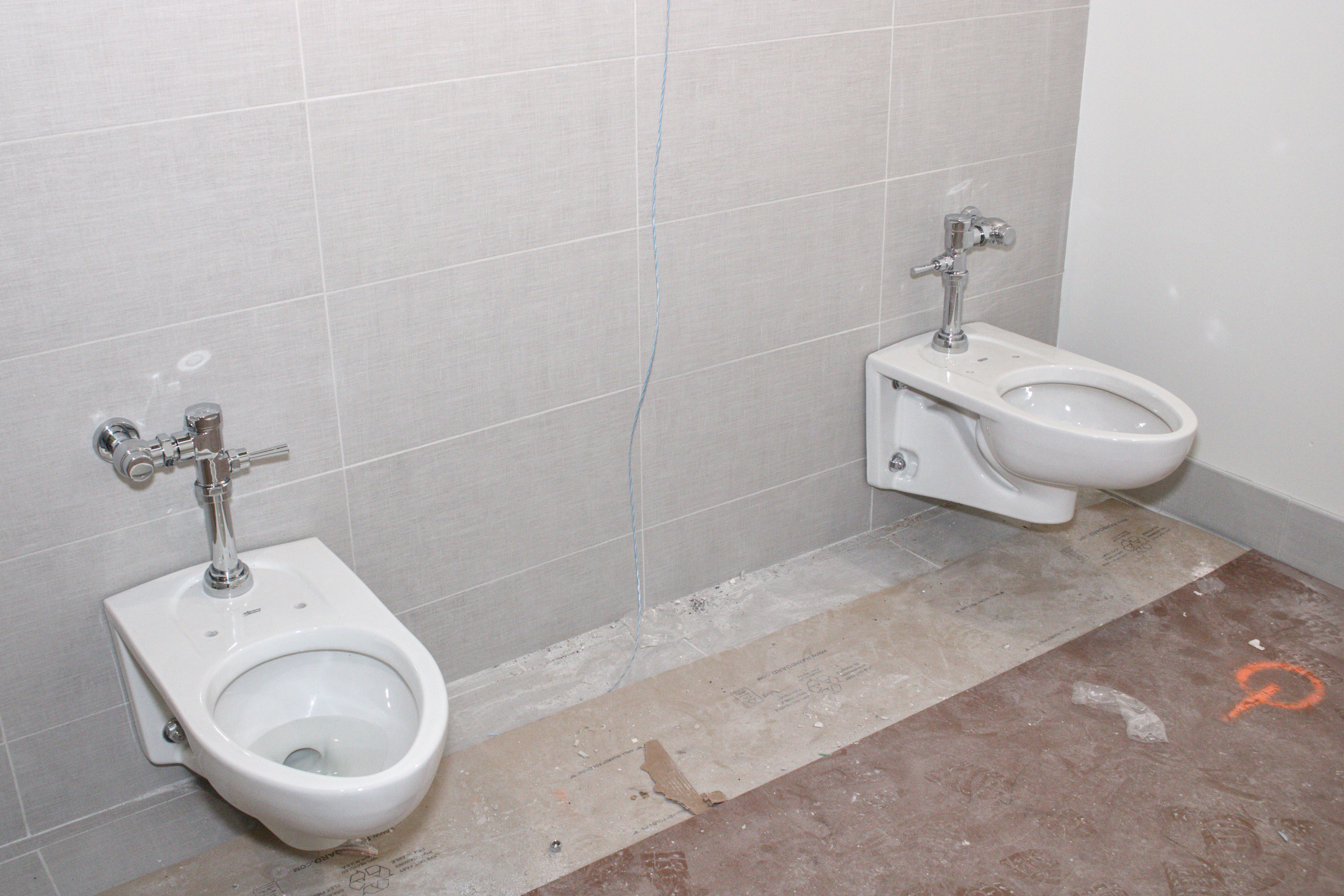 Flooring: The flooring contractor has completed all of the floor prep (outside of the gymnasium area) and vapor barrier for the eventual finishes, i.e. Carpet, VCT and LVT. Those finished floors will be installed more towards the last few weeks of the project to make sure they are not damaged. Ceramic tile at all of the bathrooms is 60% complete and will continue at the North end over the next few weeks.