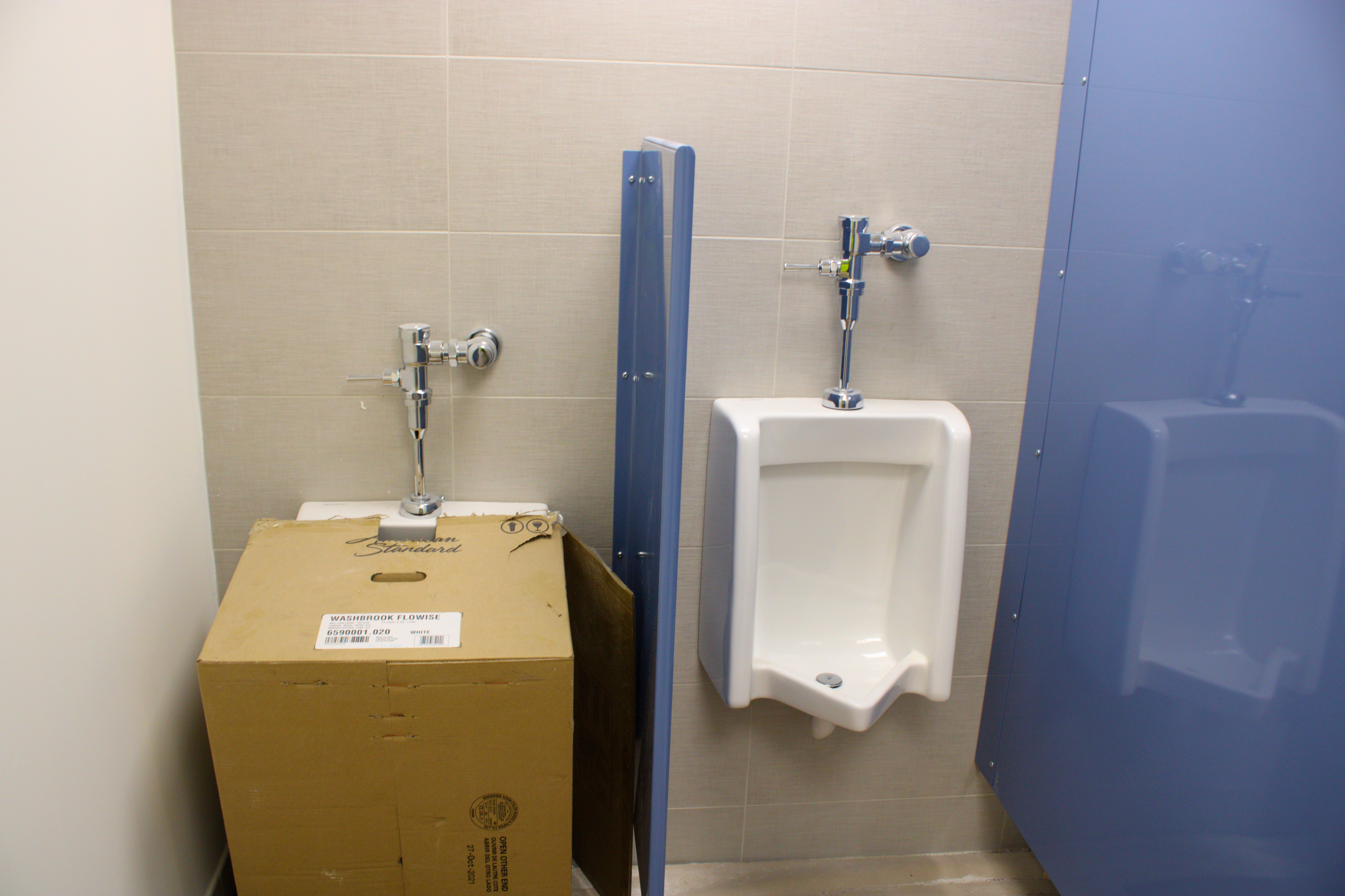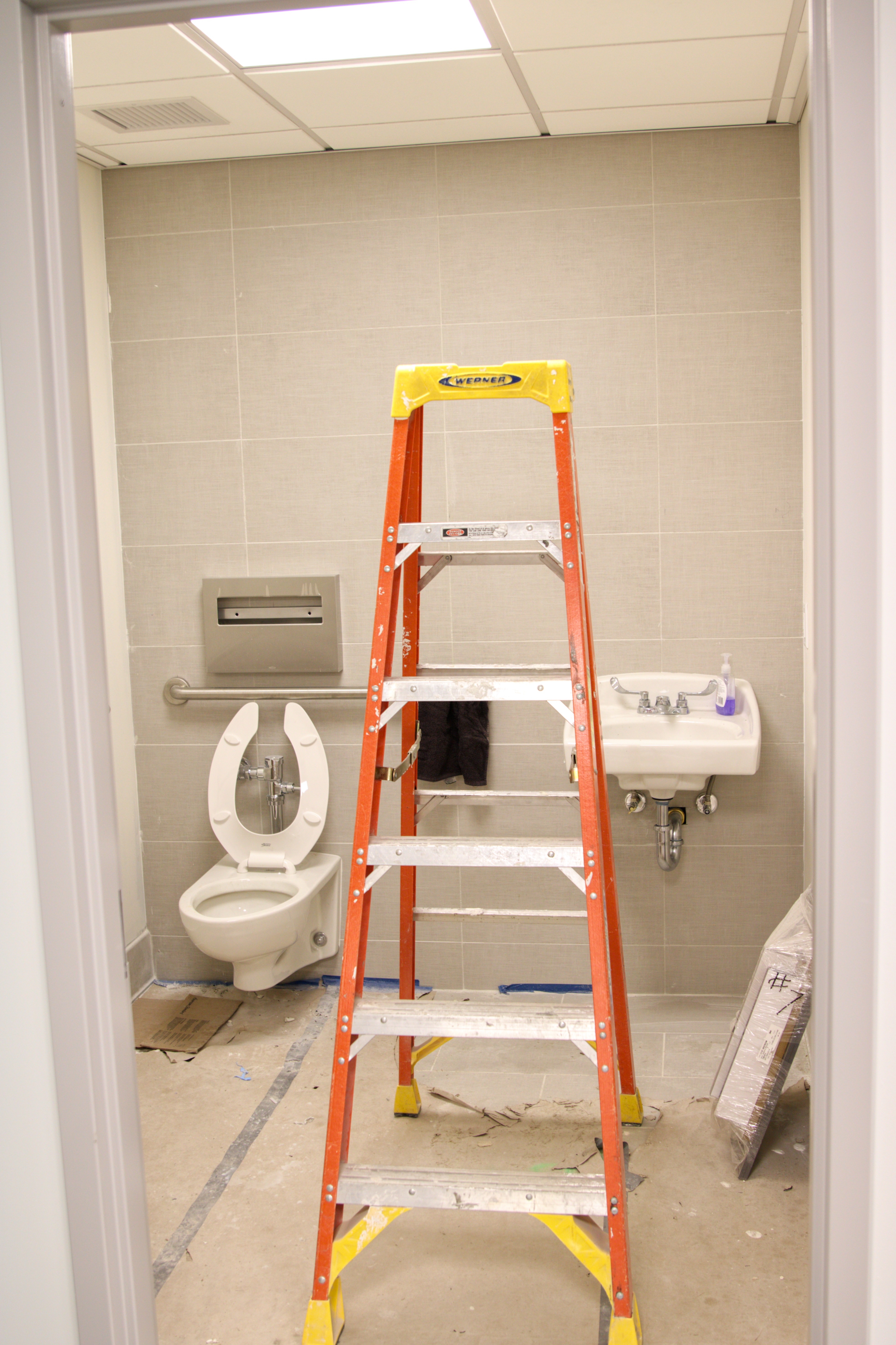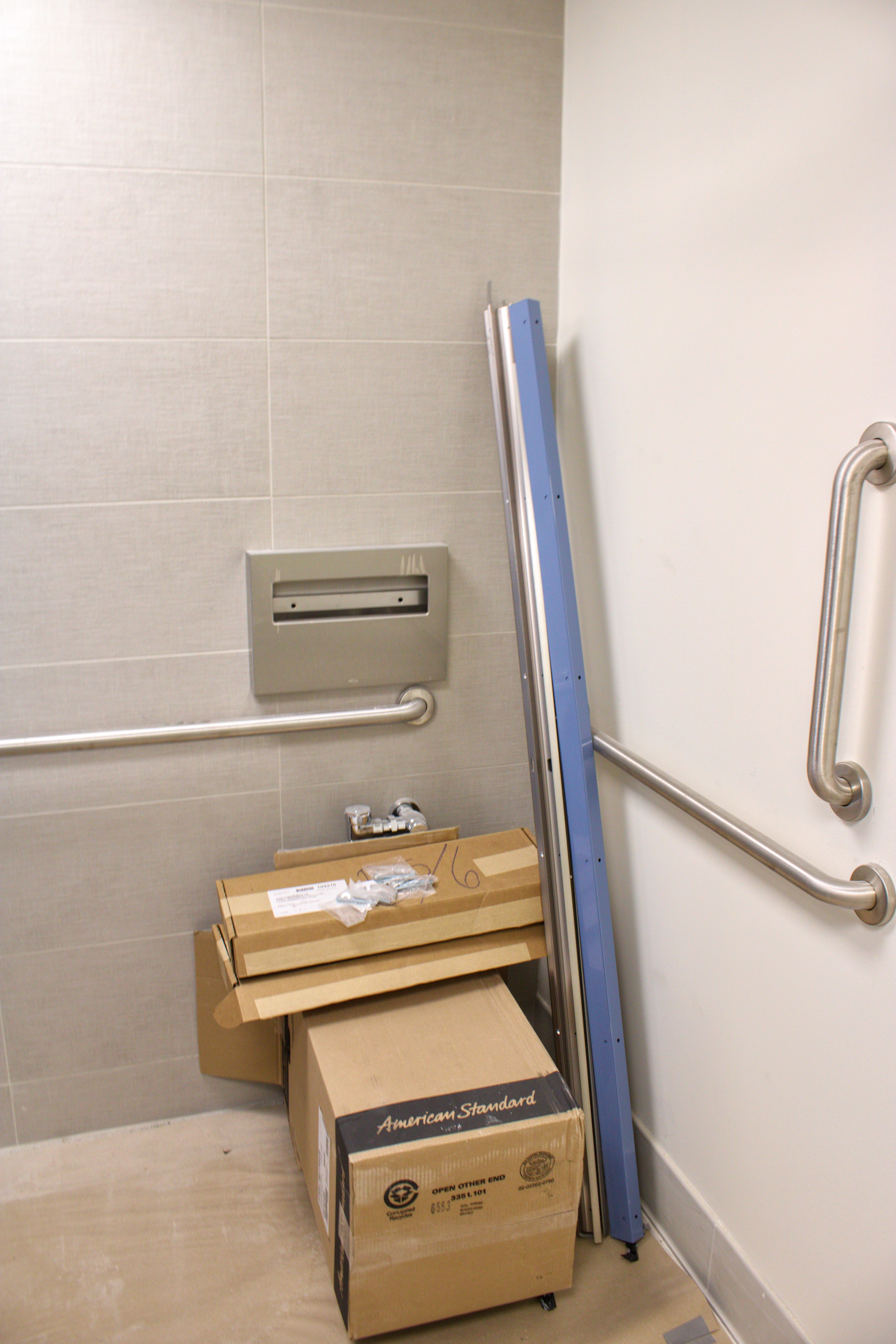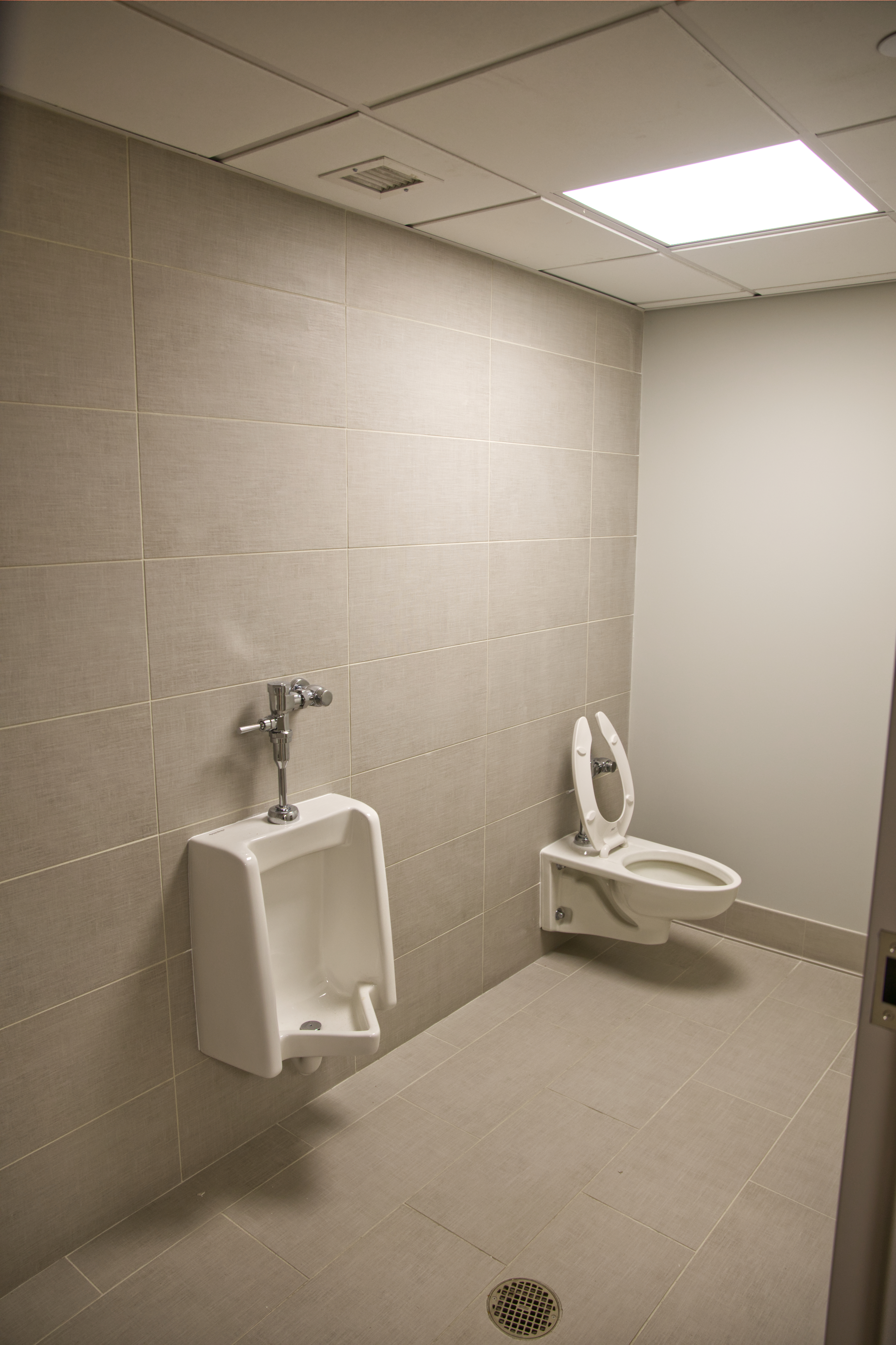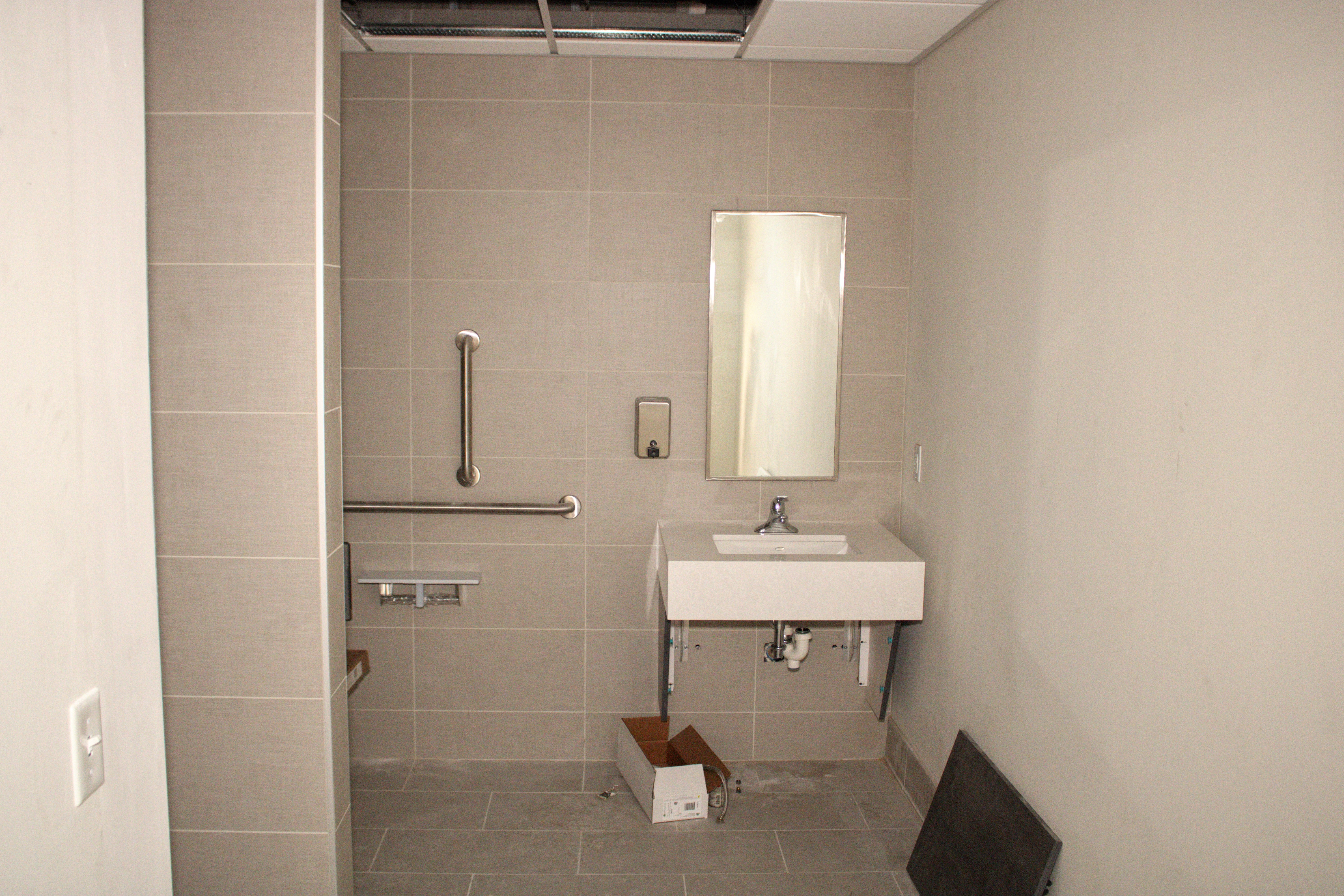 Flooring: The flooring contractor has completed all of the floor prep (outside of the gymnasium area) and vapor barrier for the eventual finishes, i.e. Carpet, VCT and LVT. Those finished floors will be installed more towards the last few weeks of the project to make sure they are not damaged. Ceramic tile at all of the bathrooms is 60% complete and will continue at the North end over the next few weeks.