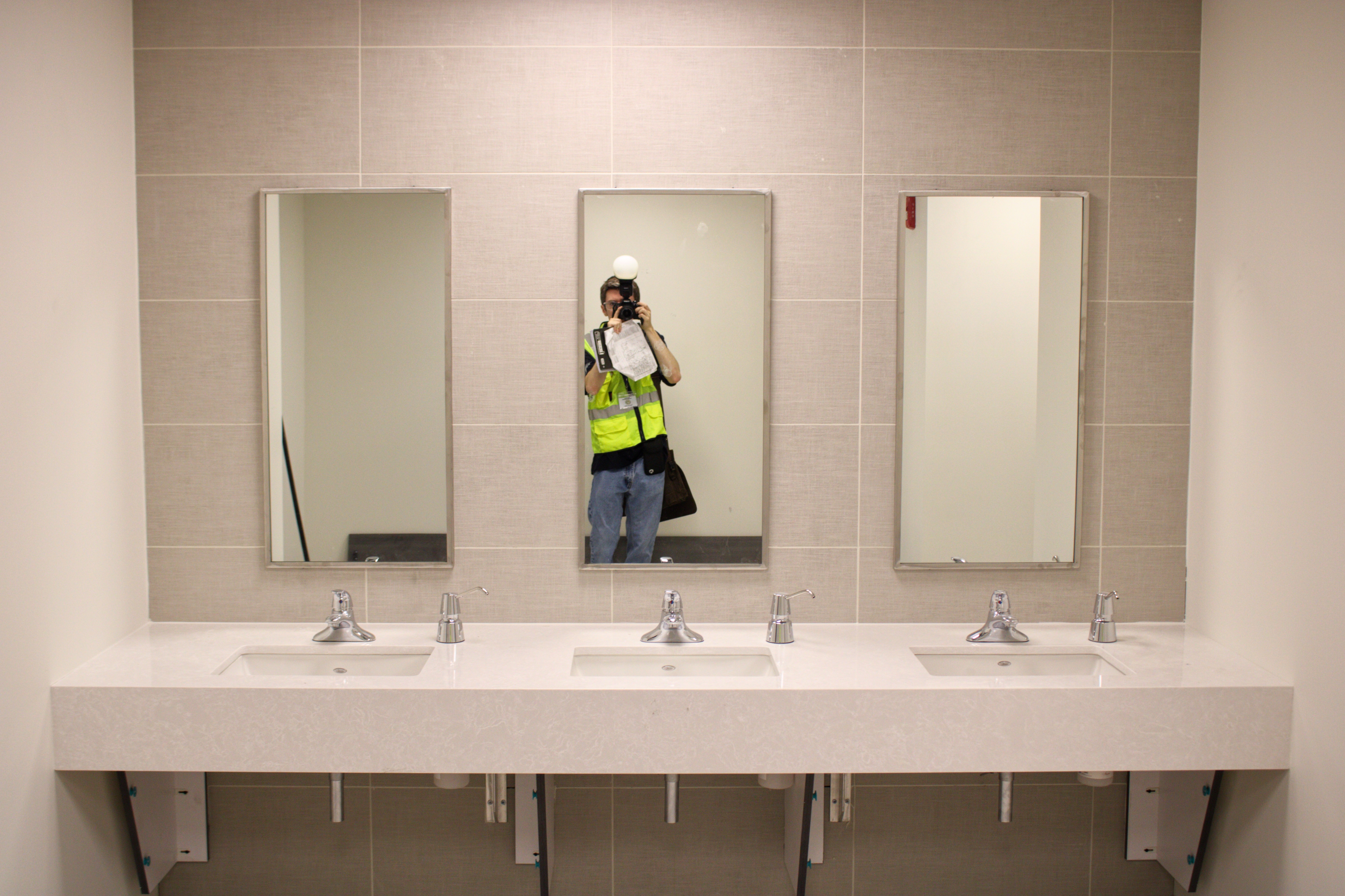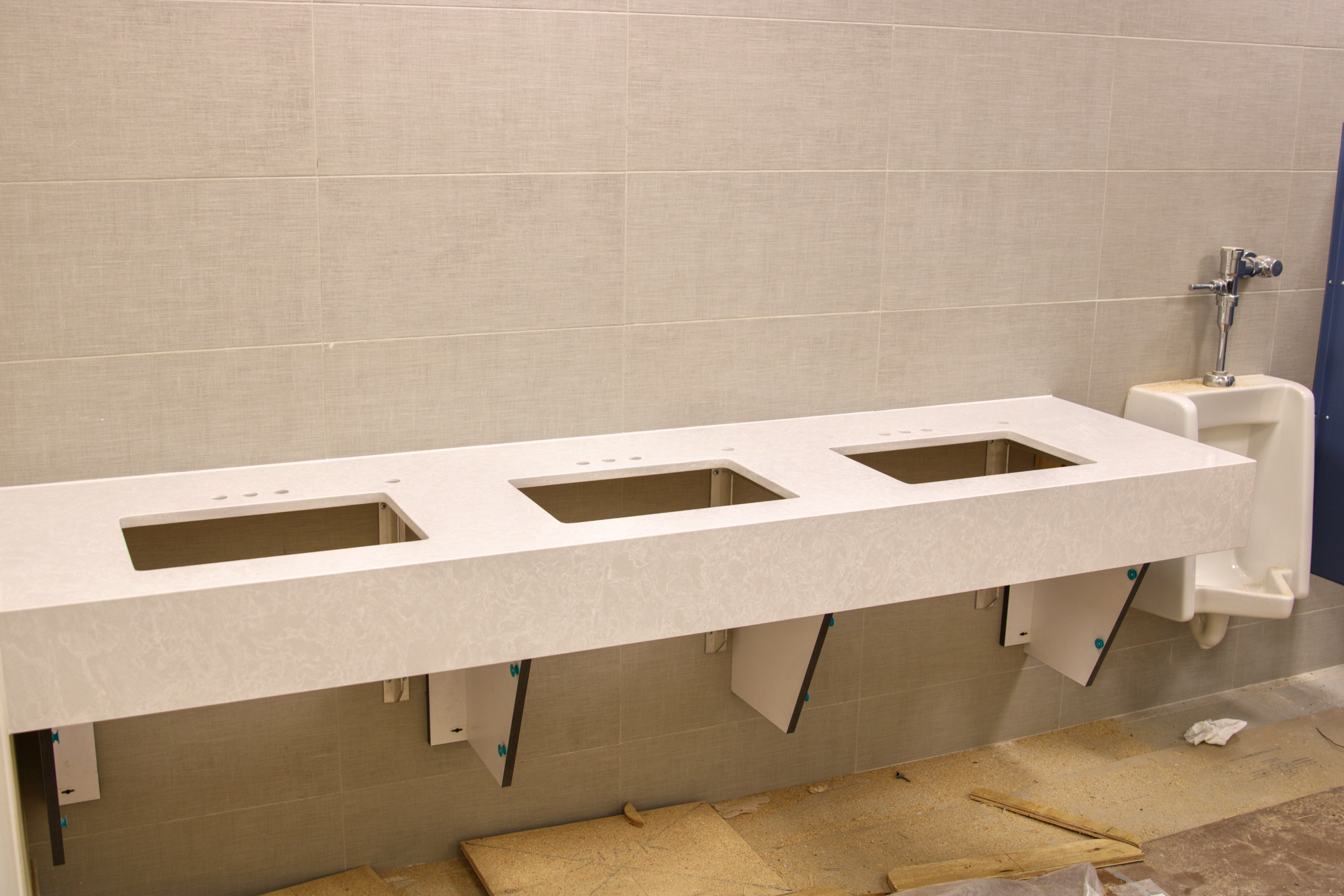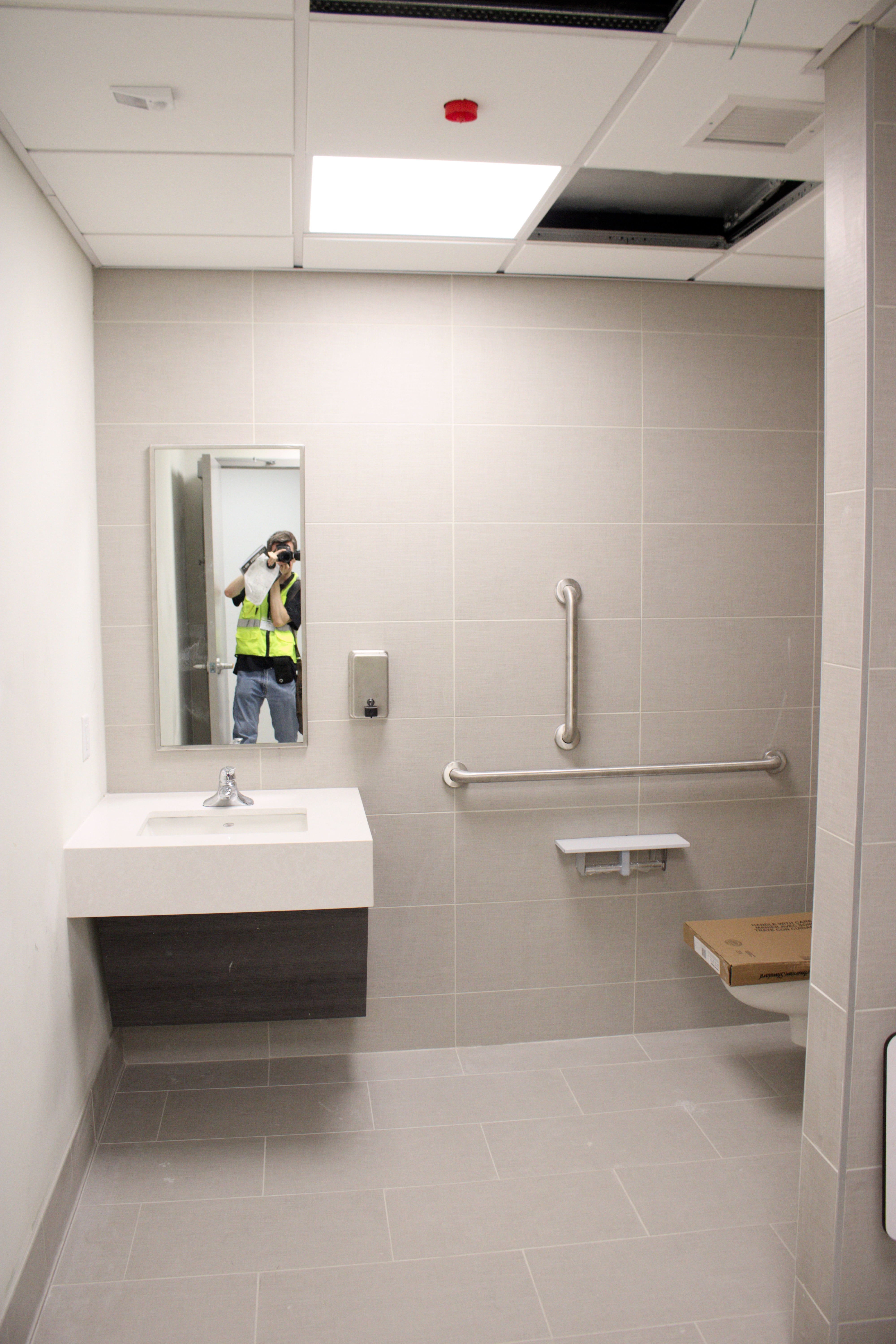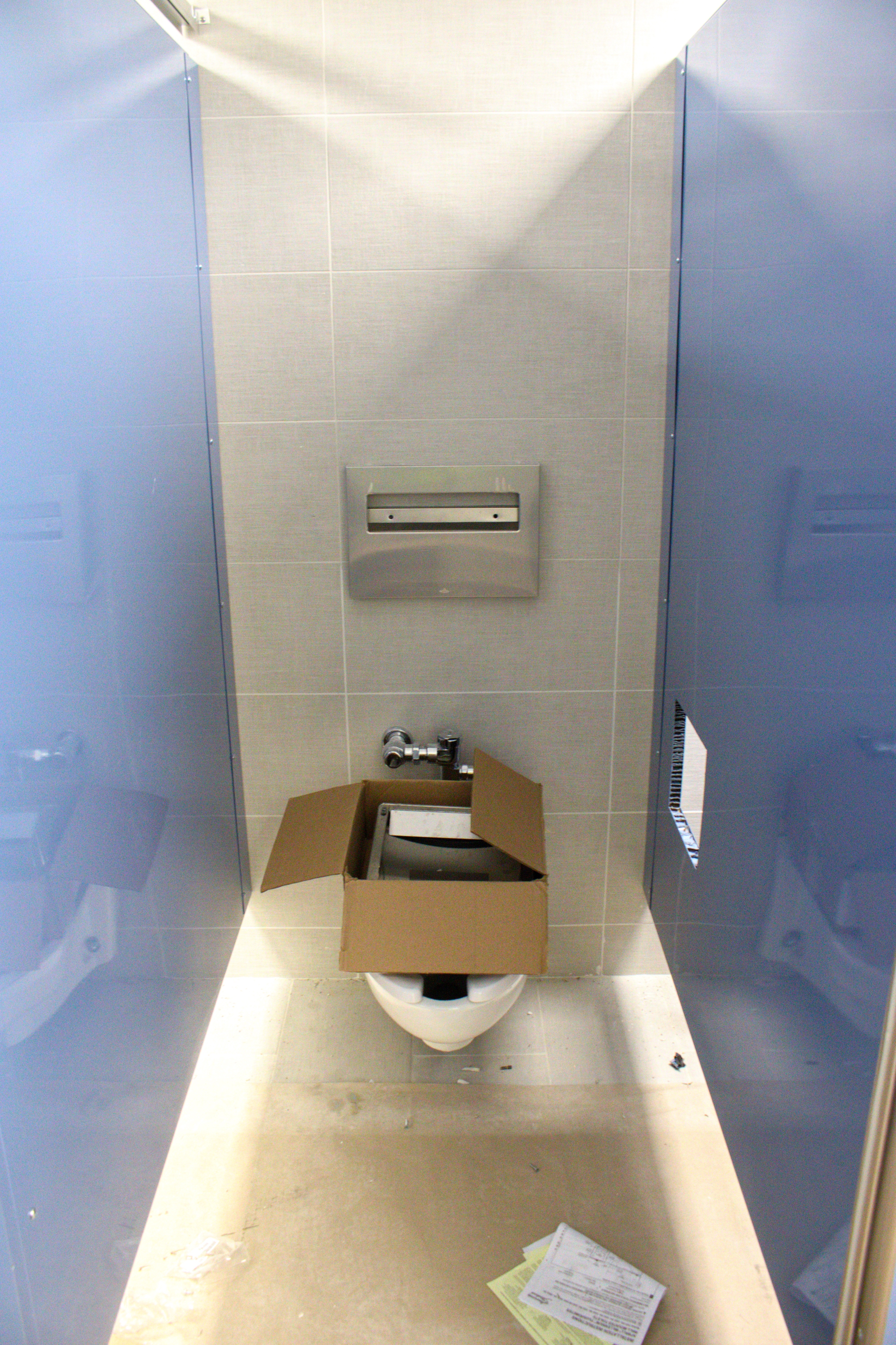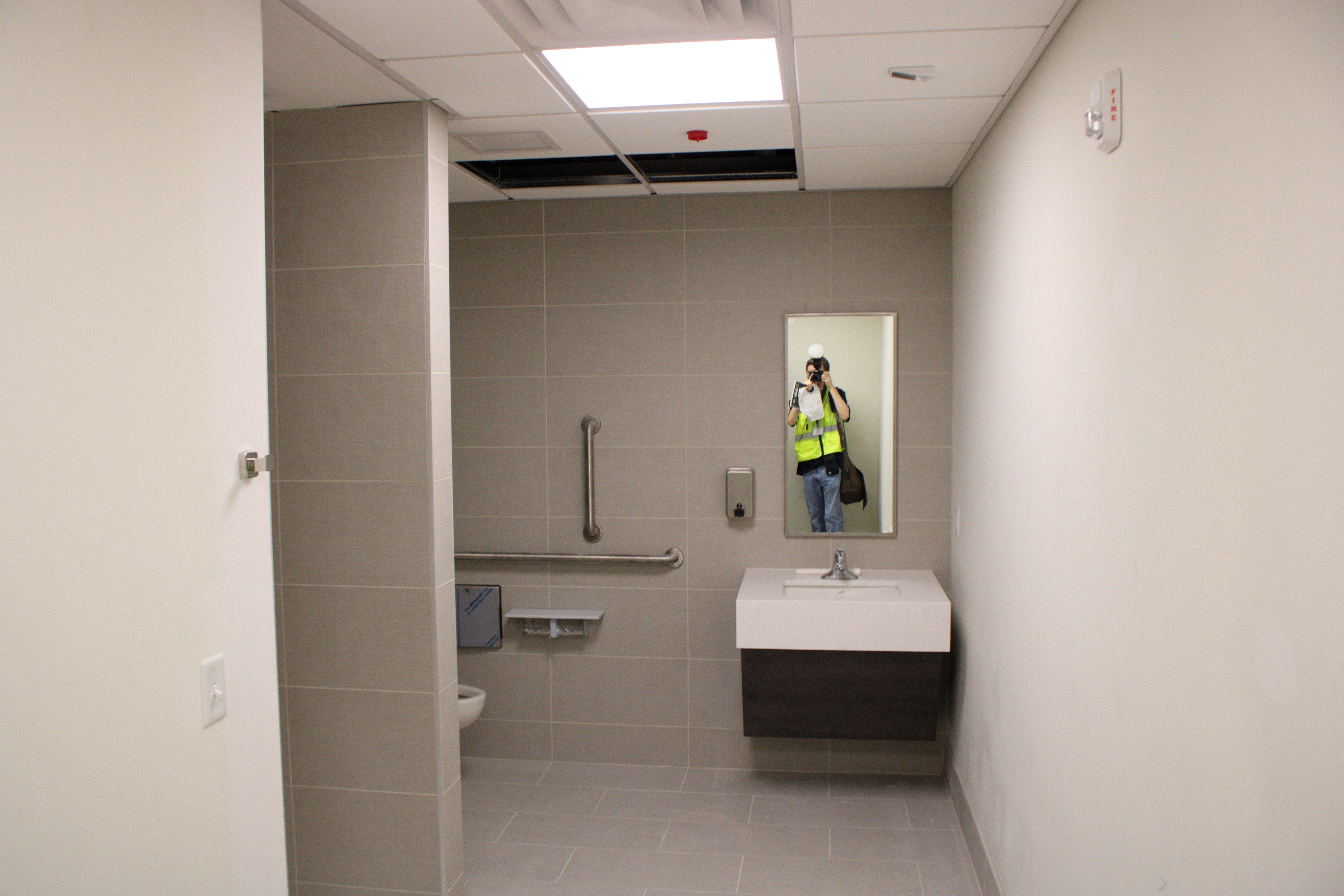 Flooring: The flooring contractor has completed all of the floor prep (outside of the gymnasium area) and vapor barrier for the eventual finishes, i.e. Carpet, VCT and LVT. Those finished floors will be installed more towards the last few weeks of the project to make sure they are not damaged. Ceramic tile at all of the bathrooms is 60% complete and will continue at the North end over the next few weeks.