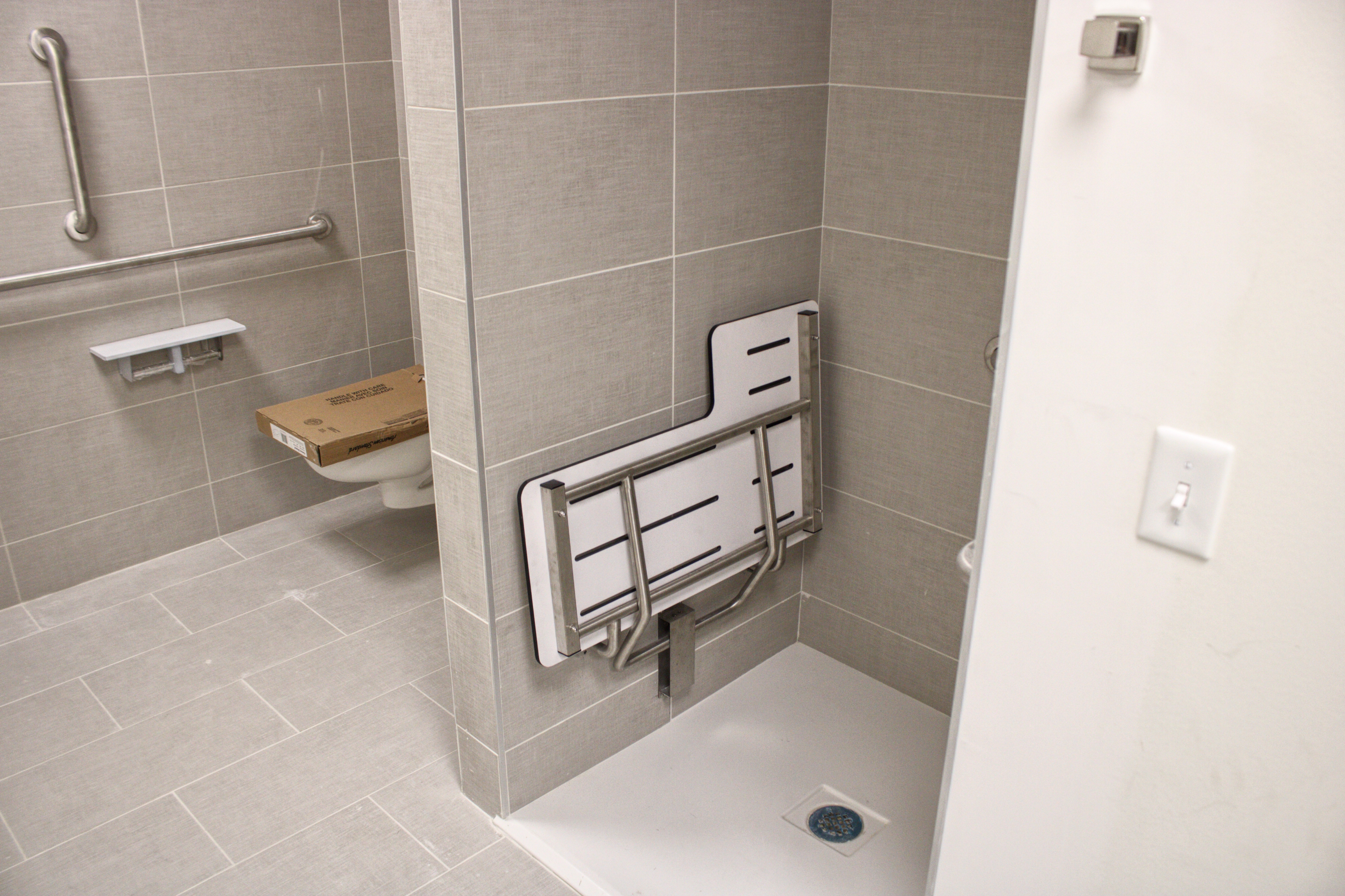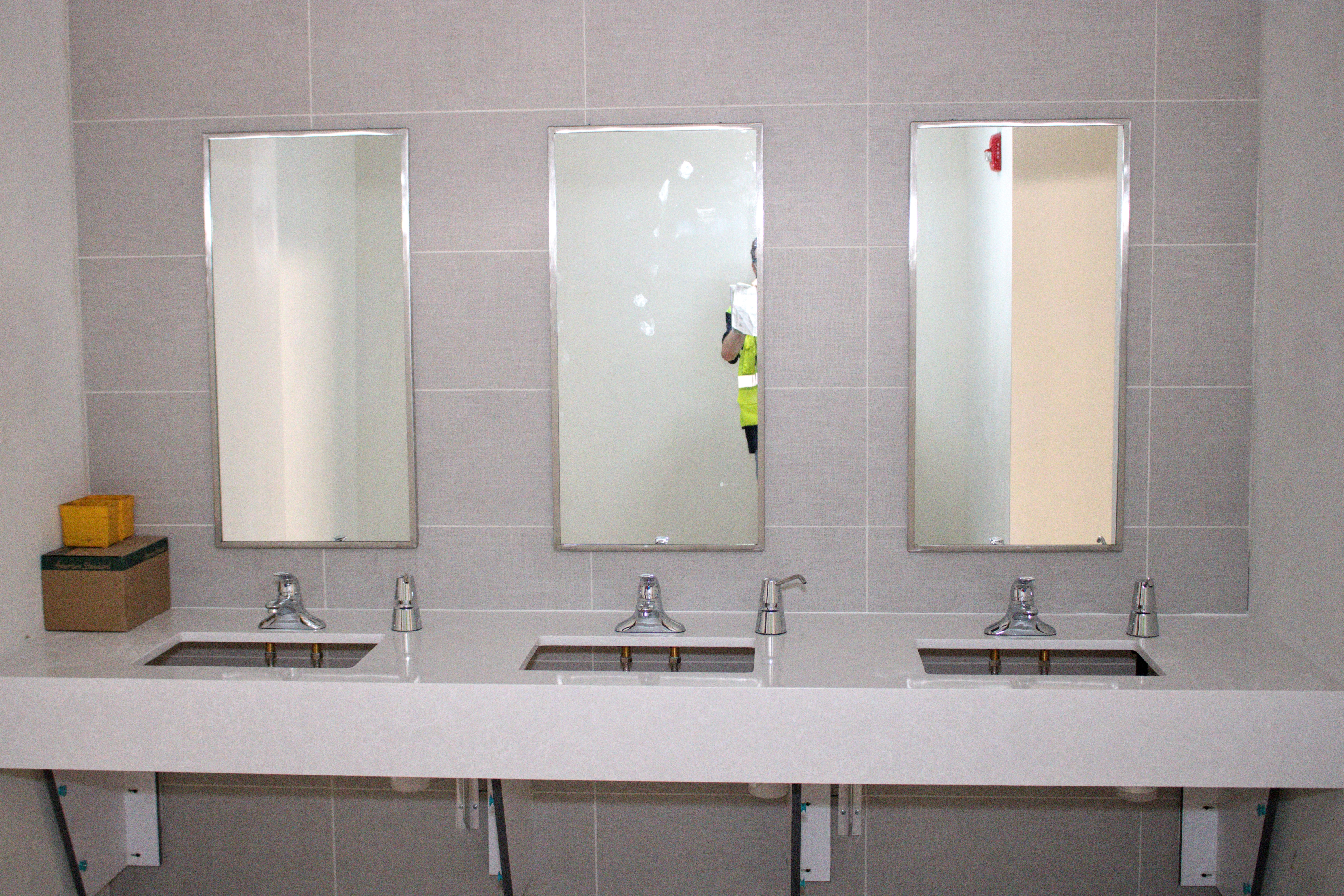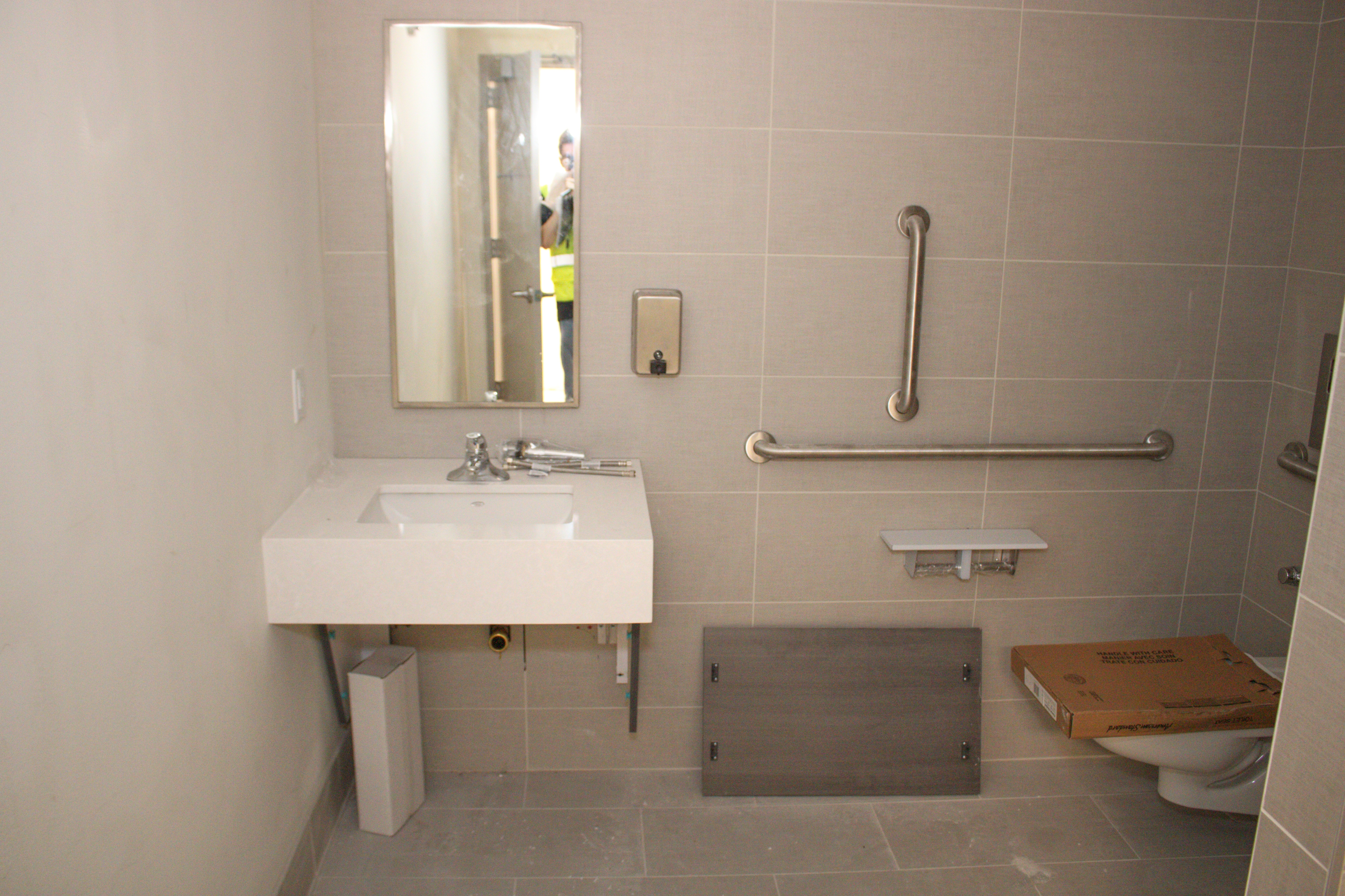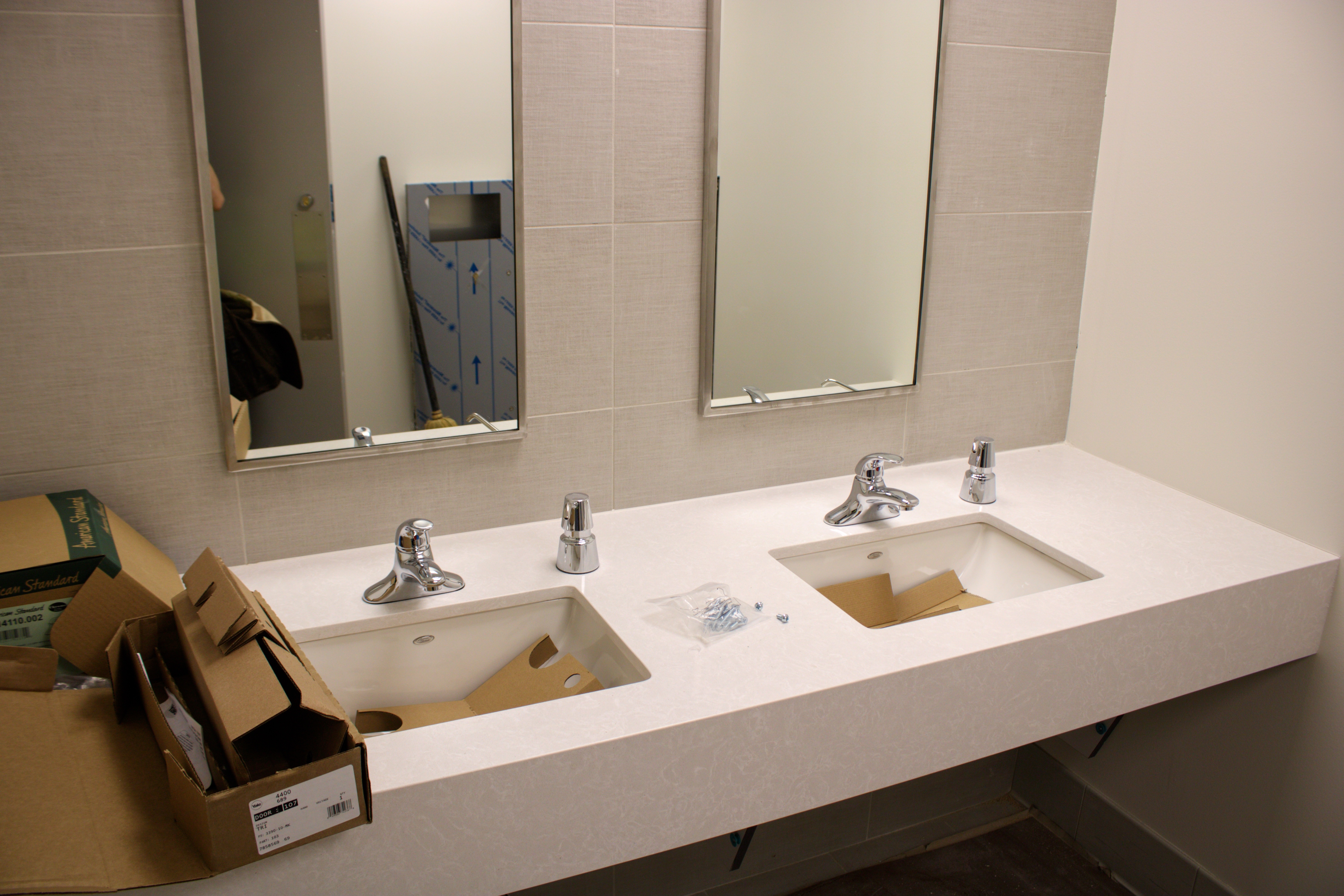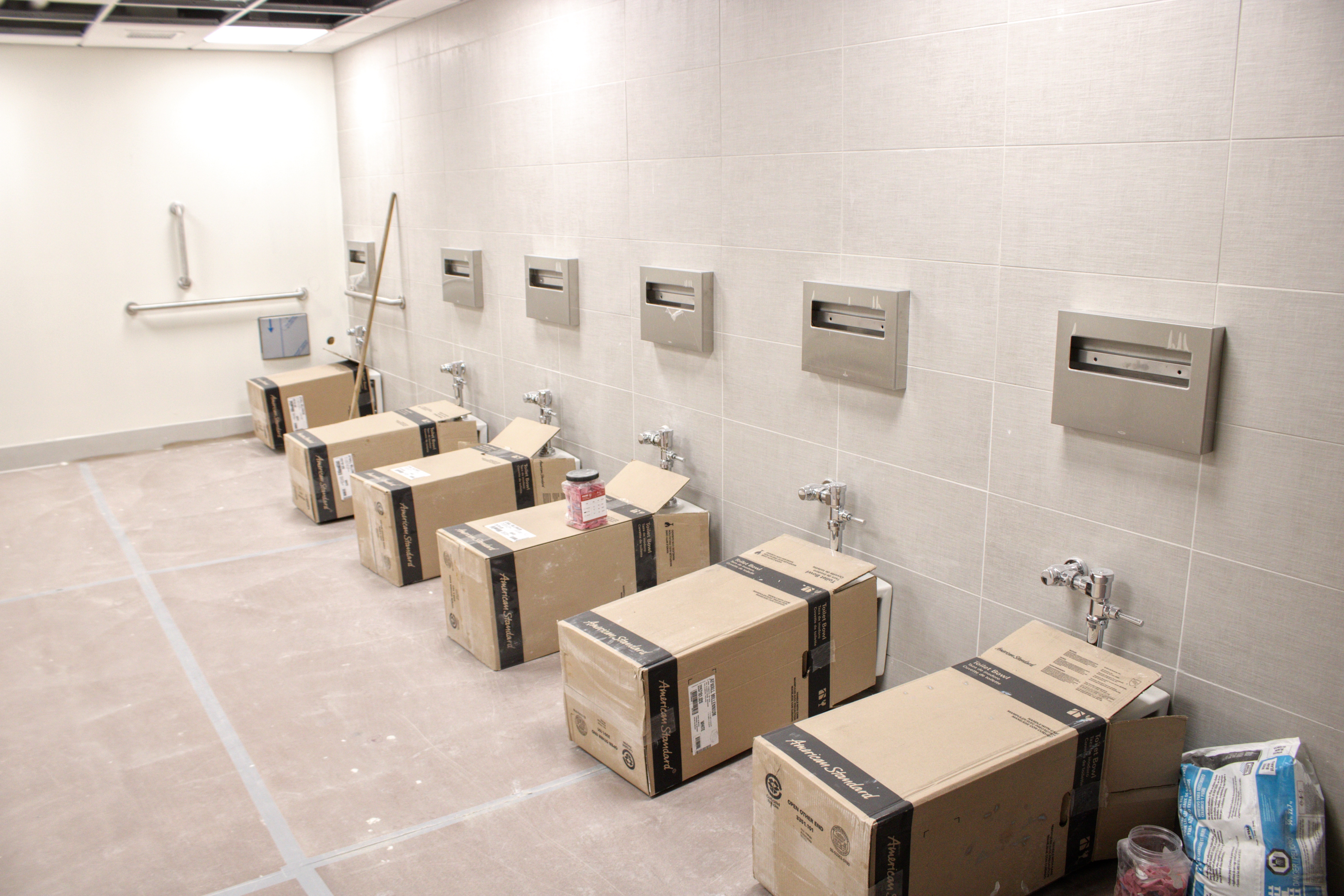 Flooring: The flooring contractor has completed all of the floor prep (outside of the gymnasium area) and vapor barrier for the eventual finishes, i.e. Carpet, VCT and LVT. Those finished floors will be installed more towards the last few weeks of the project to make sure they are not damaged. Ceramic tile at all of the bathrooms is 60% complete and will continue at the North end over the next few weeks.