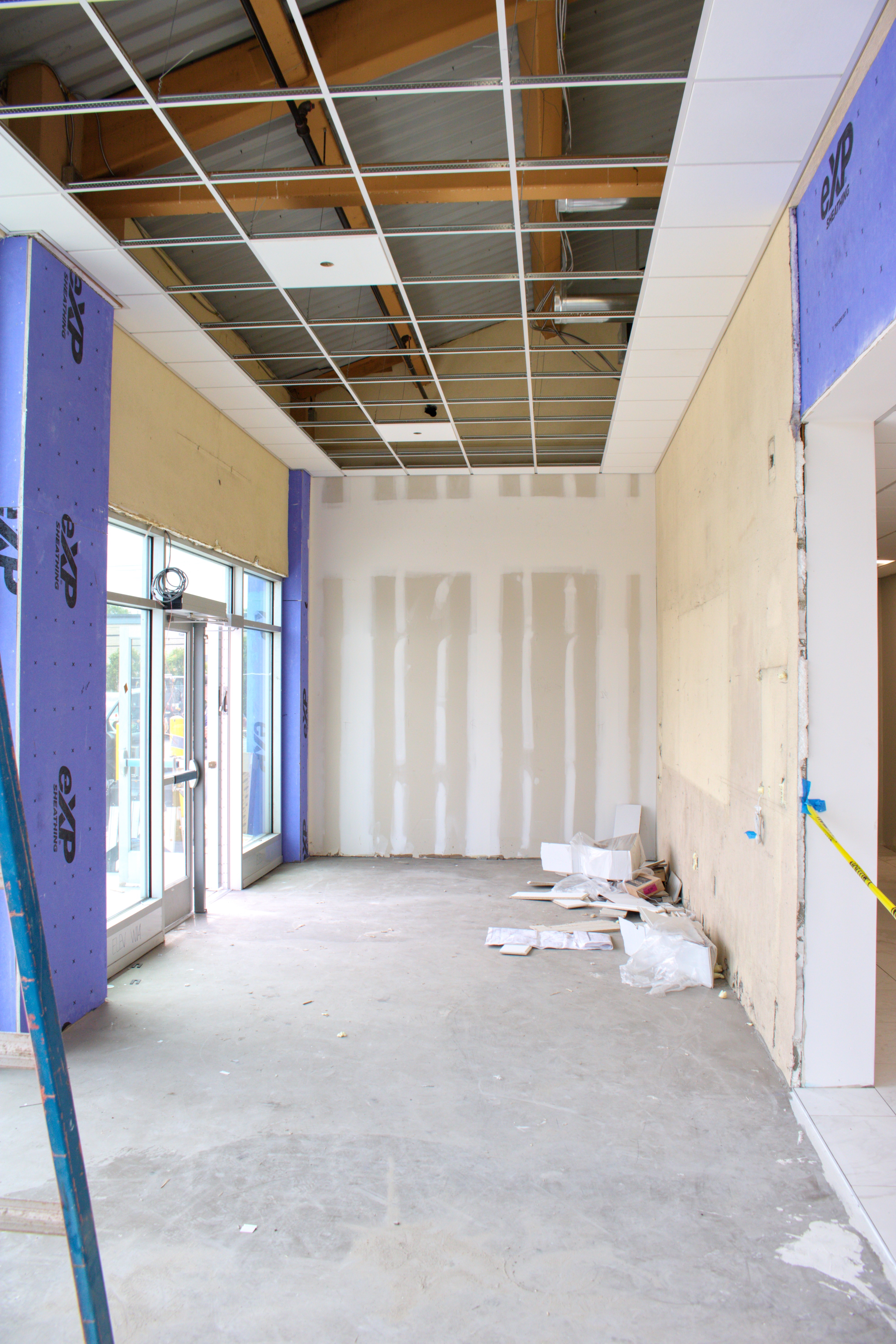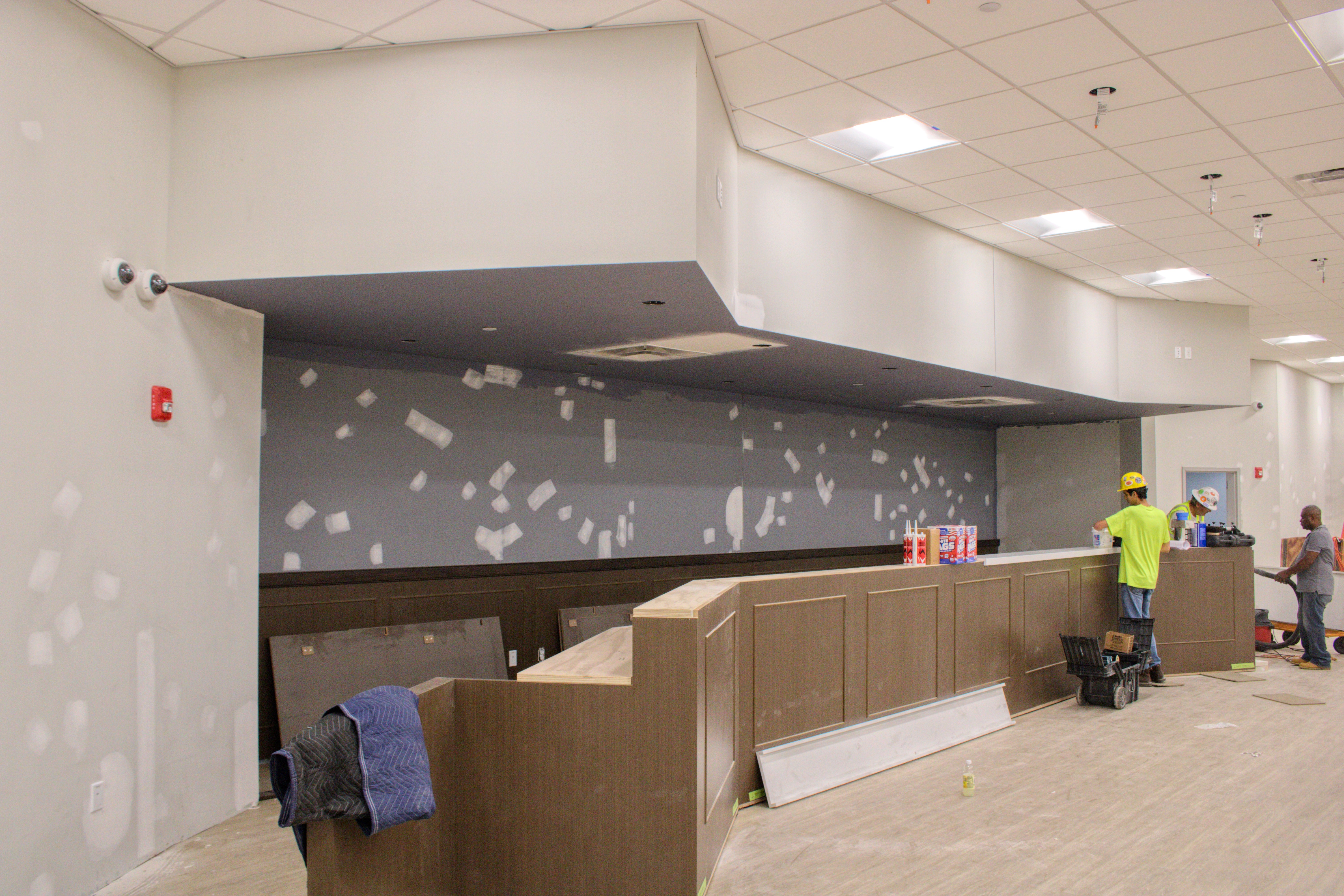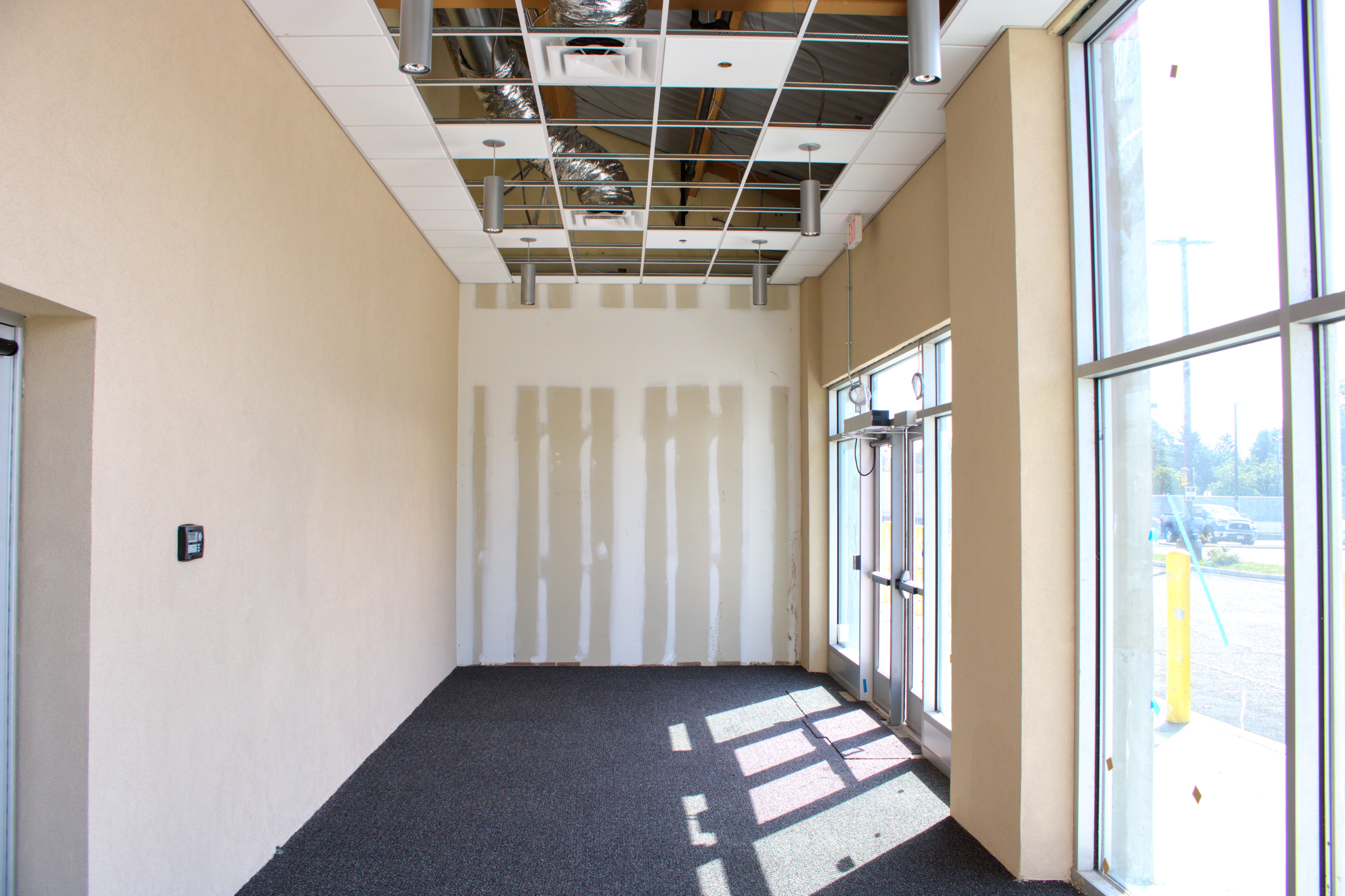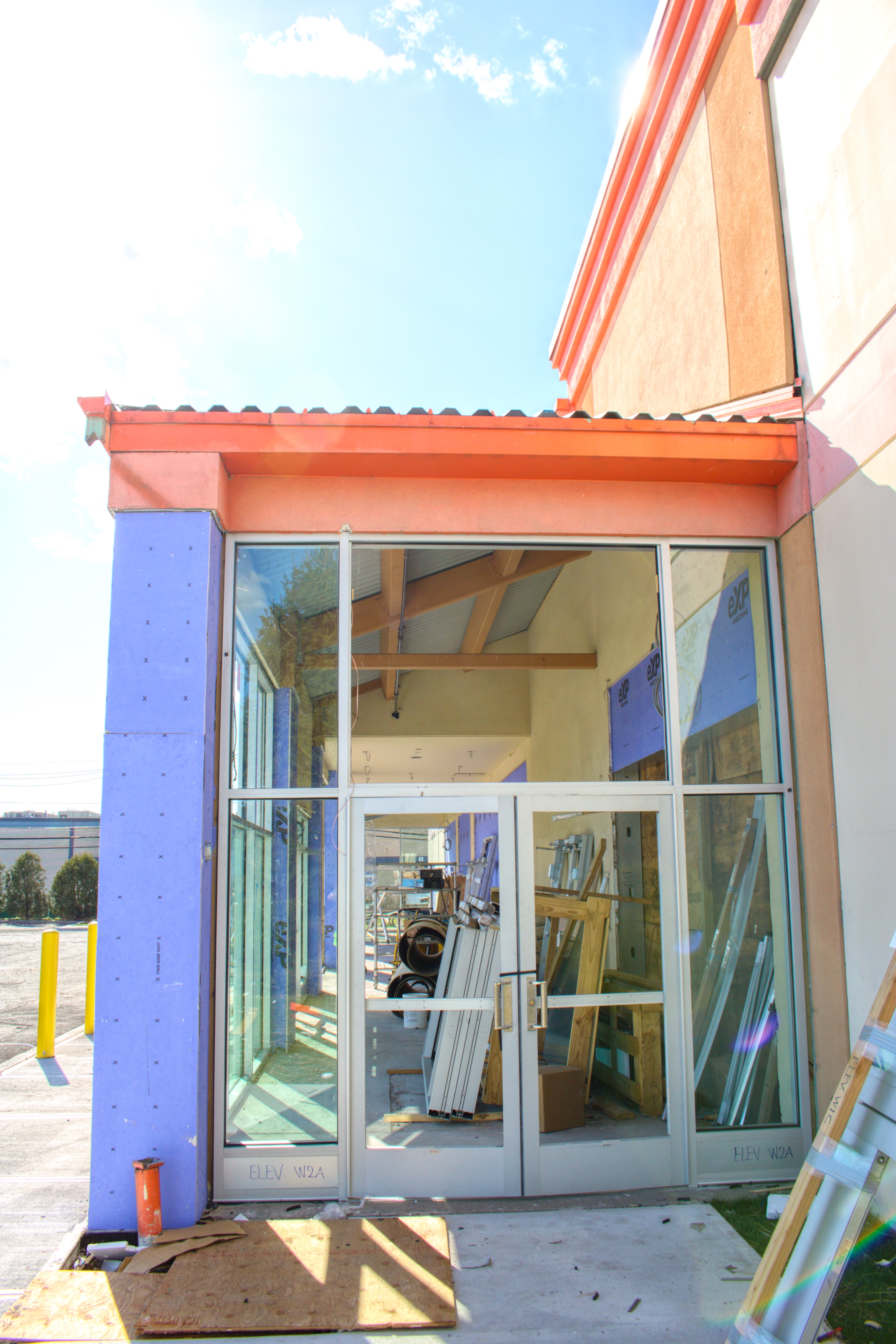 Glass and glazing: The new entry vestibule storefront glass and doors have been installed. Next step as we get further into the finishes of the interior will be transaction windows, door lights, bathroom mirrors, etc.