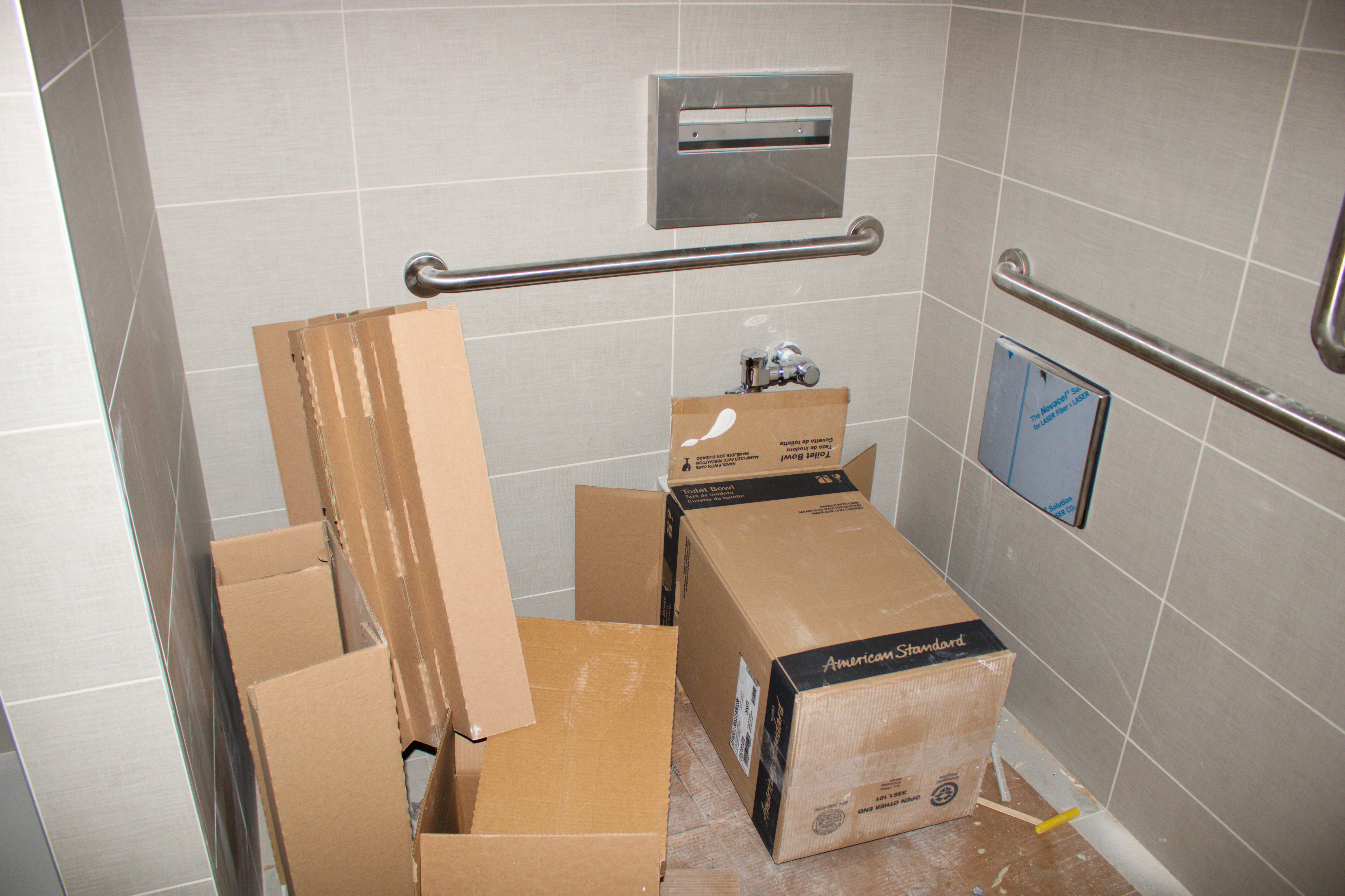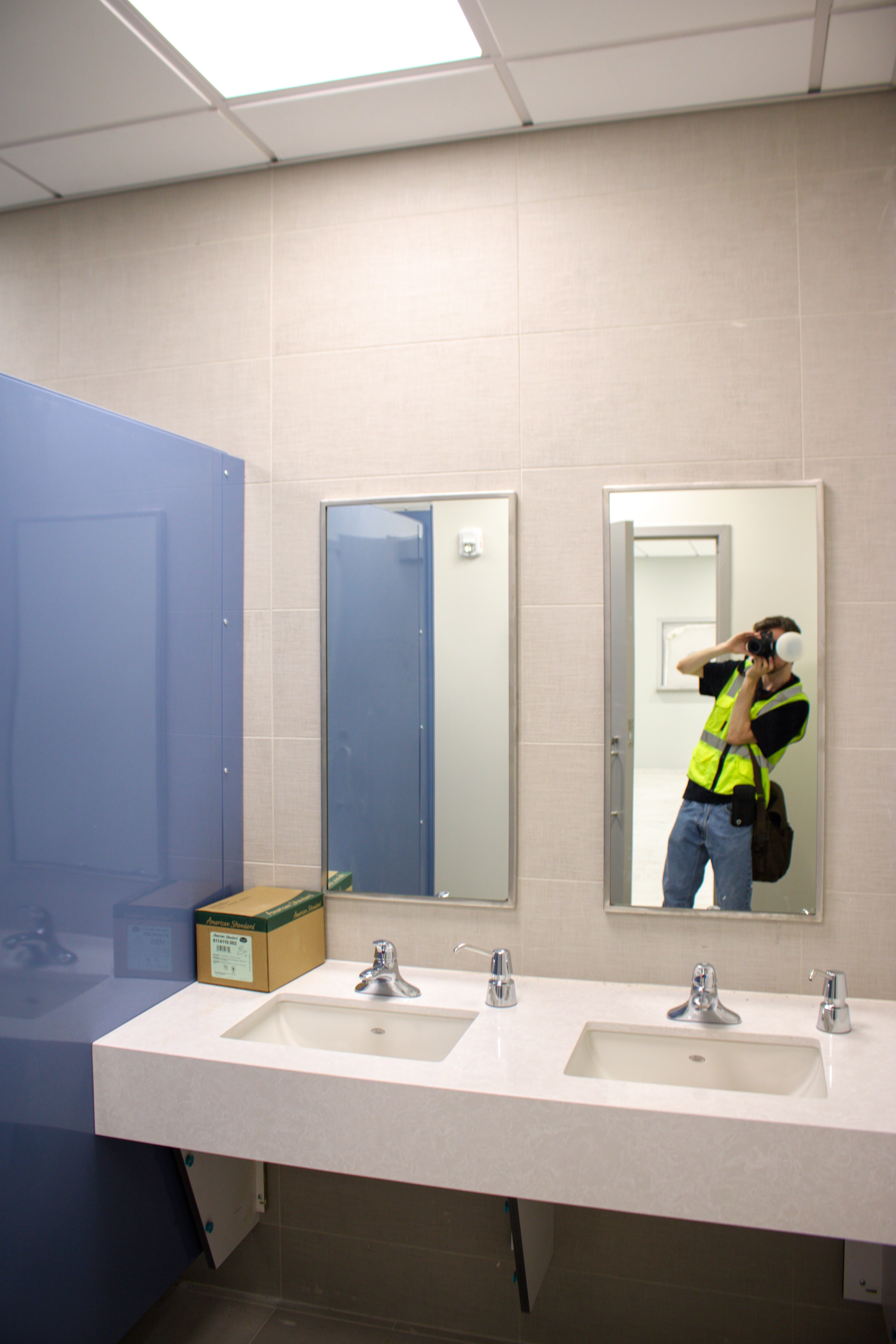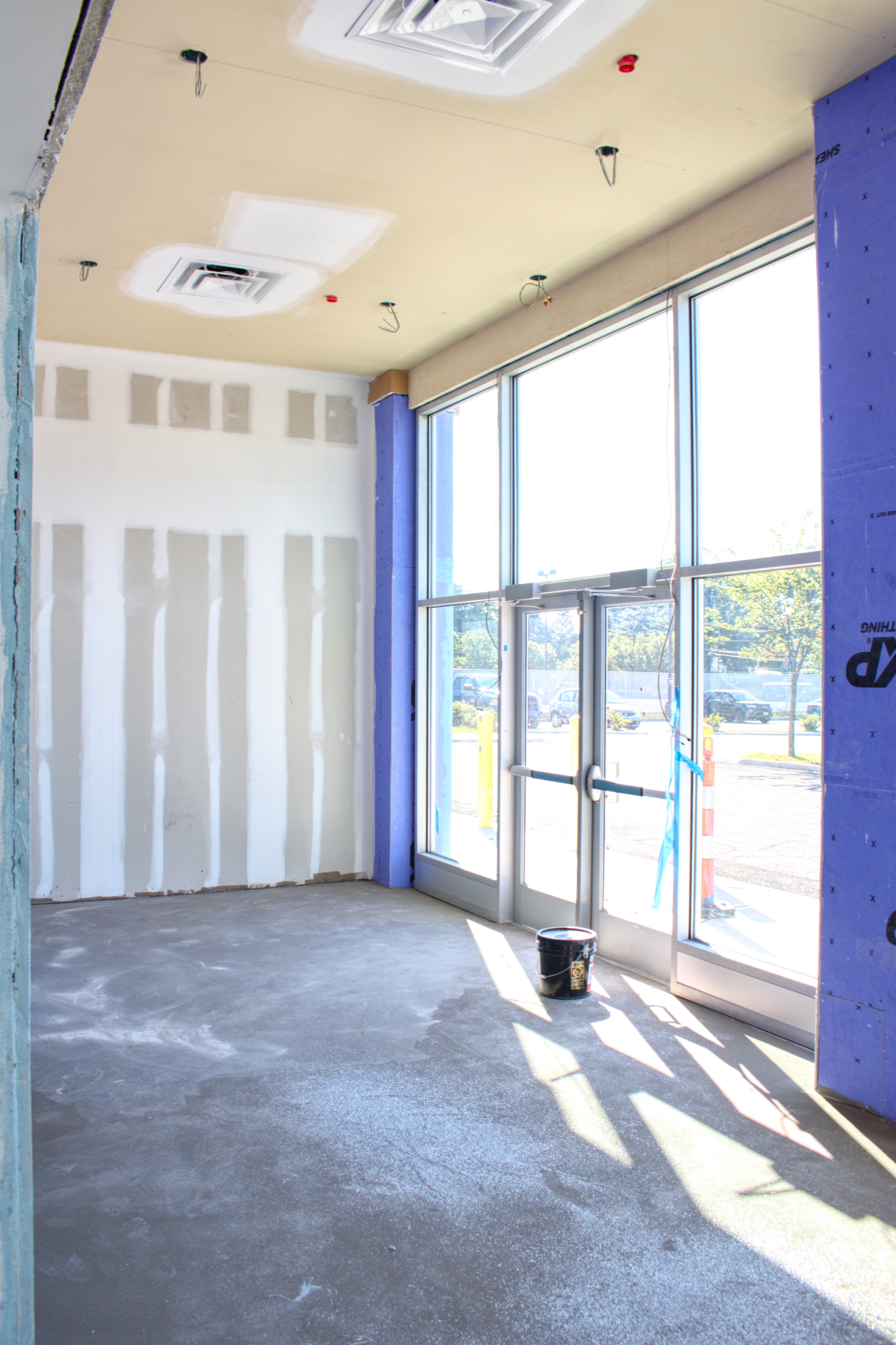 Glass and glazing: The new entry vestibule storefront glass and doors have been installed. Next step as we get further into the finishes of the interior will be transaction windows, door lights, bathroom mirrors, etc.