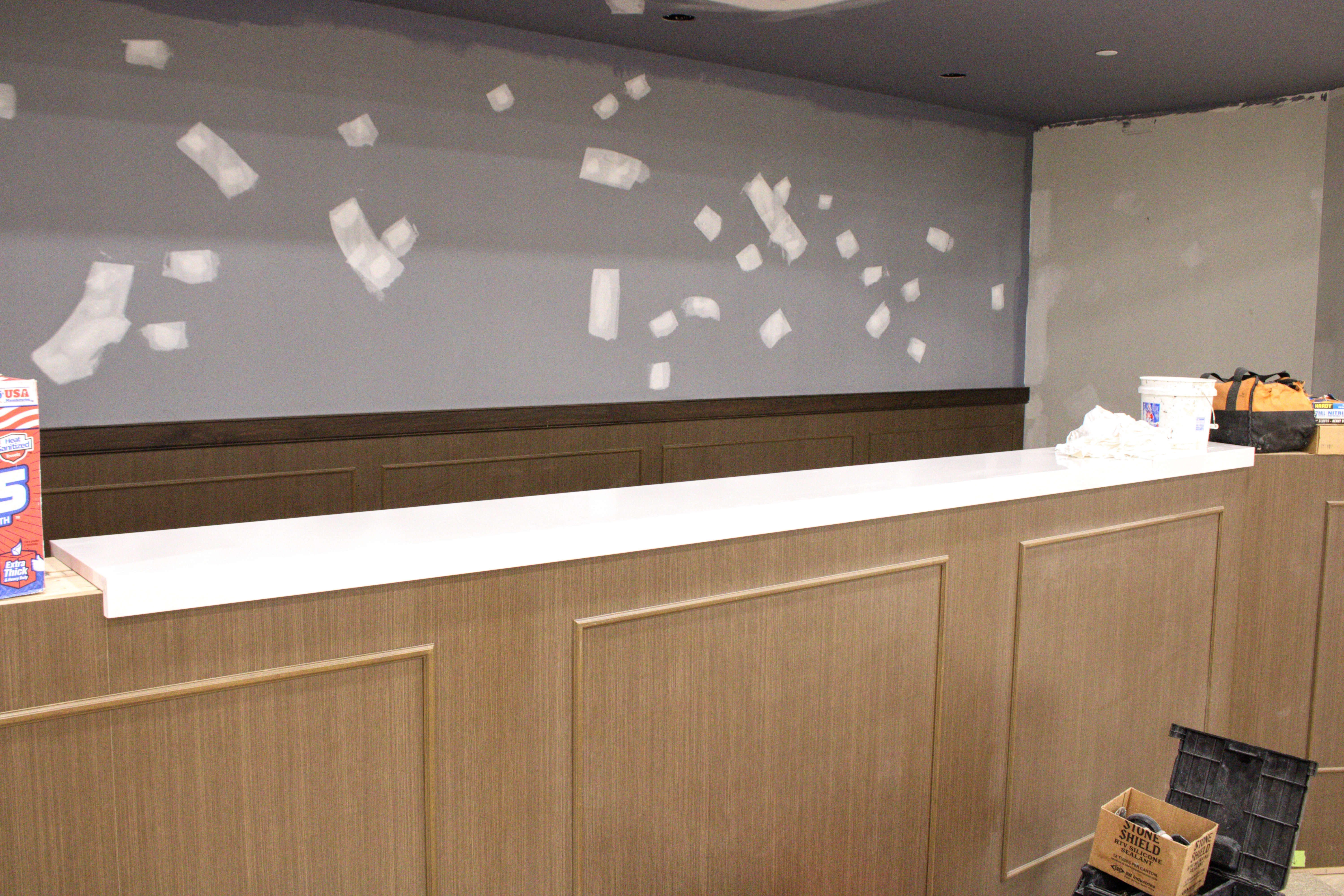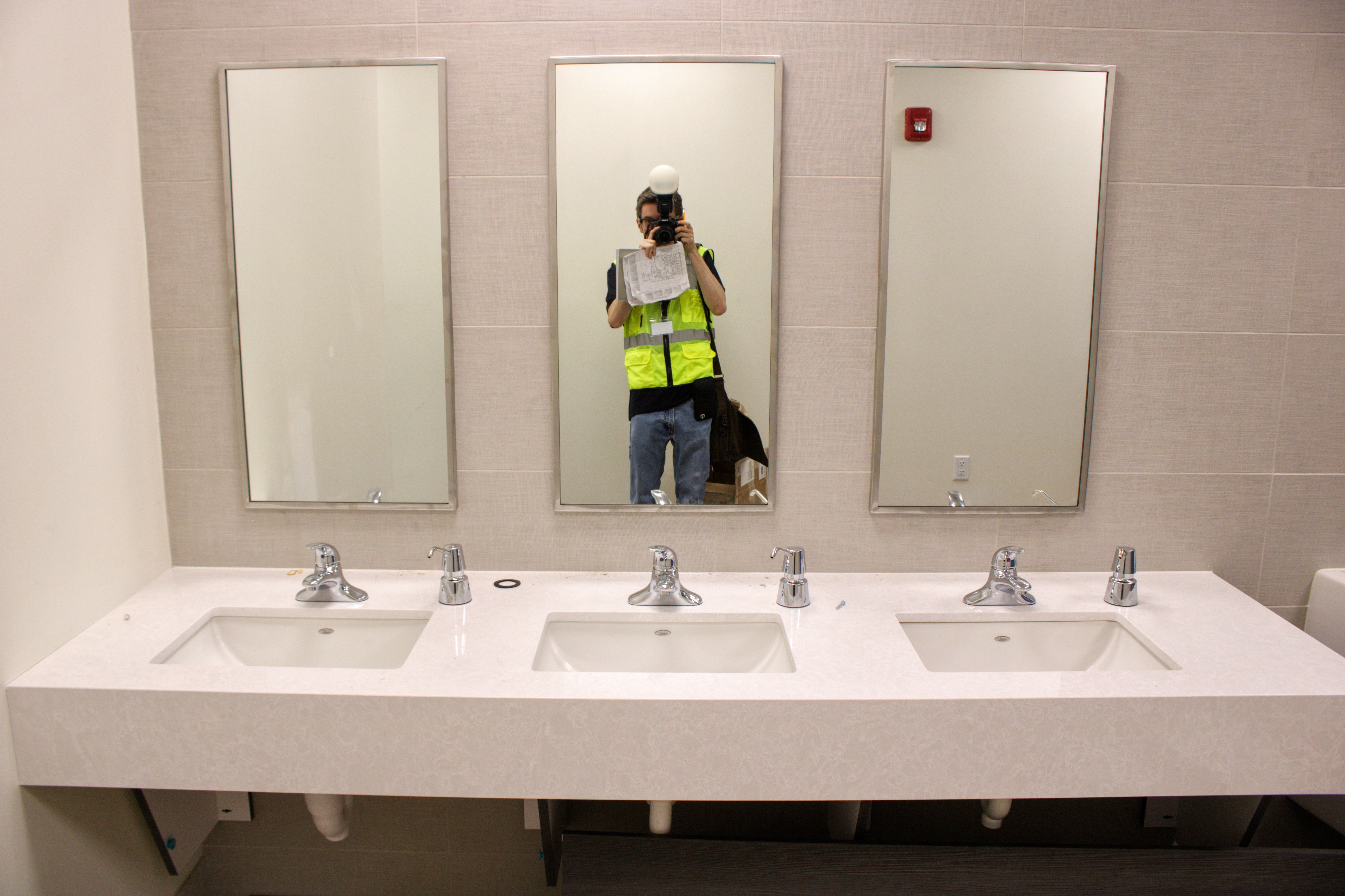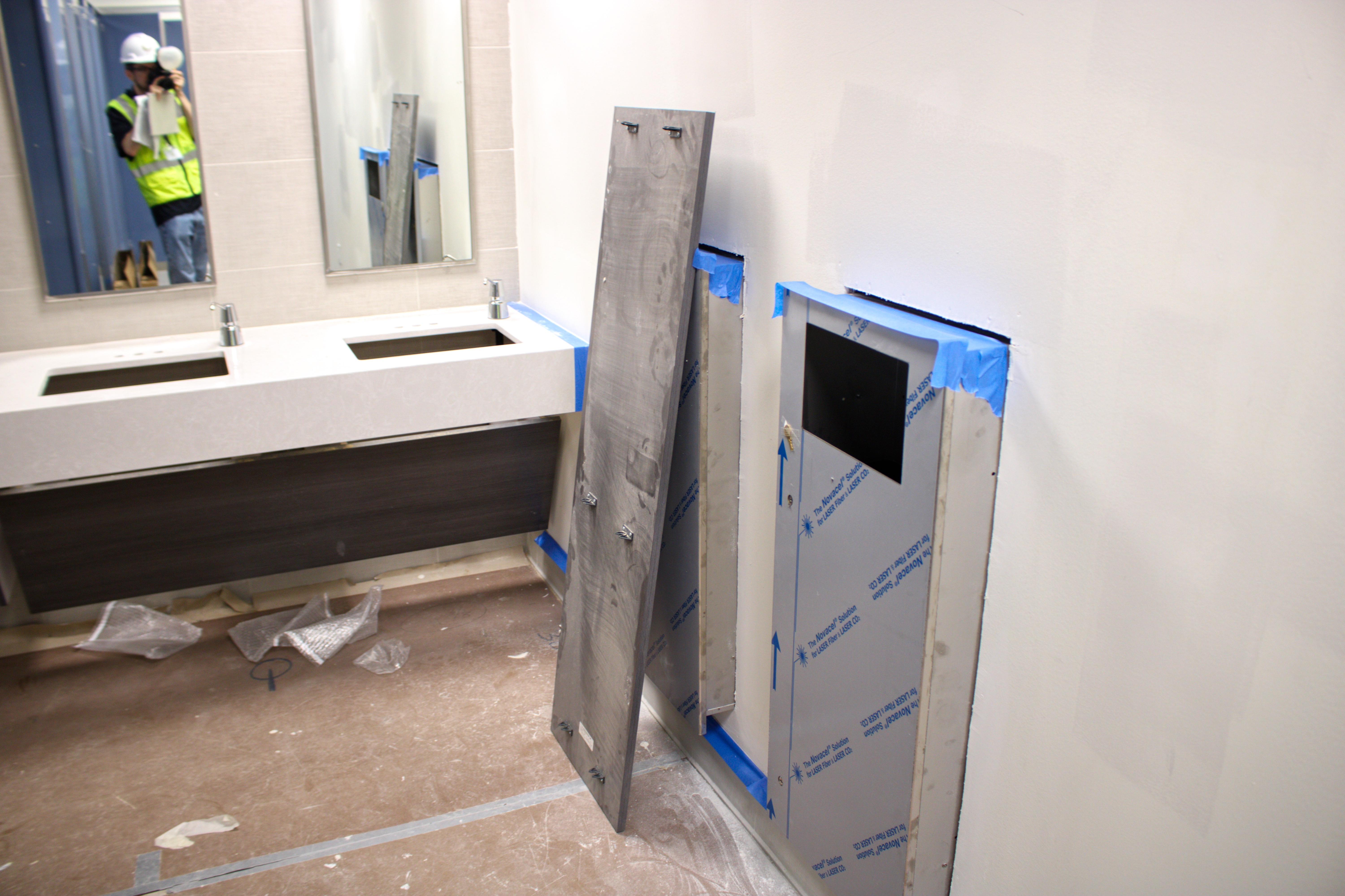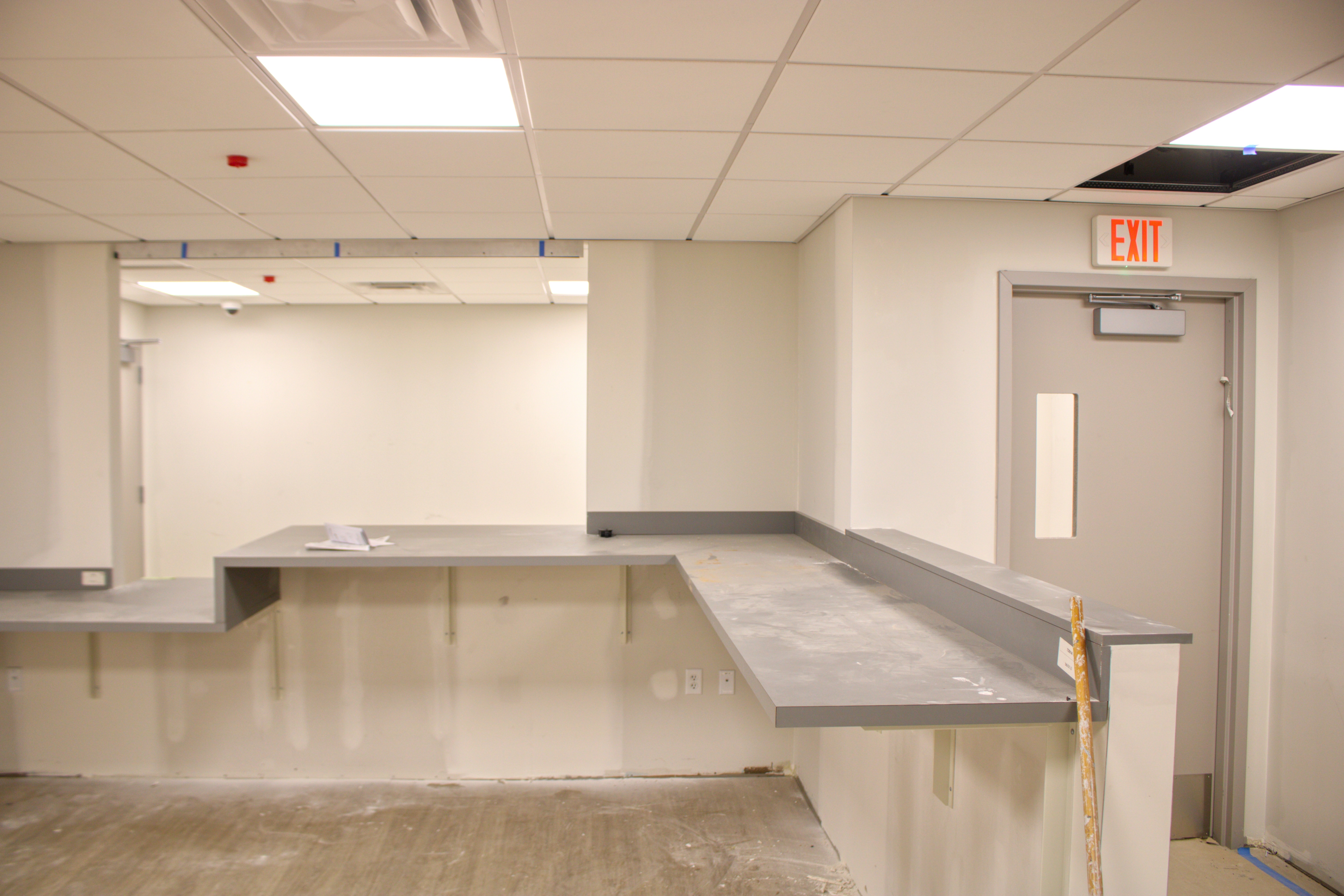Glass and glazing: The new entry vestibule storefront glass and doors have been installed. Next step as we get further into the finishes of the interior will be transaction windows, door lights, bathroom mirrors, etc.