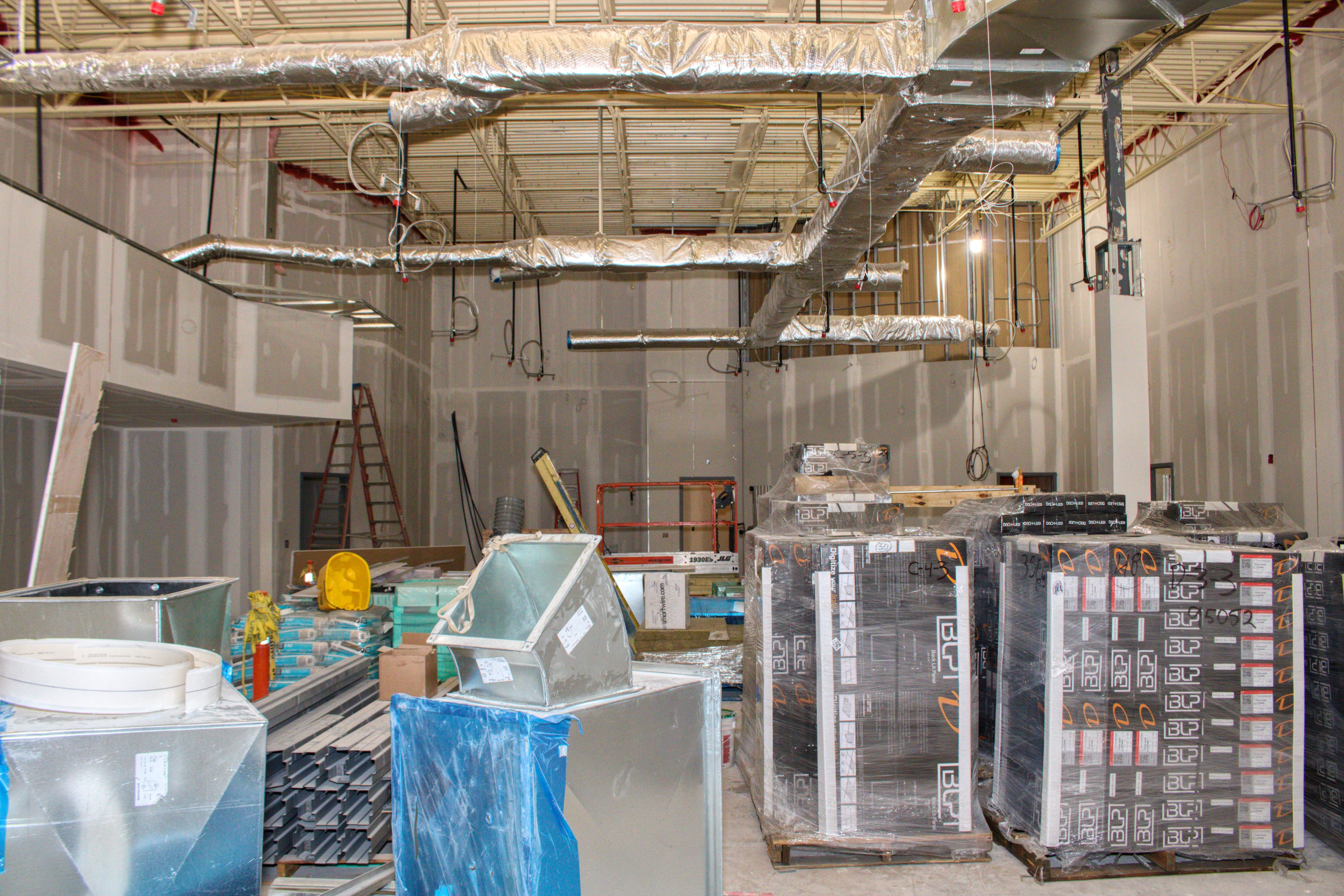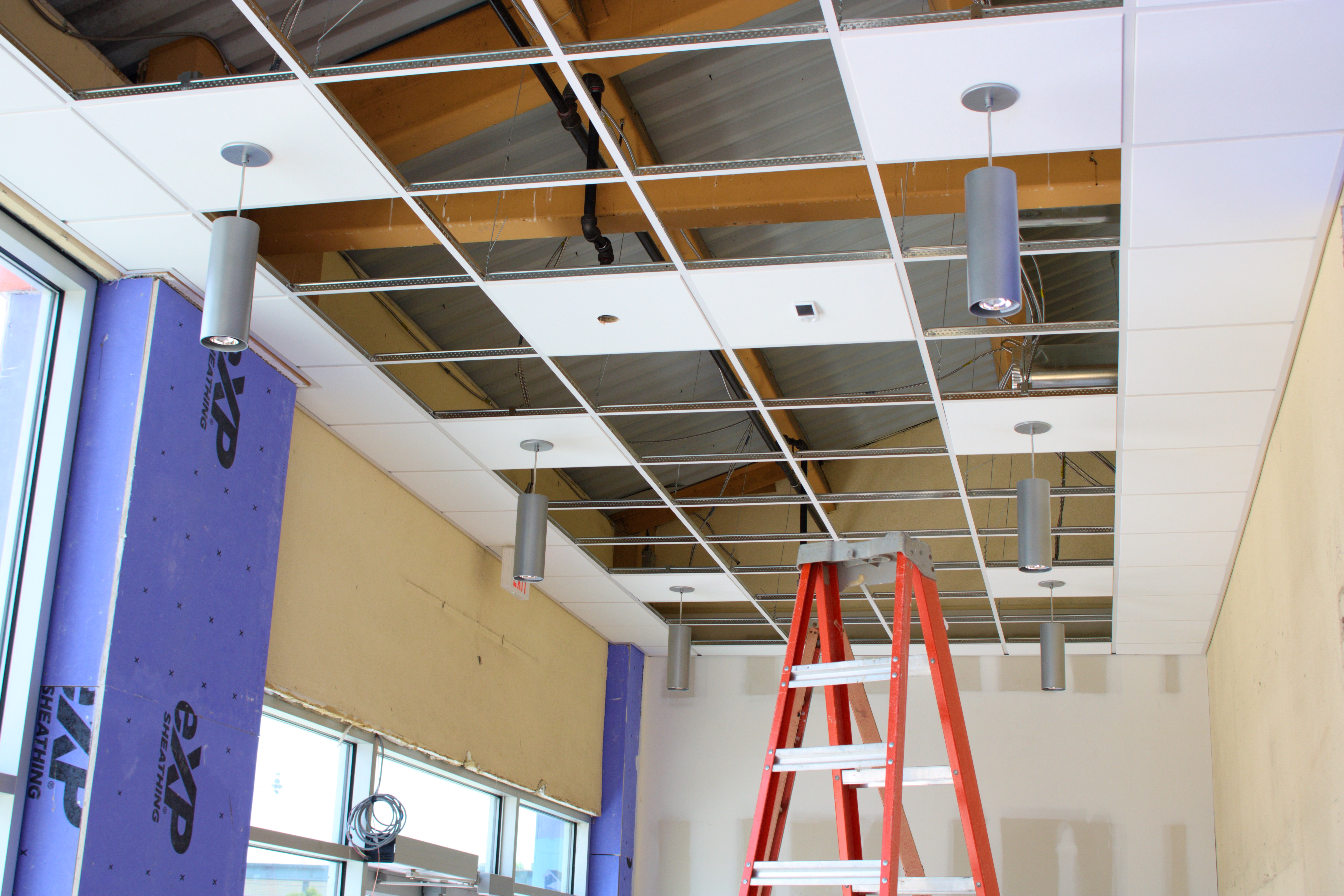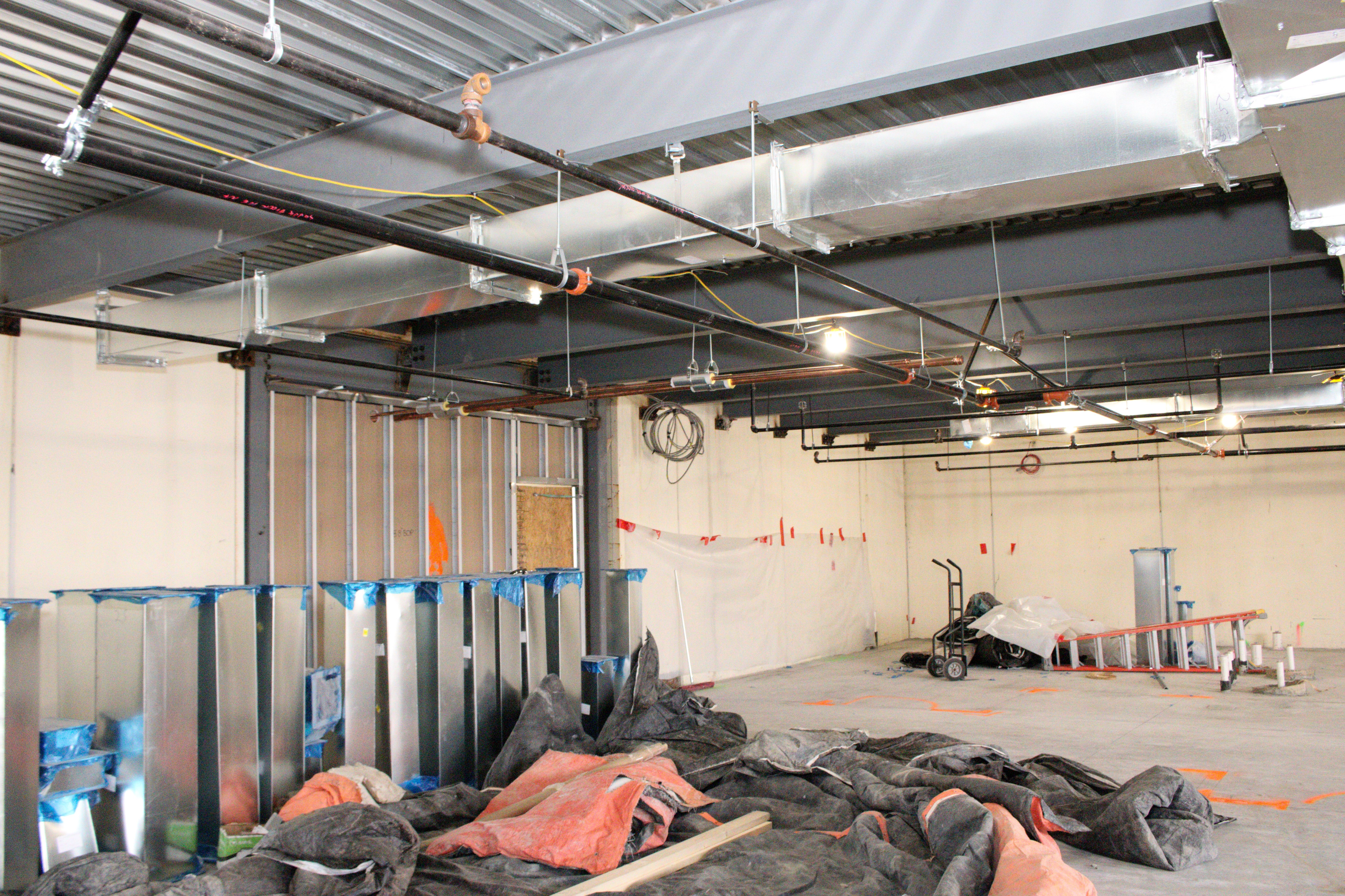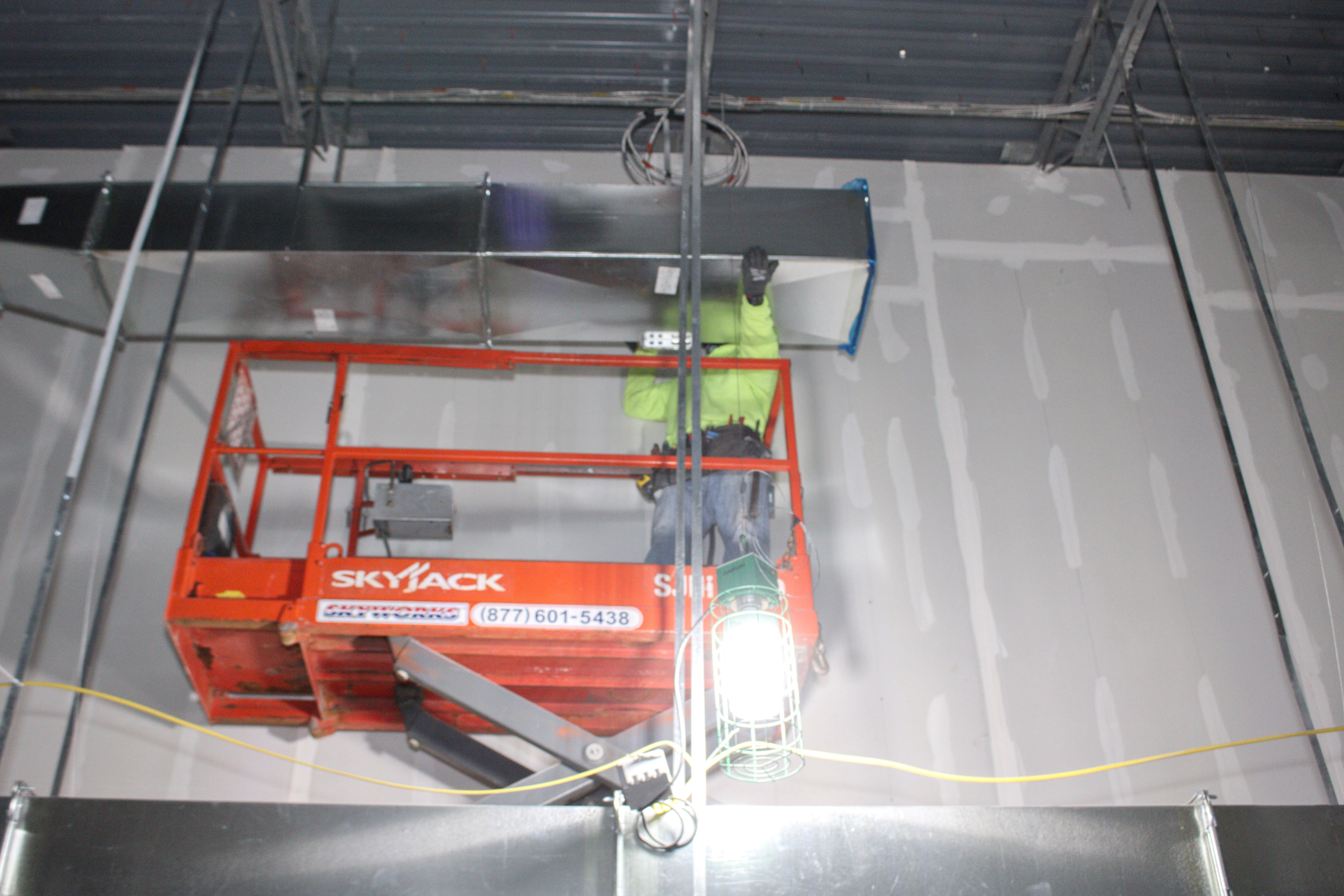 HVAC: The HVAC contractor has started to install finished diffusers for conditioned air following the ceiling grid install. We will be installing the new RTU’s (roof top units and exhaust fans the week of April 11 which will allow final duct connections to the duct we have already installed on the interior of the building.