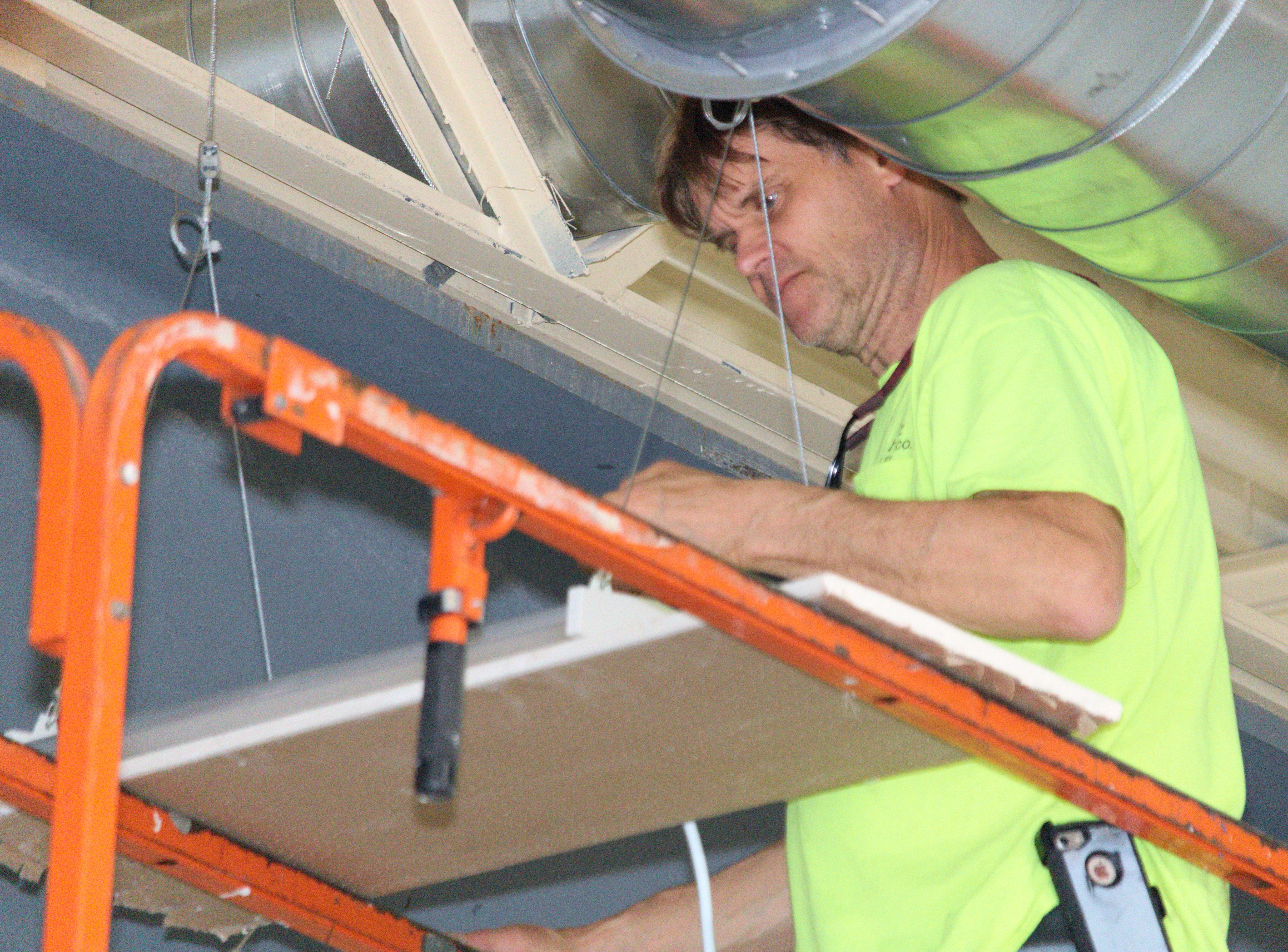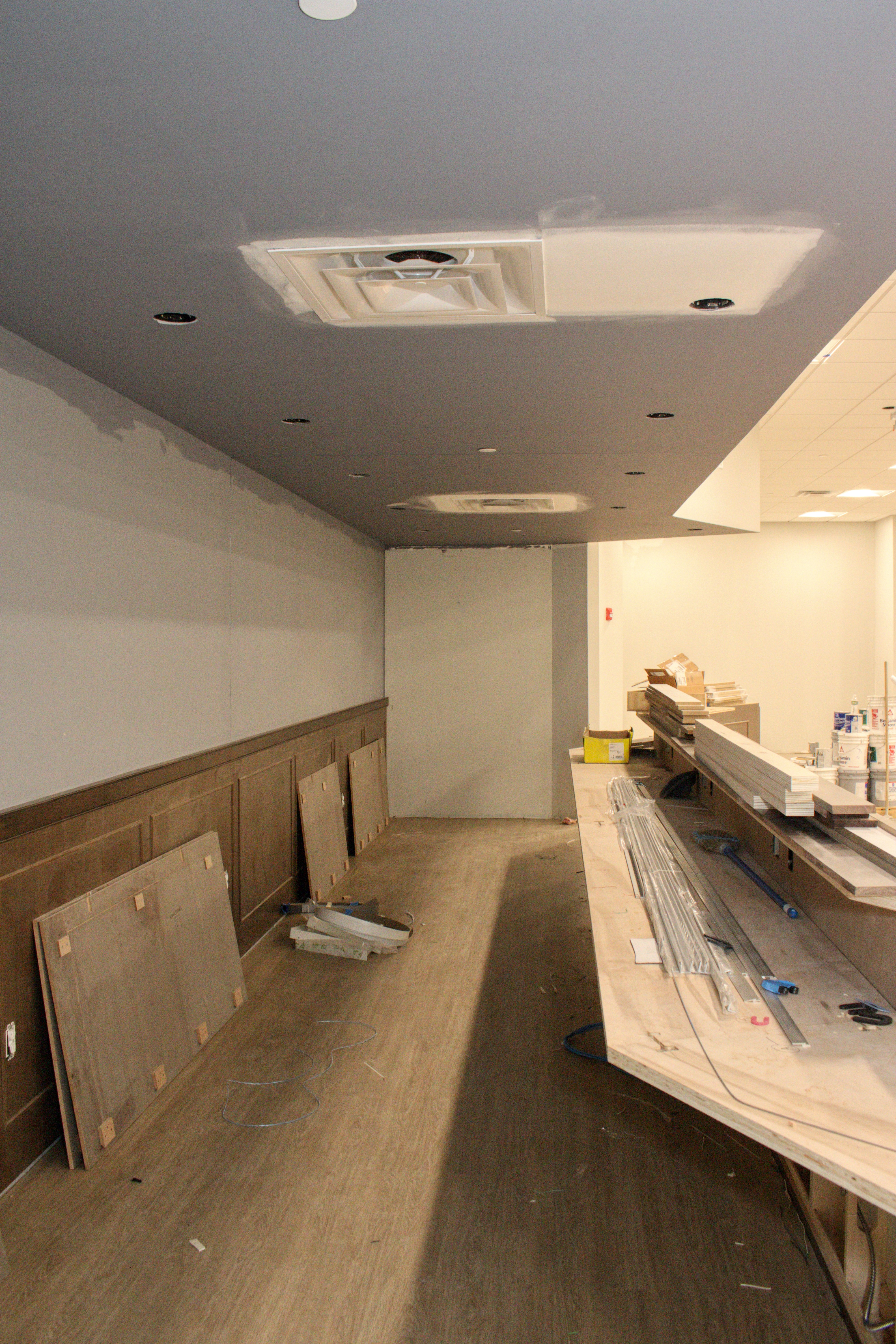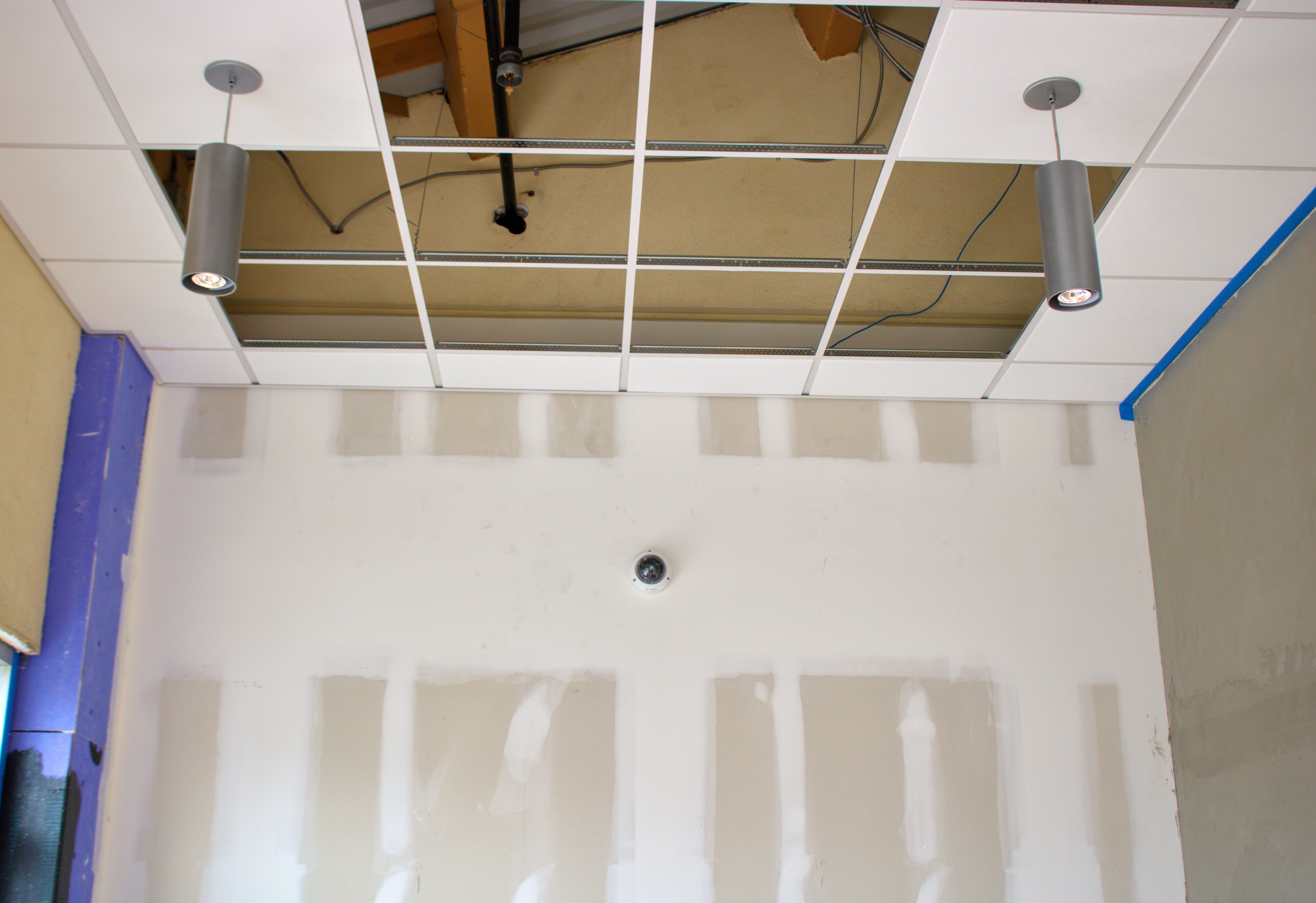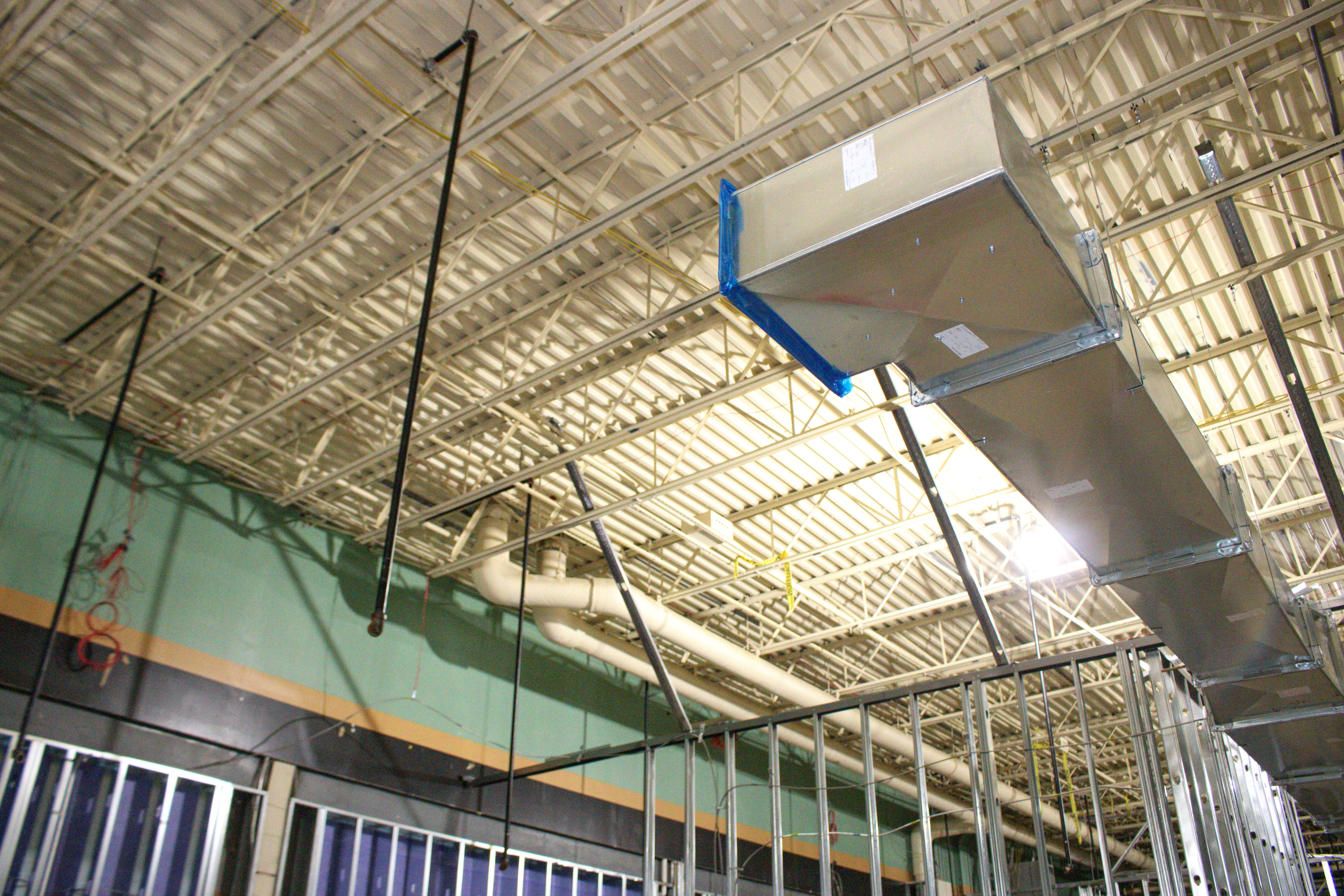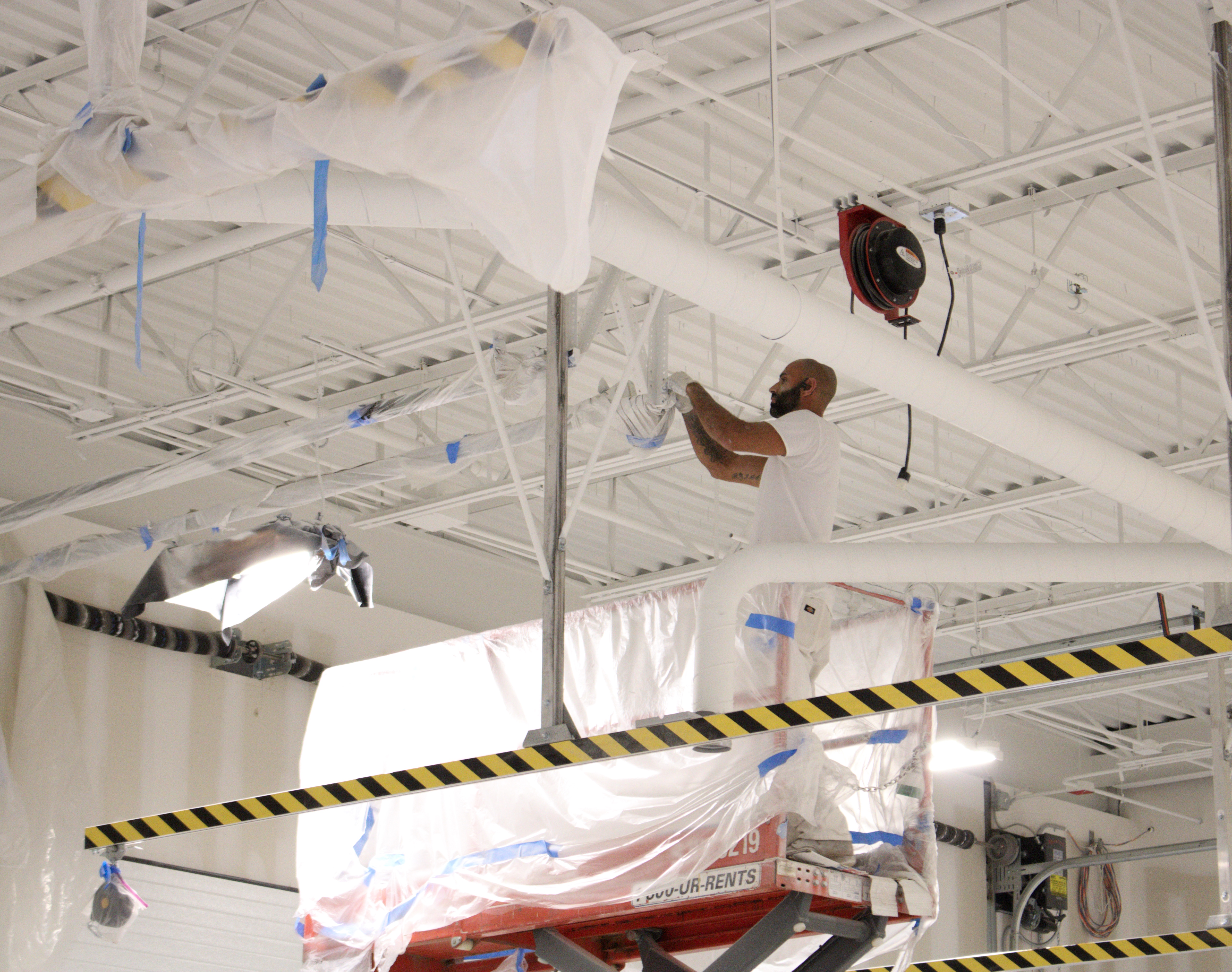 HVAC: The HVAC contractor has started to install finished diffusers for conditioned air following the ceiling grid install. We will be installing the new RTU’s (roof top units and exhaust fans the week of April 11 which will allow final duct connections to the duct we have already installed on the interior of the building.