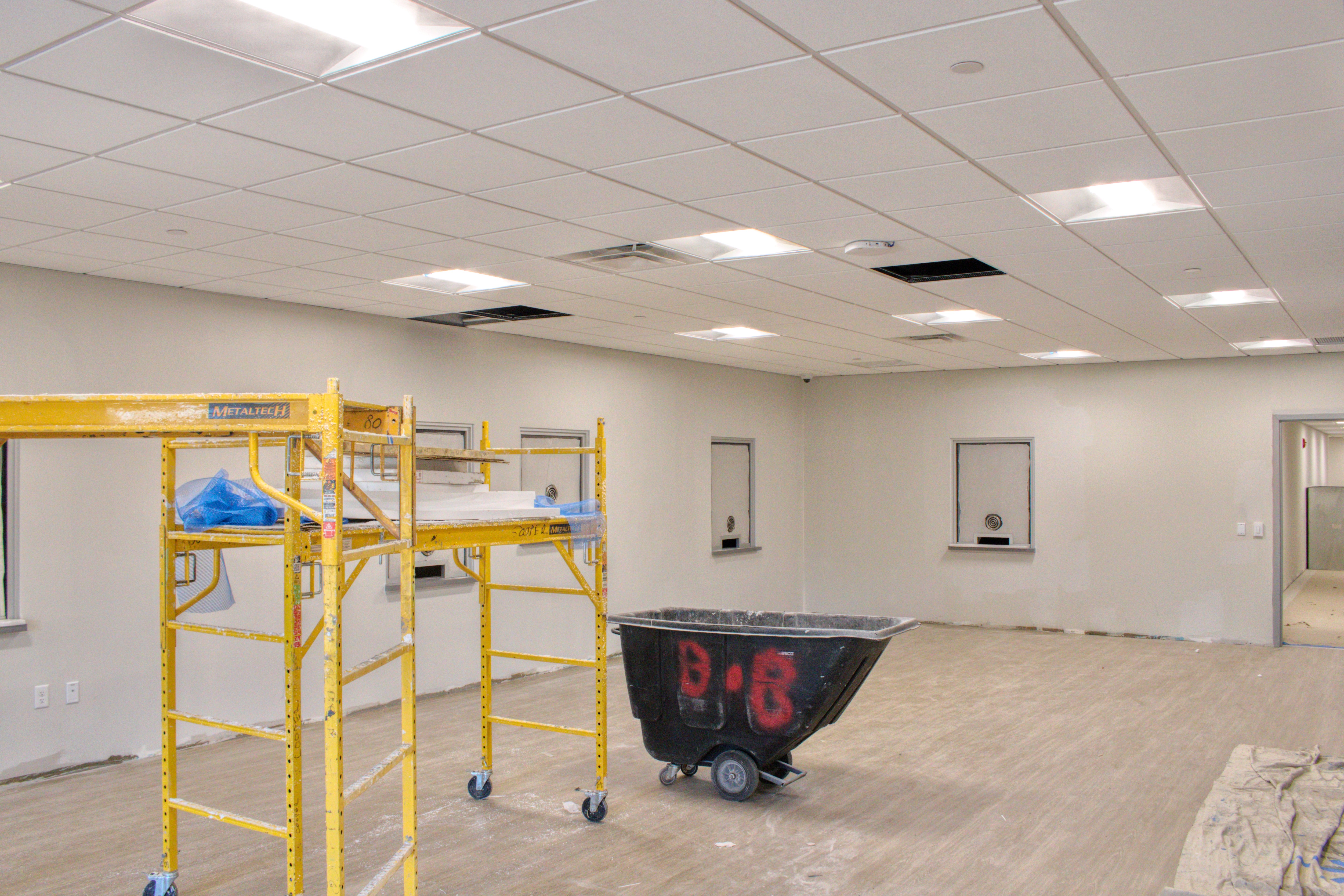 Drywall/Ceilings: We will be concentrating on getting the Fire Department and Ambulance Corps. dry walled over the next few weeks. We are 100% dry walled, taped/spackled South of “C” line. Our drywall contractor is also our ceiling installer and they have been chasing the painter for ceiling grid install as the walls are primed.