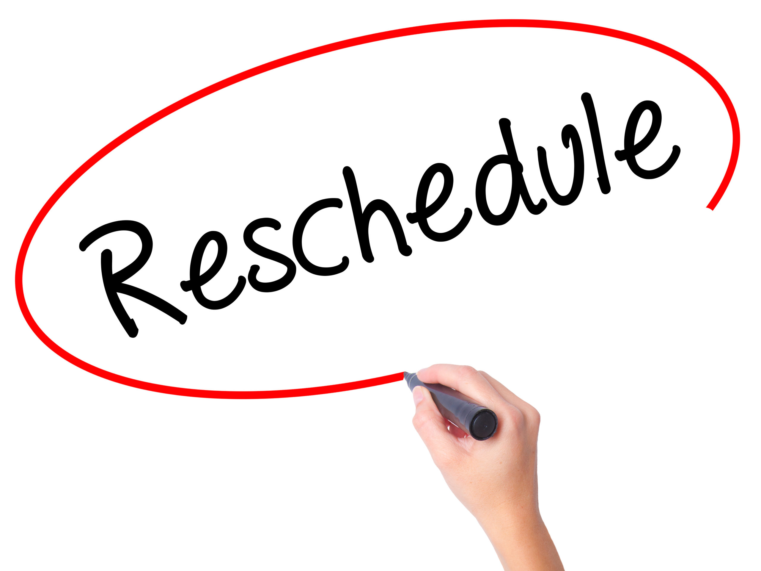 Women Hand writing Reschedule with black marker on visual scree ← Previous Next → Women Hand writing Reschedule with black marker on visual screen. Isolated on white. Business, technology, internet concept. Stock Photo